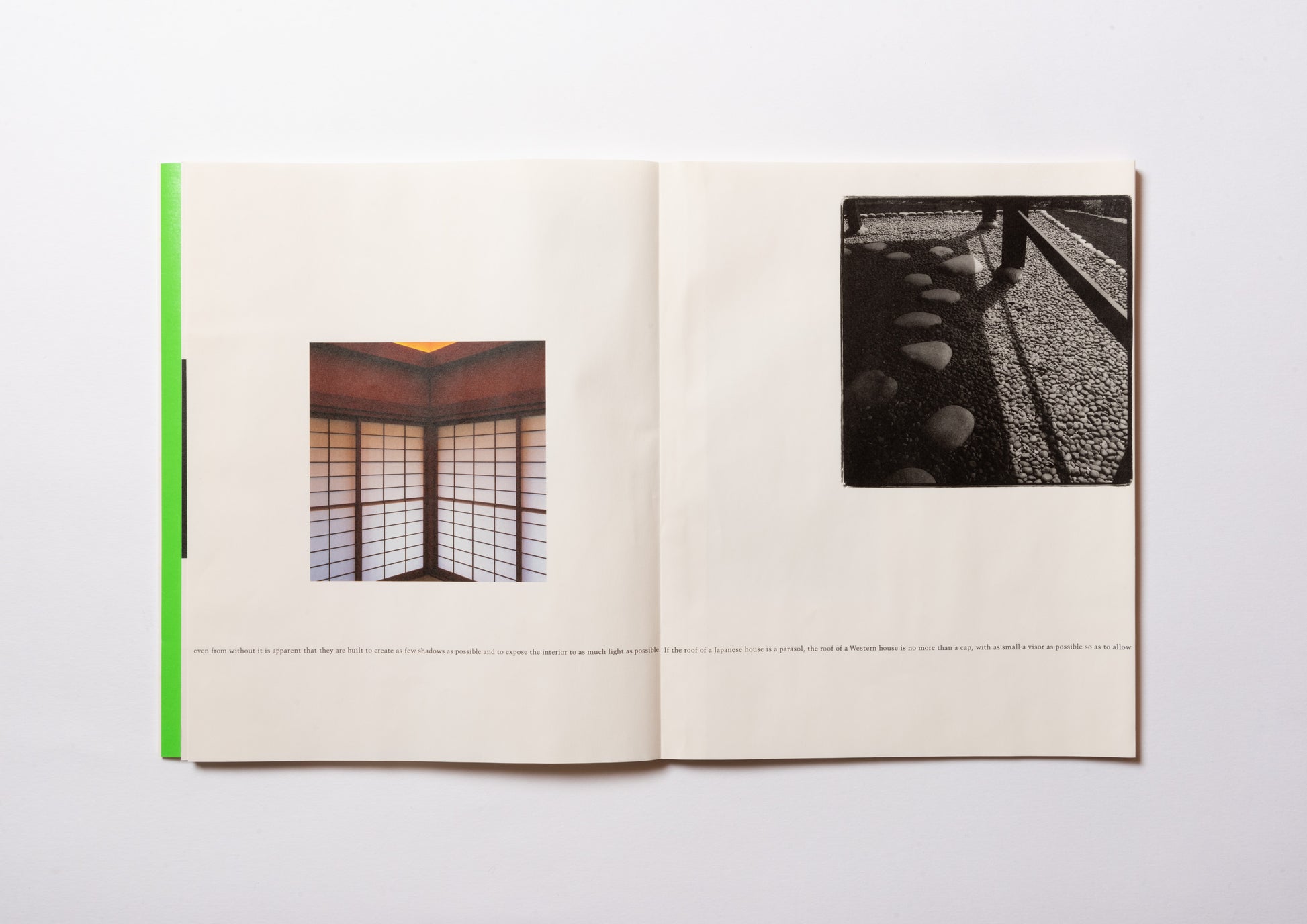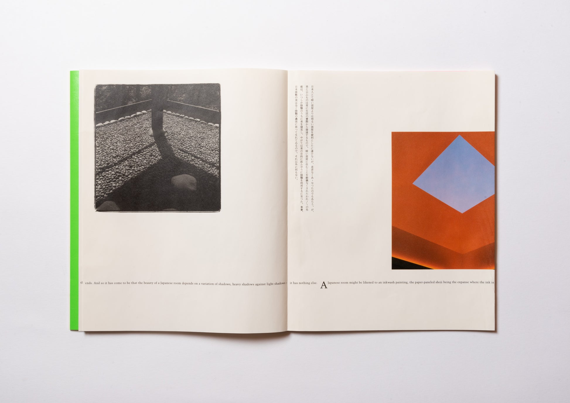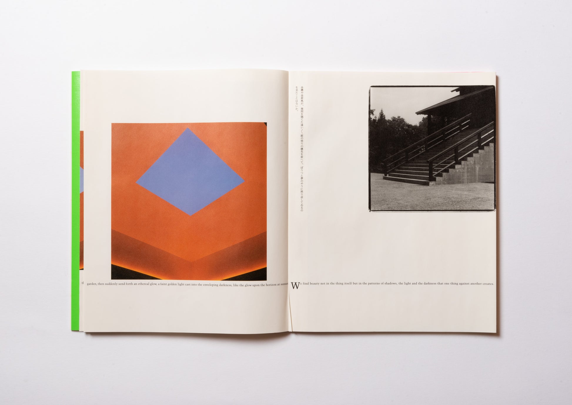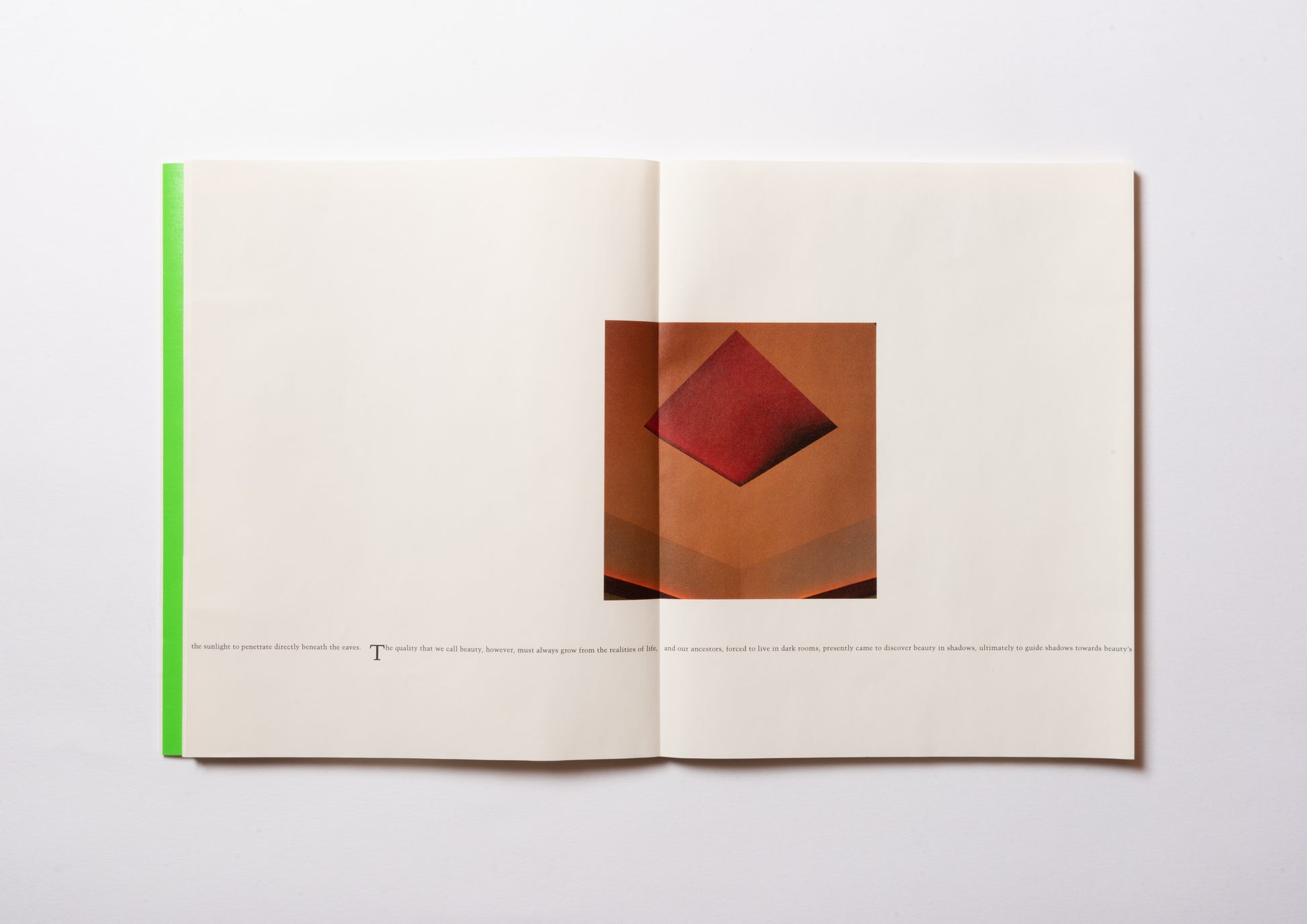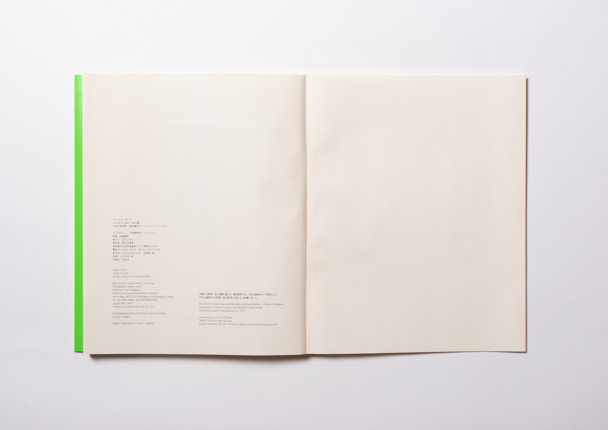 A collection of photographs of Turrell's work by Shigeo Anzai, with text by Junichiro Tanizaki. This art book features an elaborate binding that mimics Tarel's light.