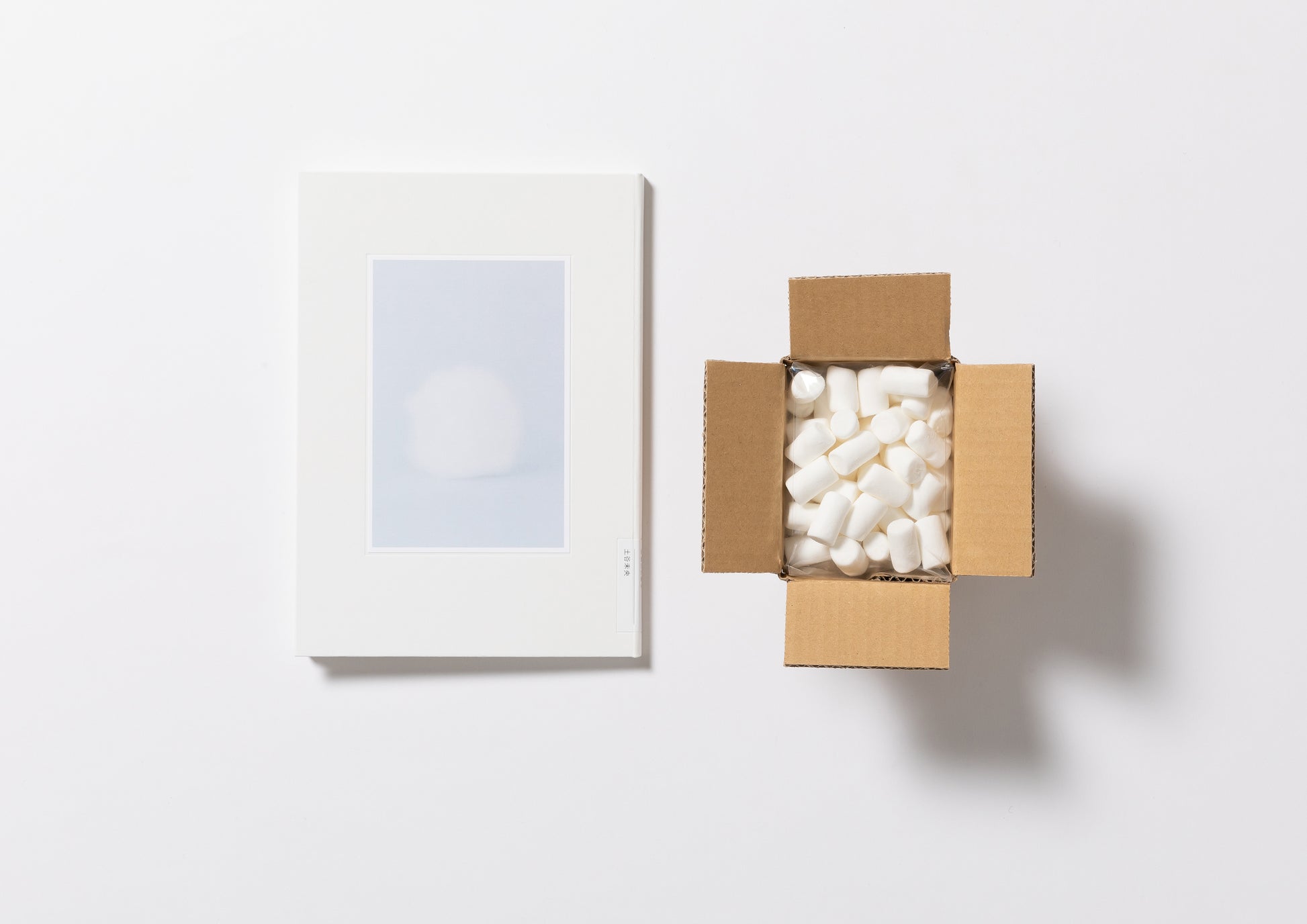 This time, we will be selling a limited number of edible "marshmallow foam" exclusively at FRAGILE BOOKS. It is a small palm-sized cardboard box packed with soft marshmallows. Of course, you can eat them. They are delicious as they are, lightly toasted with a bunner and sandwiched between cookies, or even added to hot chocolate on a cold day. They would also make a great surprise gift, with a small fragile item inside. They will be delivered together with specially made marshmallow stamps. Please enjoy reading "Sweets of the Air" while munching on a marshmallow. If you would like to purchase the book only,Click here