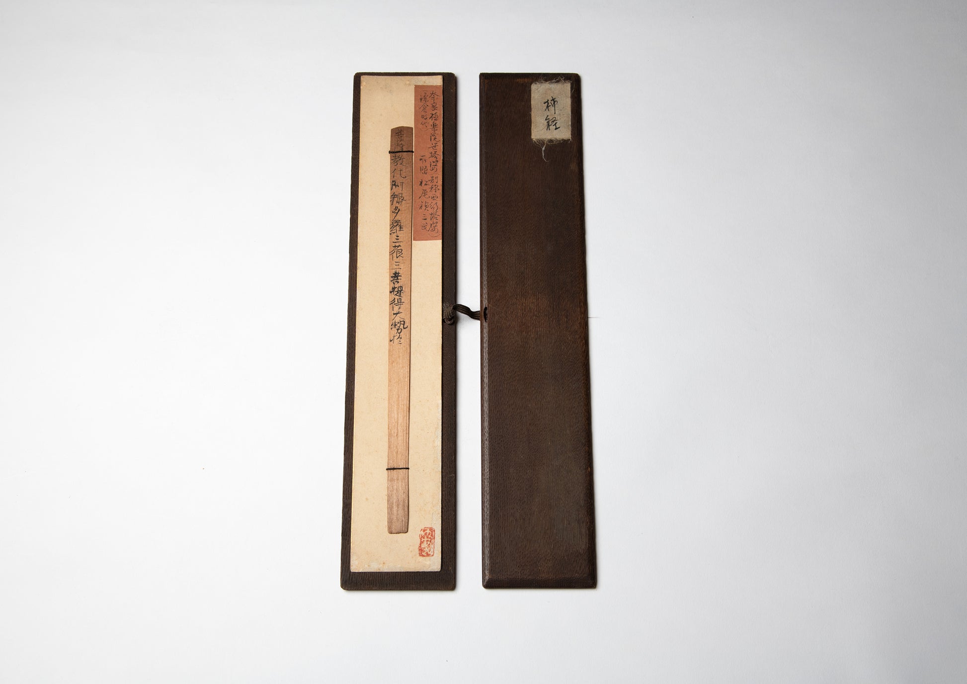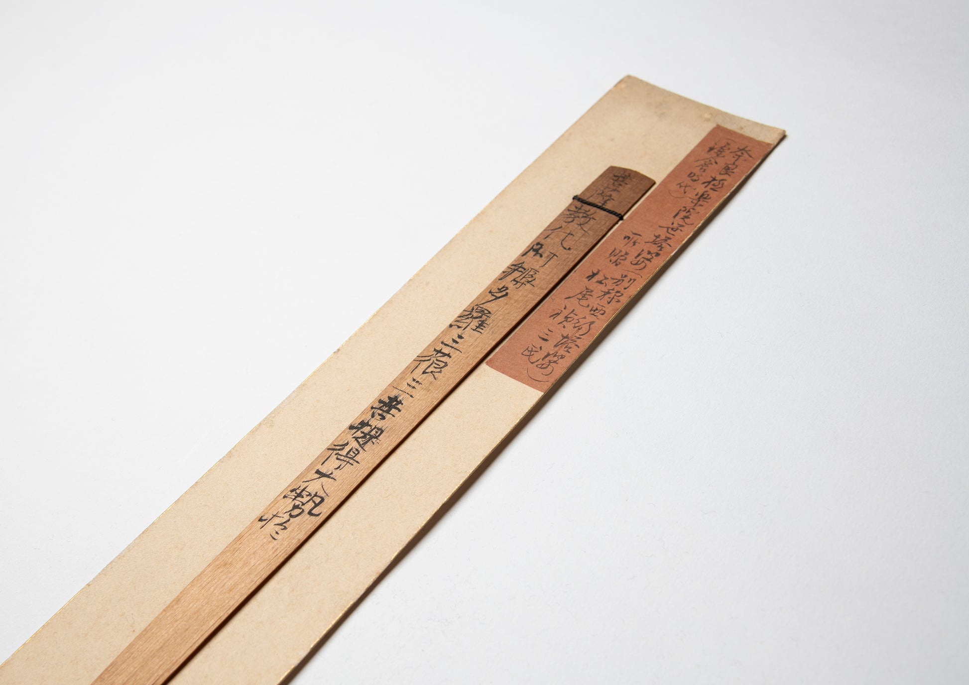 Kokerakyo is made by cutting thin pieces of cedar or cypress.Peel it off,Cut into pieces about 2cm wide and 30cm long.Thin plateThe front and back of these porcelains have sutras and other texts written in ink. They have been made since the end of the Heian period, and this piece is dated to the Kamakura period.