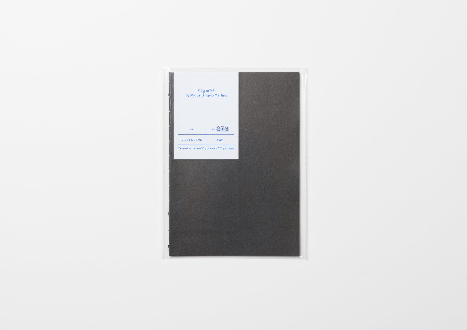 The title of this book is "5.2g of Ink$. Yes, the amount of black ink used to print one copy of this book is 5.2g. In other words, this book contains 5.2g of ink. The book was also a container for ink, a small but significant discovery.