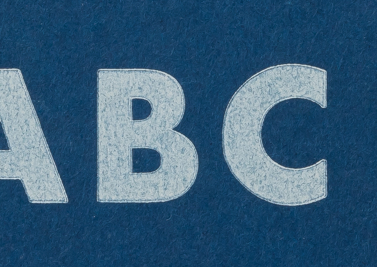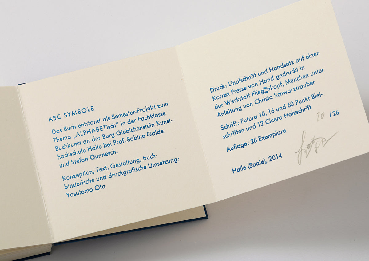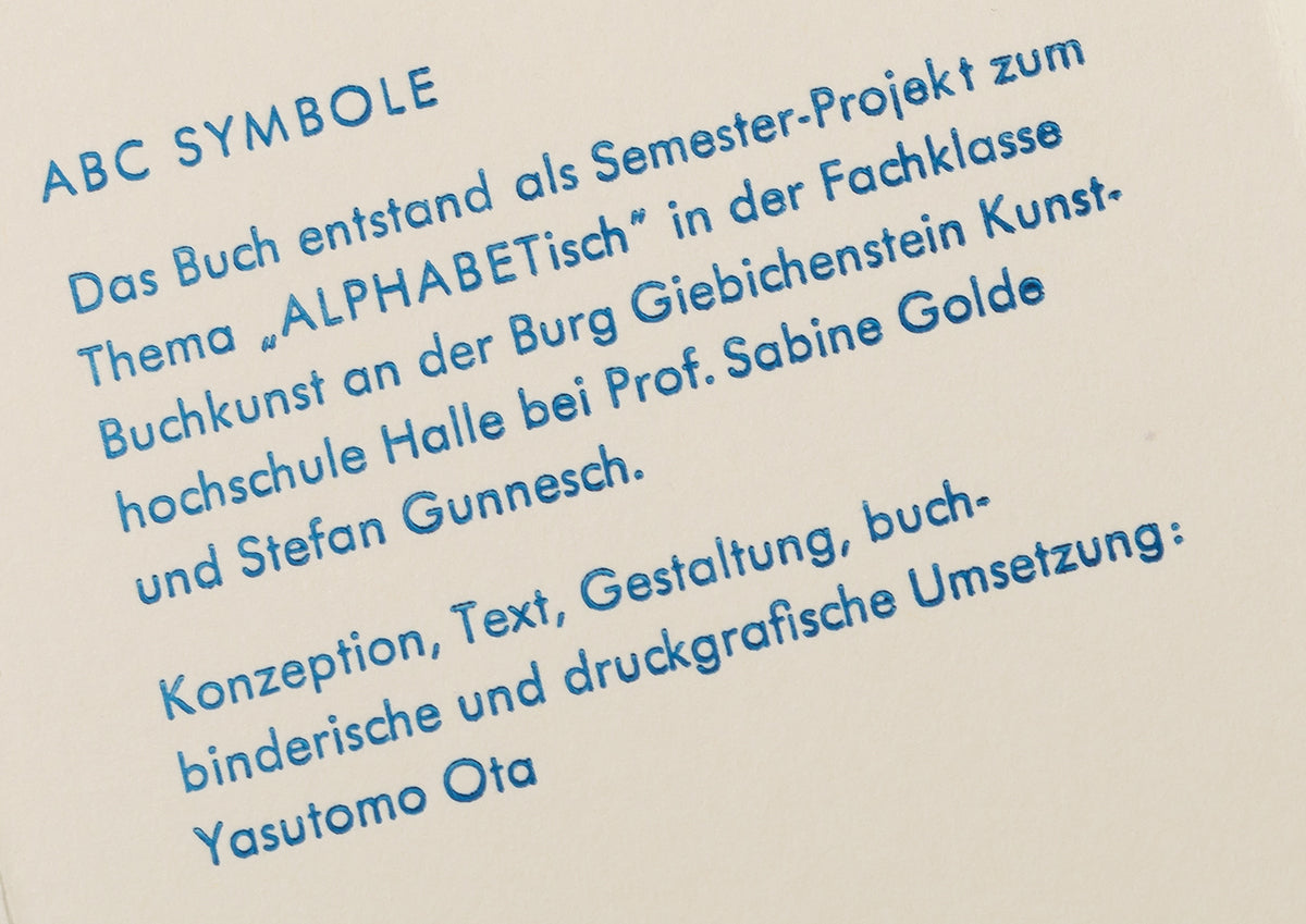 The size fits comfortably in the palm of your hand, the texture of the cloth, and the soft ABC shape of the title make it feel familiar. When you open it, you'll be excited by the light, flip-flap movements of the book, like a child's pop-up book. The soft impression of the wood type and the tasteful symbols of the prints create a worldview reminiscent of an adult picture book.