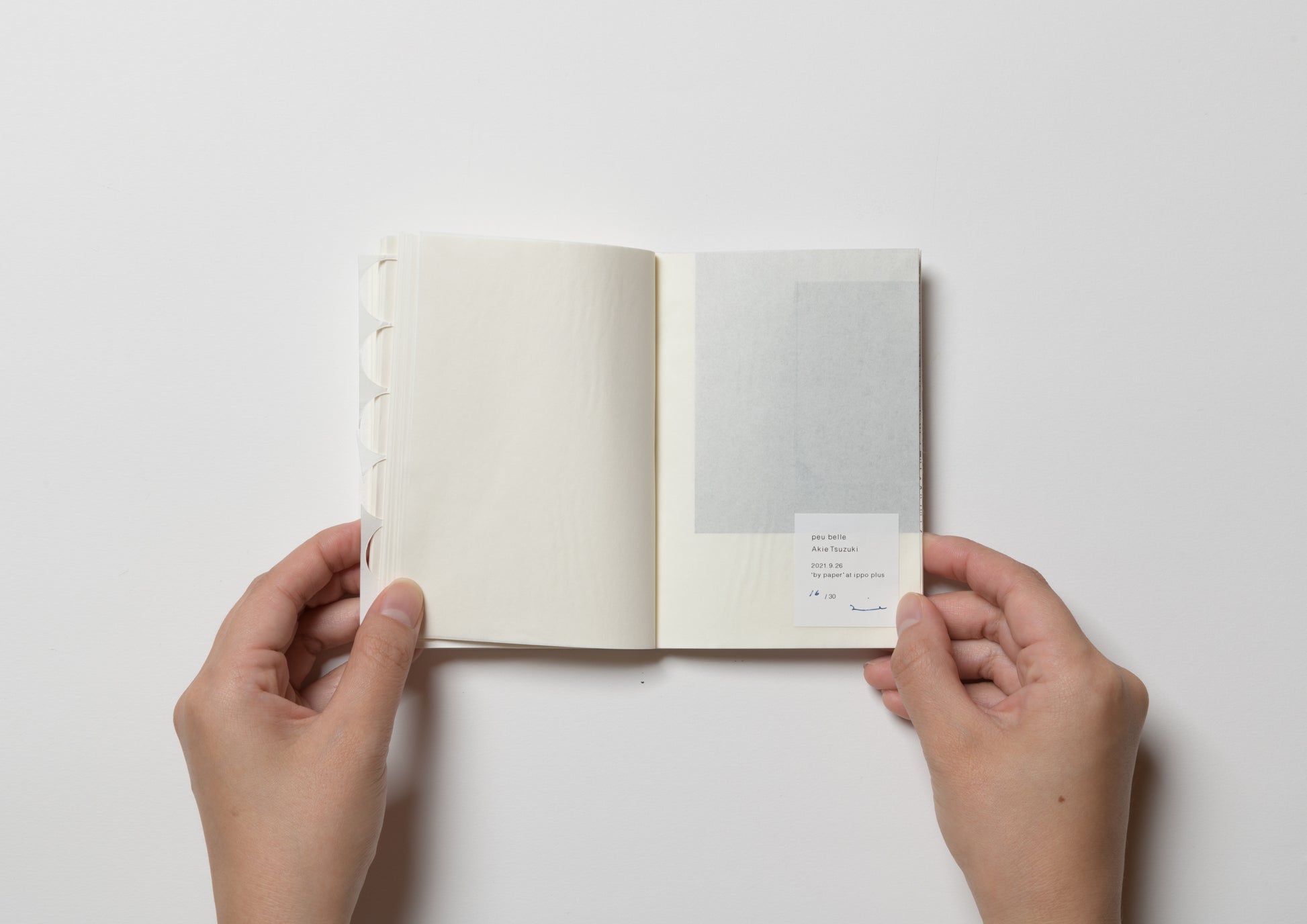 2021In Osakaippo plusSolo exhibition at "by paper" and I was also asked to create new "works" to exhibit at the gallery. I was racking my brains, not knowing what to create, and the owner, Moriya, couldn't bear to see me like that, so he visited my studio many times. Every time he came, he would pick up the things hanging on the walls, open drawers, examine the pieces carefully, and say with affection, "This is already a work of art." Seeing this, I wanted to somehow respond to him, and so this little book was born.