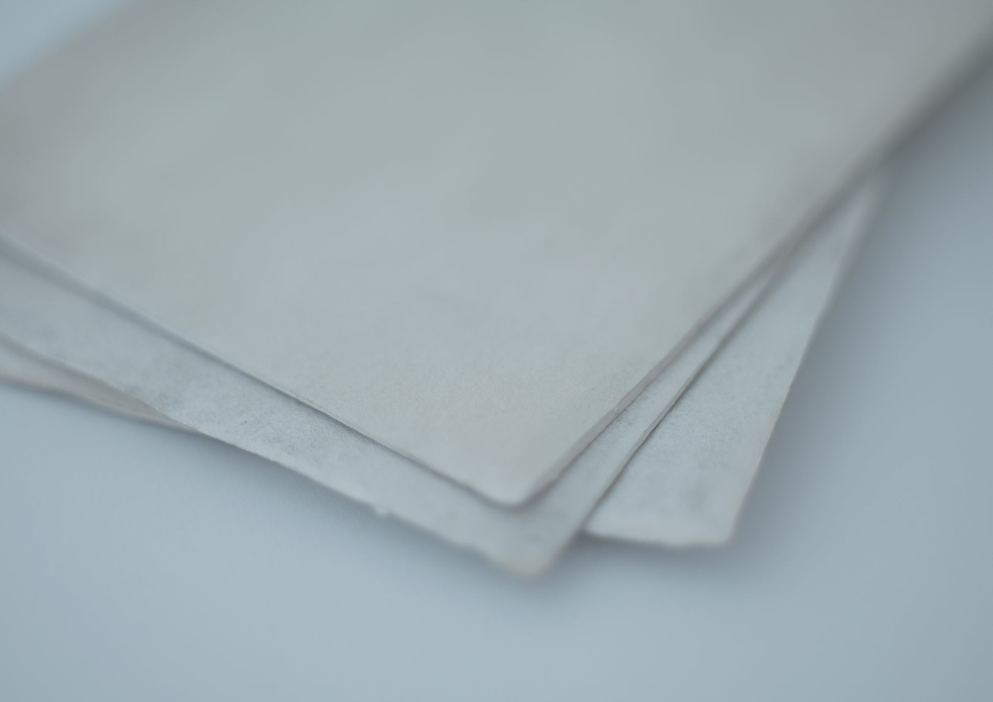 Its mysterious texture, which looks like paper but is not paper at first glance, is due to the material used.When the surface of a piece of Japanese paper is coated with deyusho (a liquid mixture of clay and water that looks like mud) and laid out on a board to dry, the piece of paper warps and rolls up as it dries. The changes are like wet, wavy paper.