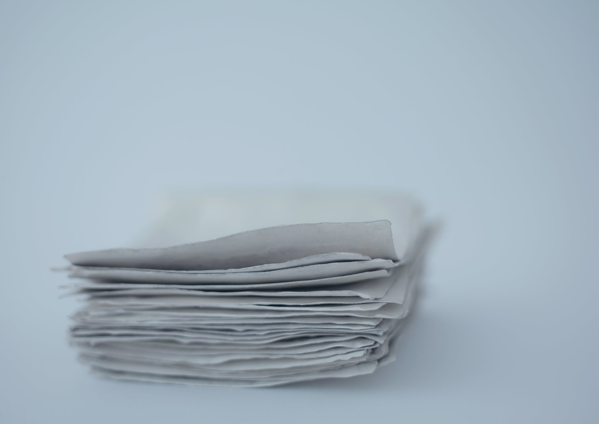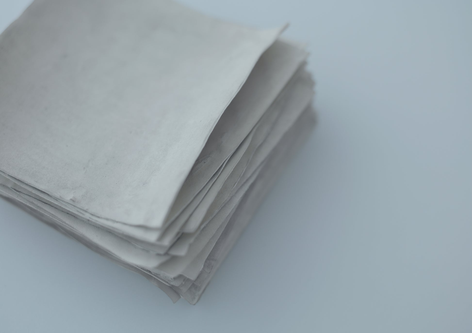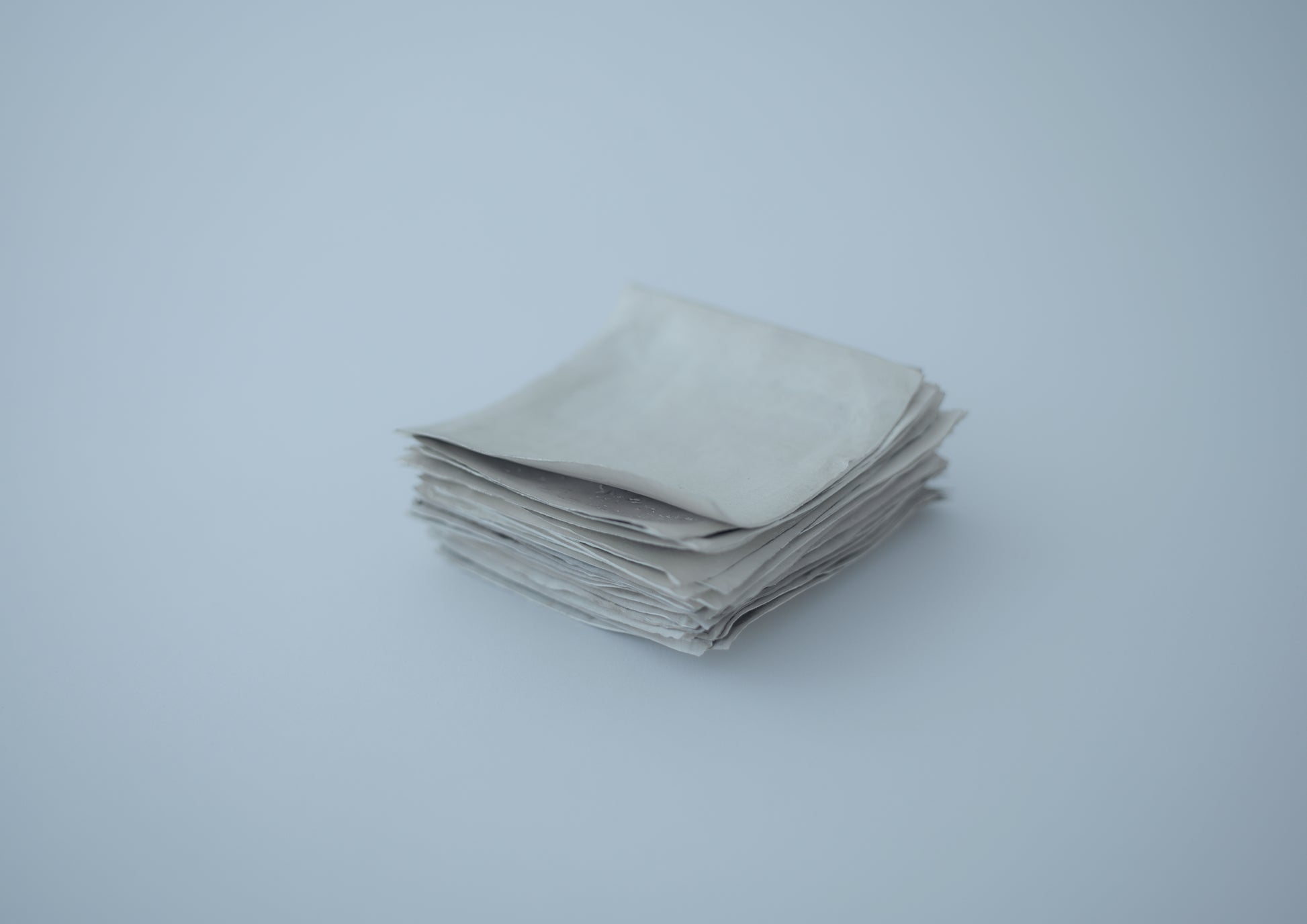 When the dried pieces of paper are unglazed, a thin piece of porcelain clay is formed that transcribes the expression of the washi, but at the same time the washi is burned away, leaving only its shadow. The instantaneous form of the paper and the way it changes its expression over time is like the layering of time that knows no bounds.