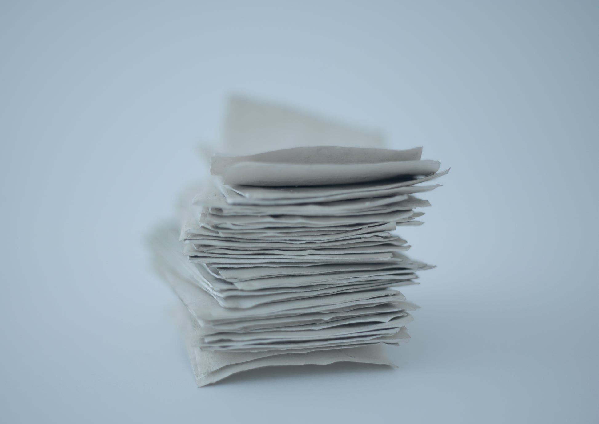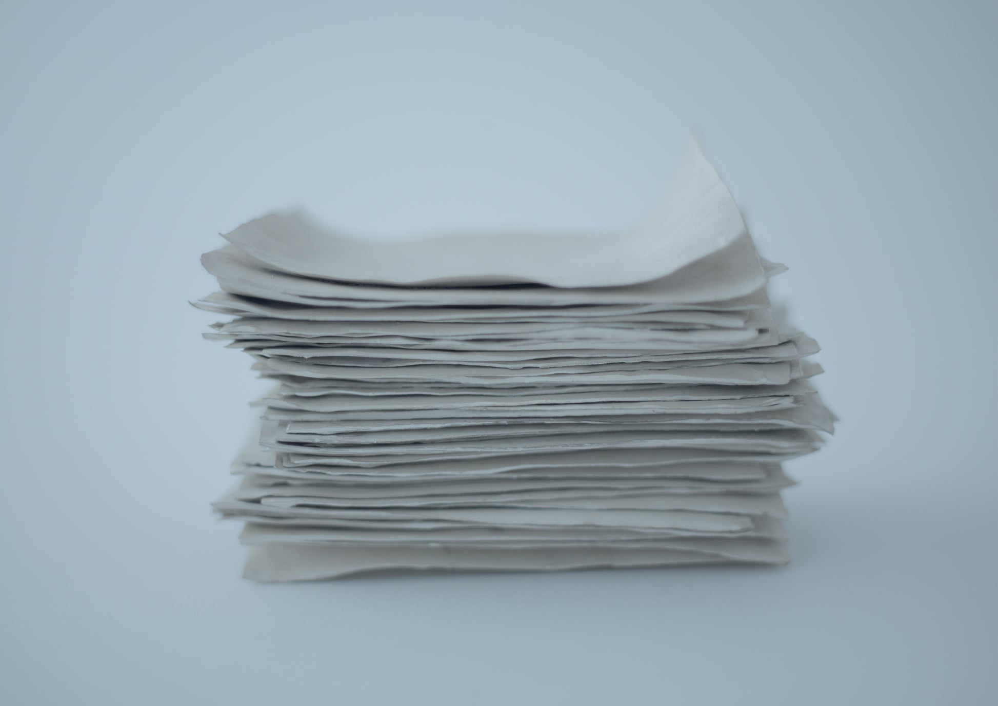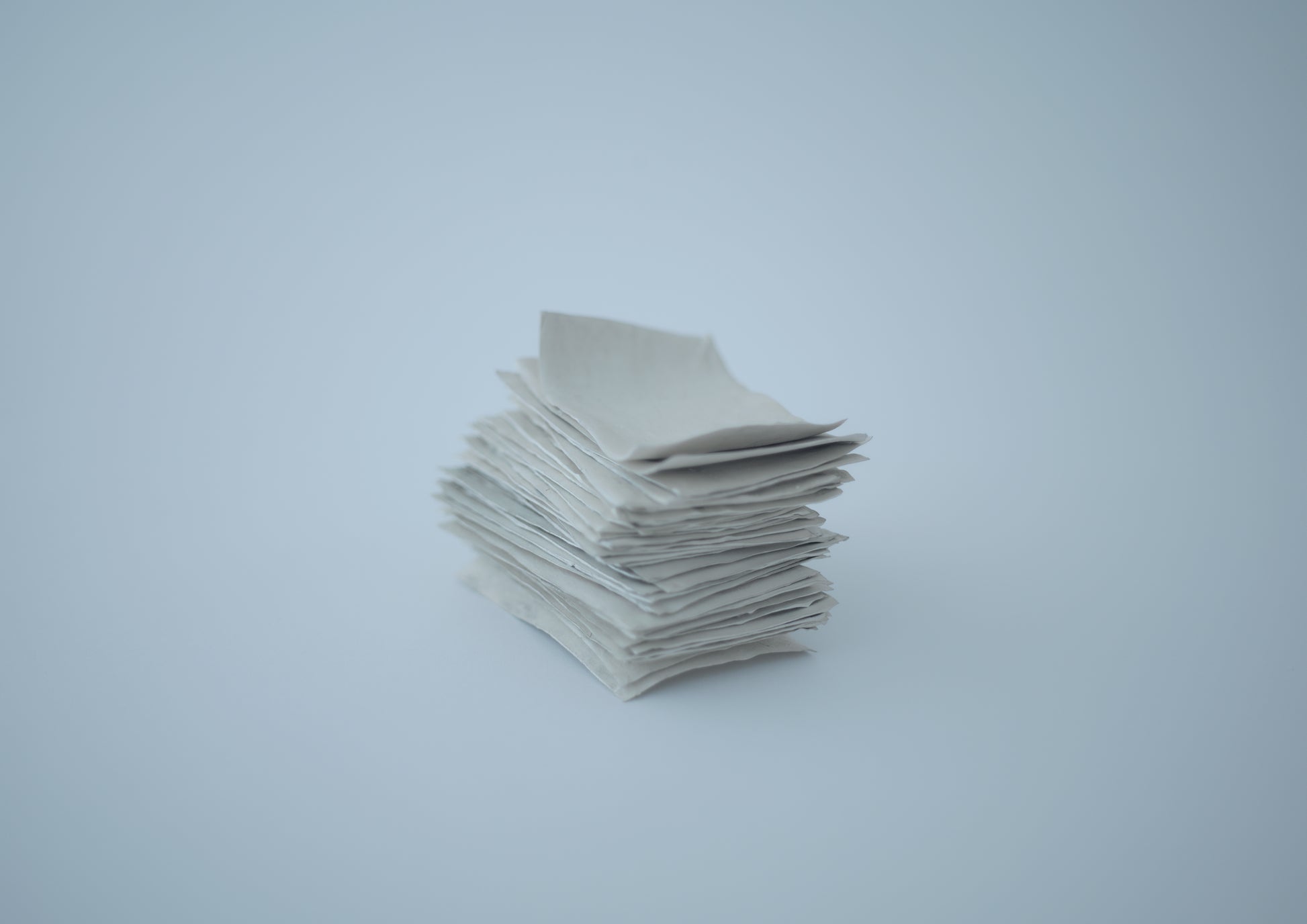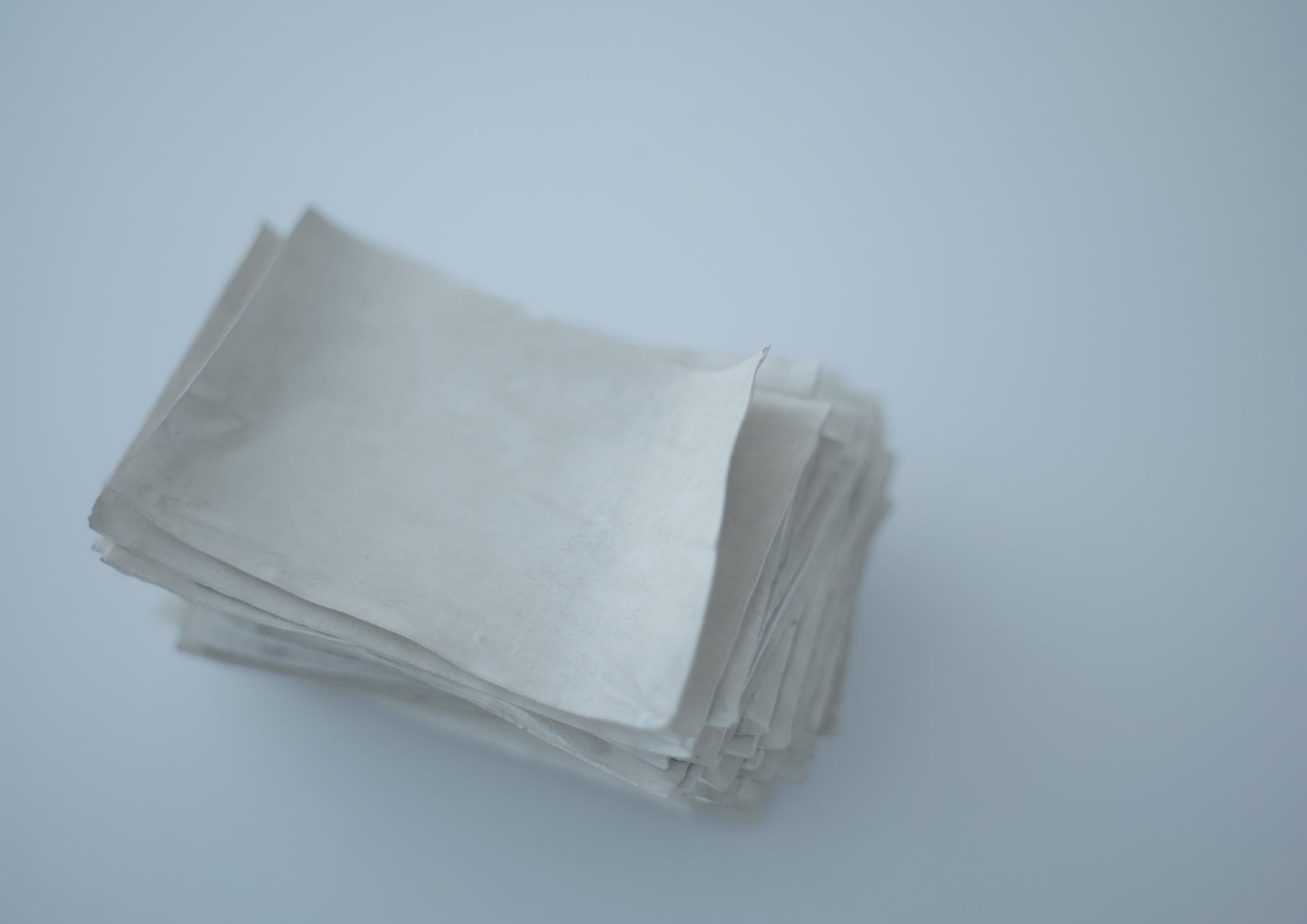 When the dried pieces of paper are unglazed, a thin piece of porcelain clay is formed that transcribes the expression of the washi, but at the same time the washi is burned away, leaving only its shadow. The instantaneous form of the paper and the way it changes its expression over time is like the layering of time that knows no bounds.