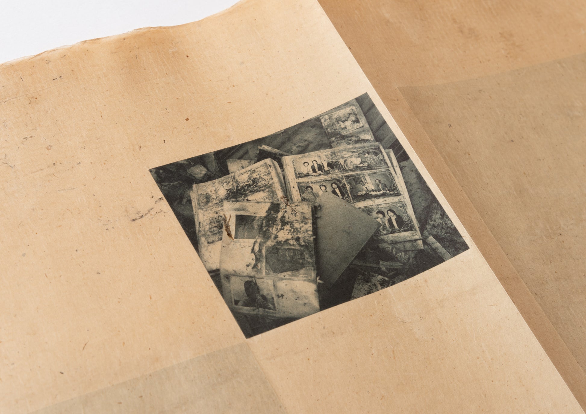 - ハンブルクの版画工房ラース・ダームスによって刷られた5点のヘリオグラヴュール。奥付と注記:雁皮紙に活版印刷。Five photogravures printed by Lars Dahms in Hamburg on 70-year-old Japanese ganpi paper. Colophon and remarks: Letterpress print on ganpi paper.