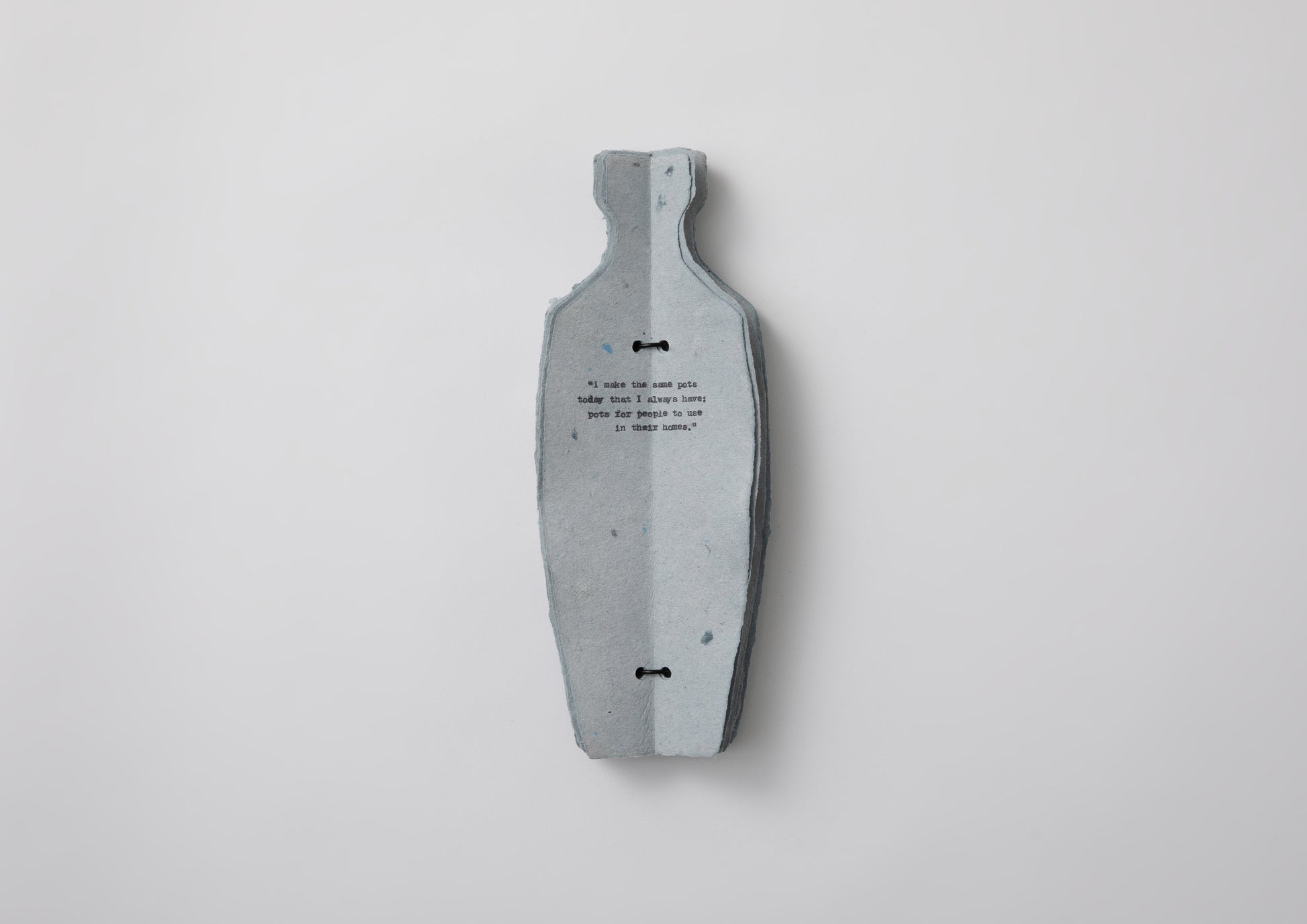 Warren made sure to do the molding as well as the mixing of the ceramic clay himself. Erica not only bound books, but also made her own paper and typed on a typewriter. It is precisely because Erica respected her father-in-law, Warren, and carefully observed his work that she was able to create her own memorial to him. I am honored to be able to present this body of work in Japan.
