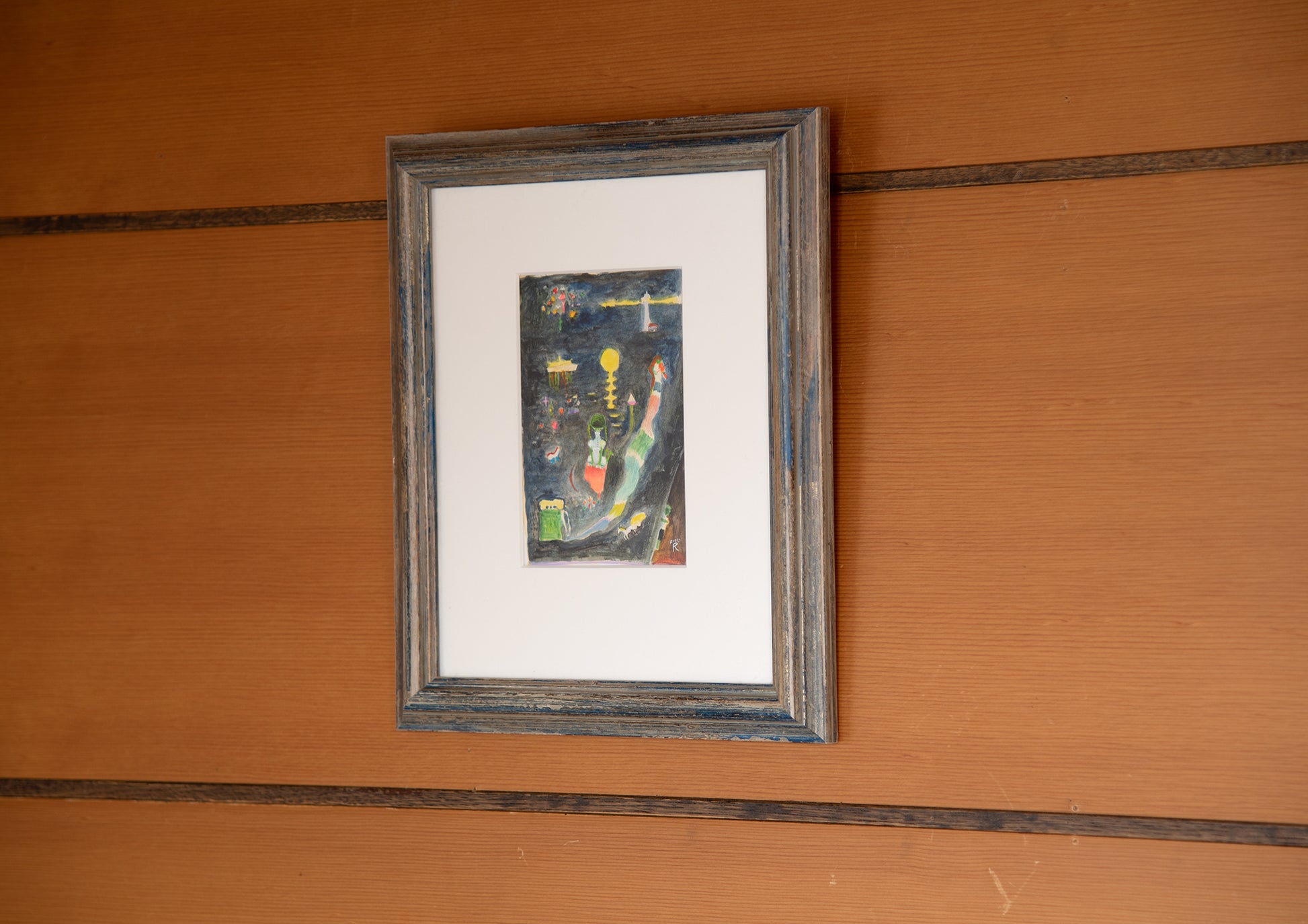 The theme of the original painting was "dark color paintings," so I usually wear refreshing colors.White woodAfter consulting with Arai-san, who has experience in choosing frames, we chose a dark frame that would go well with the dark paintings especially for this occasion. From among several candidates, Arai-san chose a frame that evokes the passage of time, as if it had been there for a long time.
