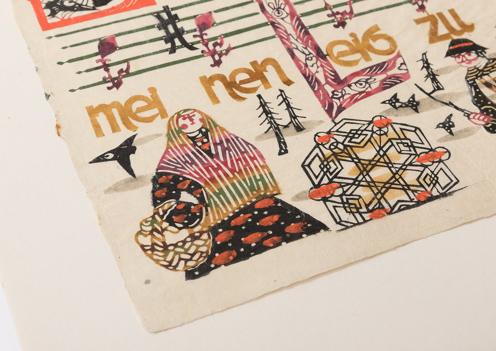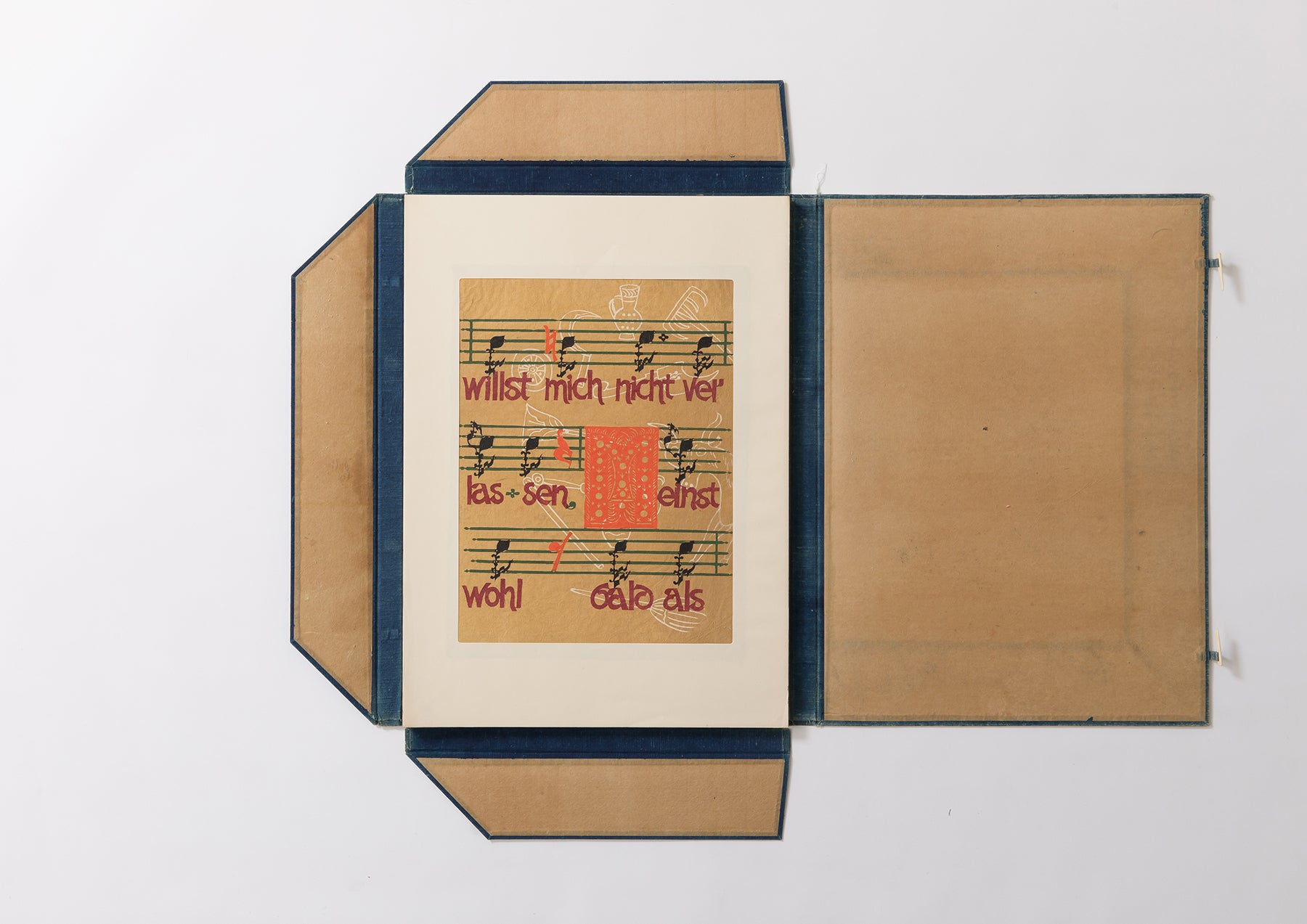 Tokujiro isHe also loved music. His passion wasIt was such an essential part of life that people carried large gramophones with them to their evacuation sites during the war.He especially loved Verdi's operas and Schubert's lieds (art songs), which he would always play in his studio like a radio. It was a natural progression from this that he began stencil-dyeing music notes, and at the age of 77, he created this book.is.This is the last major work of his life, and his last collection of stencil prints. Only 80 copies are available. It was wrapped in a case that I had dyed myself.