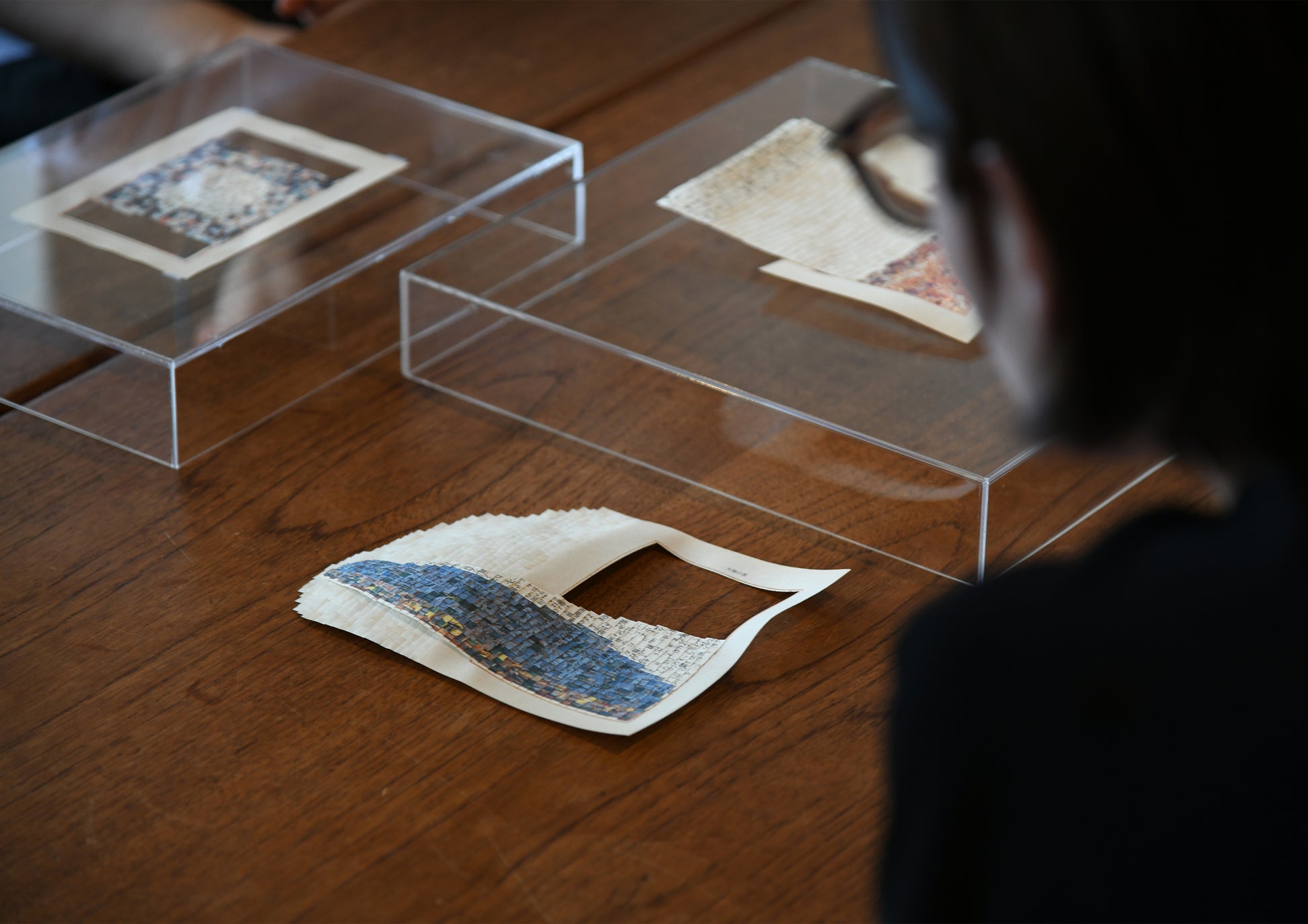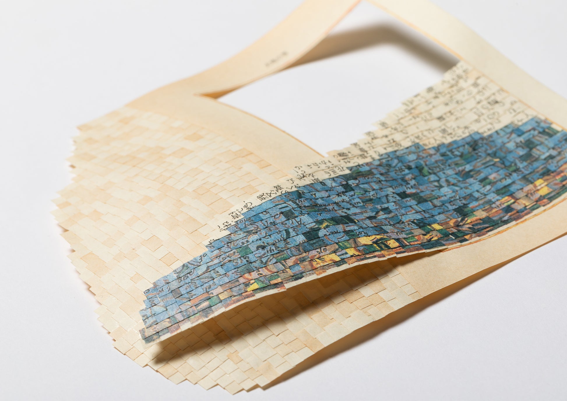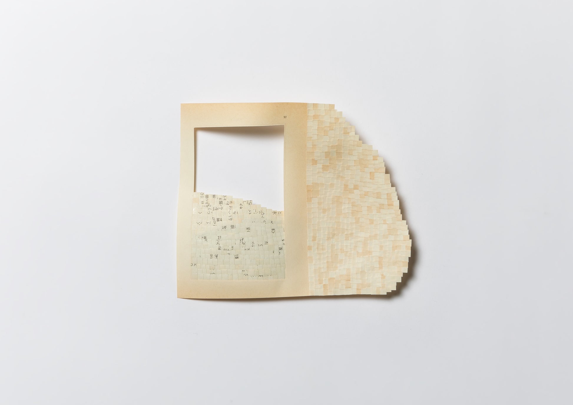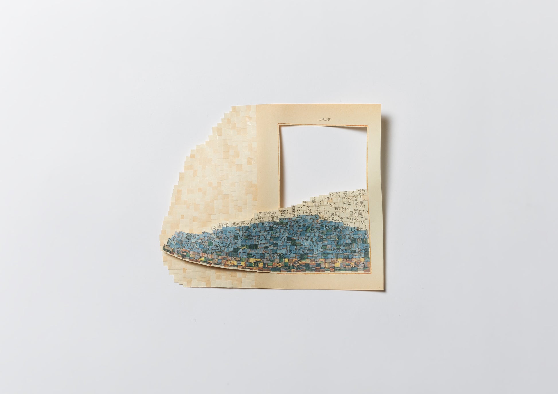 Kadokawa Bunko"Songs of the Heartless, Songs of the Heartful - The Poems of William Blake"(Translated by Toshitake Bunsho)The Earth's AnswerThis work was created by cutting up pages of the book and randomly pasting them together with glue, without losing a single letter.Perhaps due to the effect of layering glue, the edges are curved like a sake cup.
