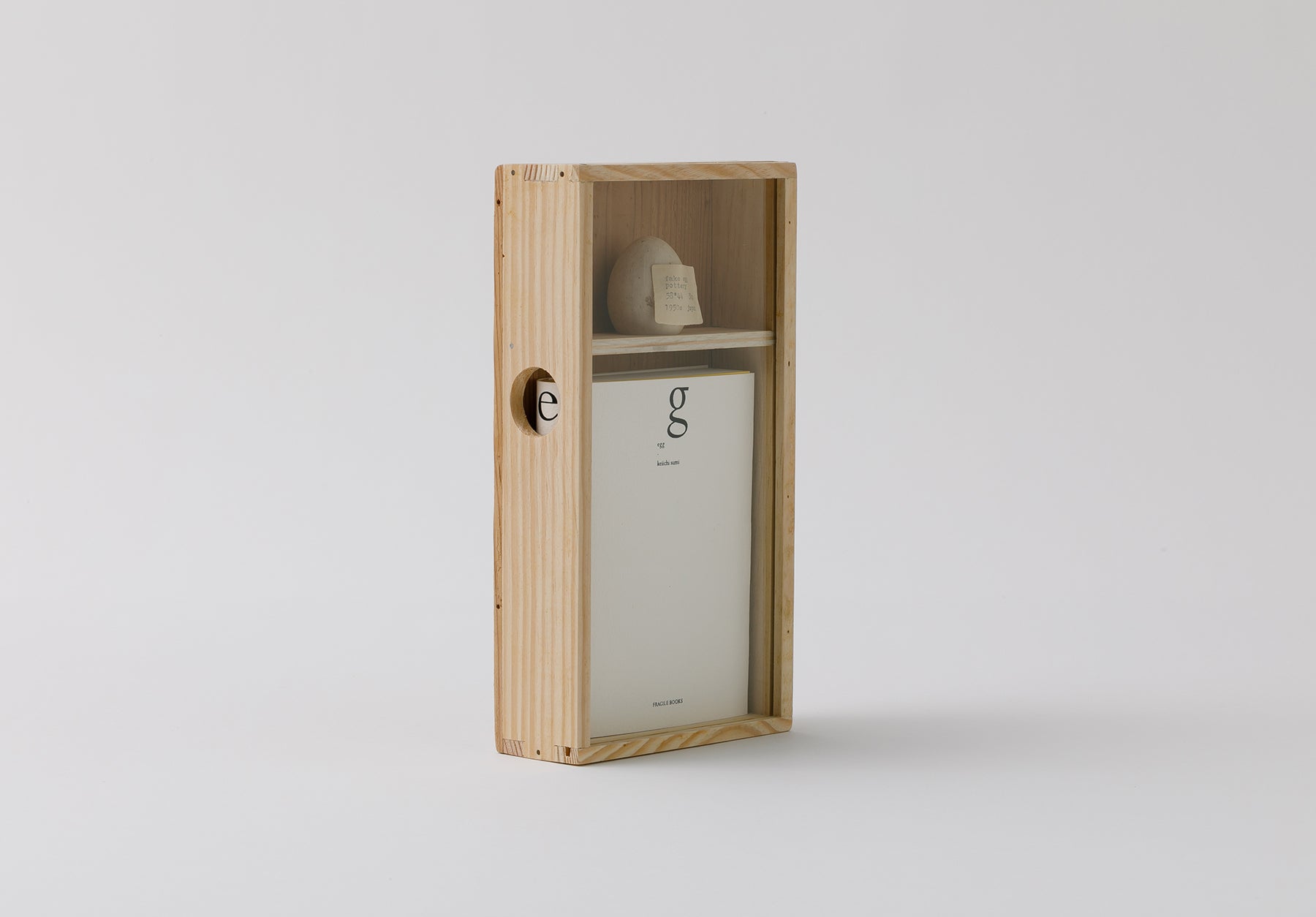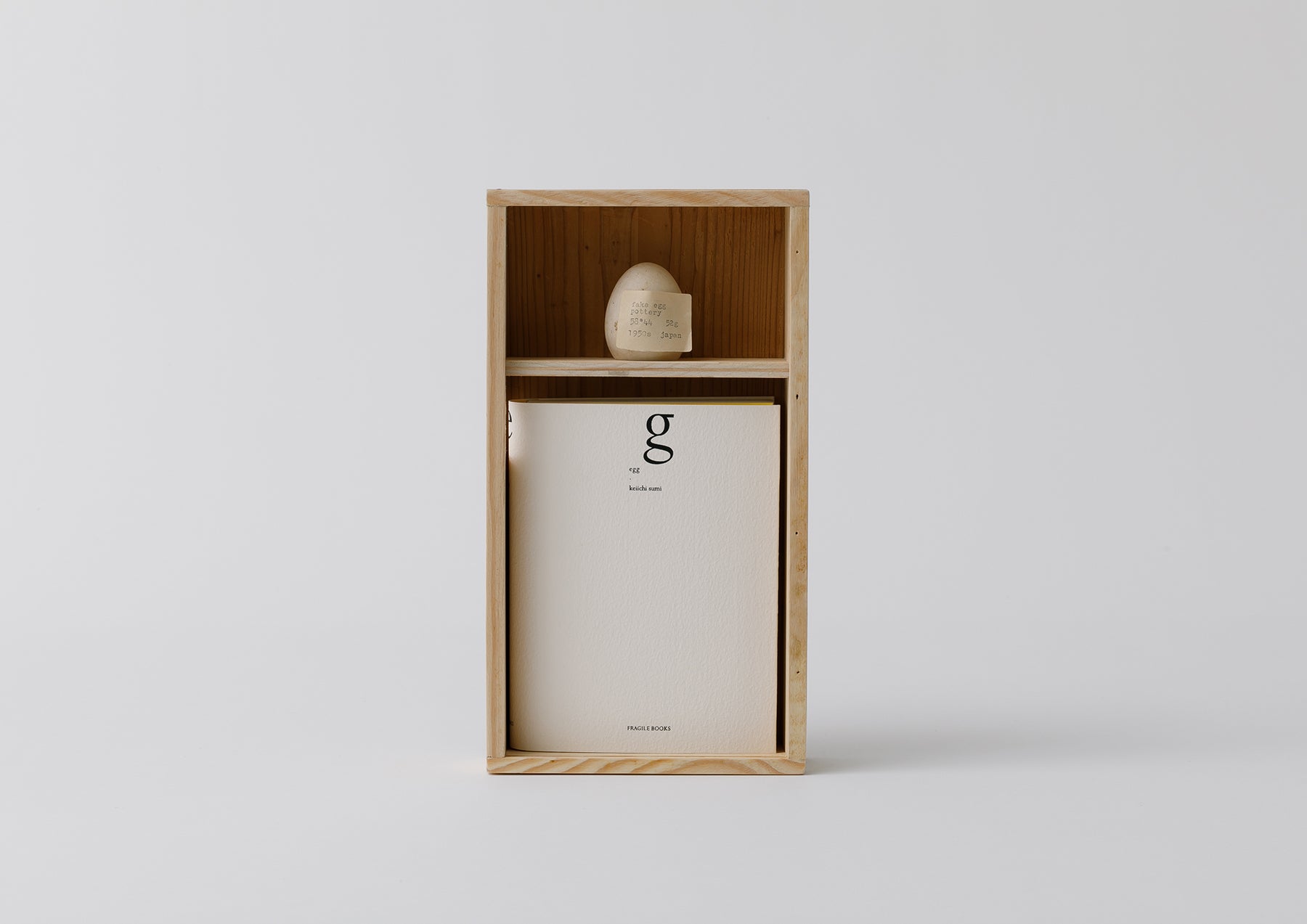 澄敬一の「エッグ・コレクション」の中から、タグ付きの偽卵1個をおすそわけしてもらい、本といっしょに澄さんが作った木箱に収めます。このマルチプルは9箱限定です。
