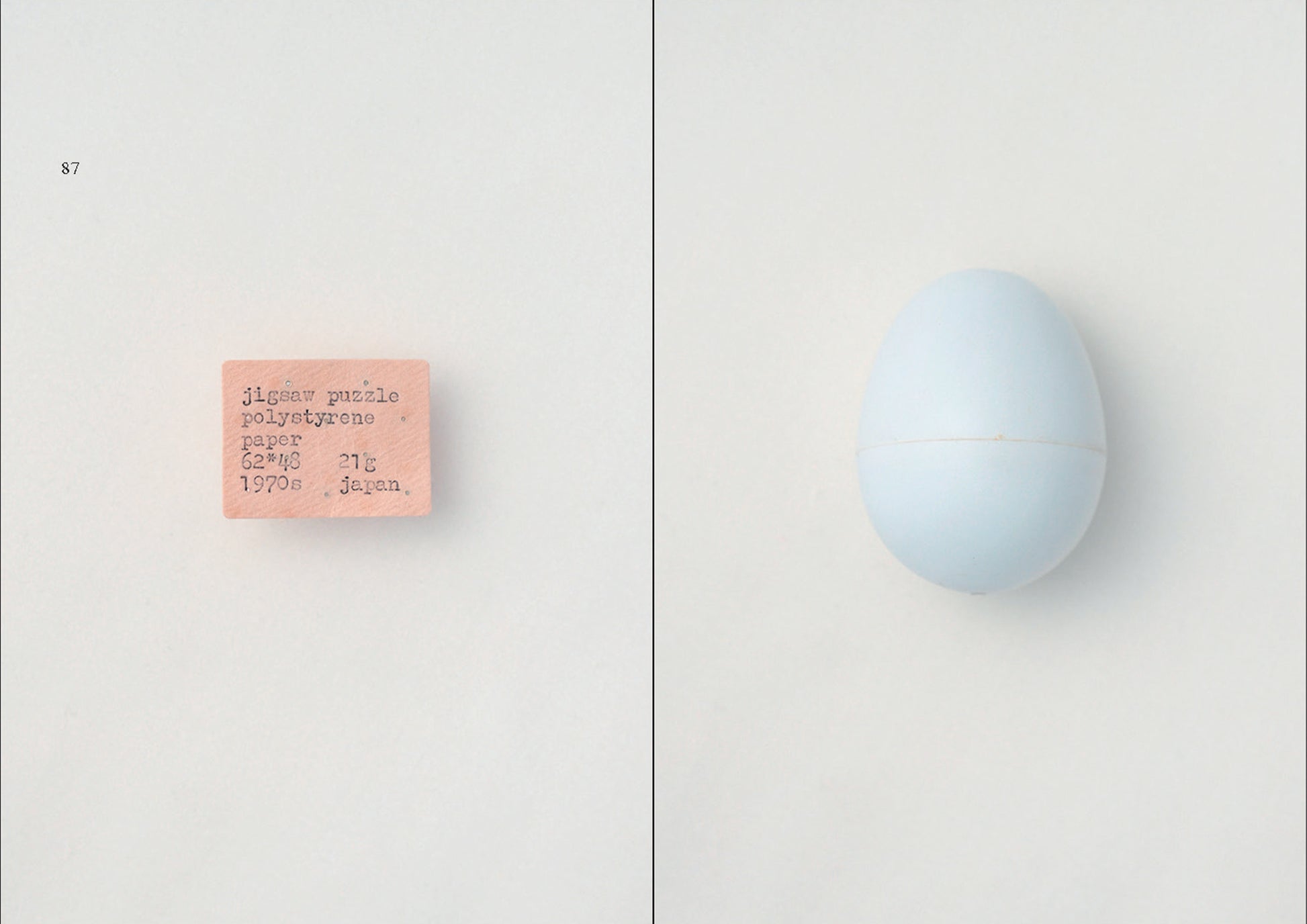 この本に収めた160点の偽卵は、いずれも19世紀末から21世紀初頭にかけて世界各地で産まれている。偽卵といっても、鳥の産卵を抑制するためのものはごく一部で、玩具や健康グッズ、オーナメントや手品道具、調理器具や食品サンプルなど、いまとなっては探し出せないありとあらゆるフェイクエッグが登場する。工場で大量生産されたものから、ひとつだけ机の上で縫われたものまで、ぼくにとってこの本は忘れられたカルチャーのスコアブックのようなものなのです。 (本書あとがきより)