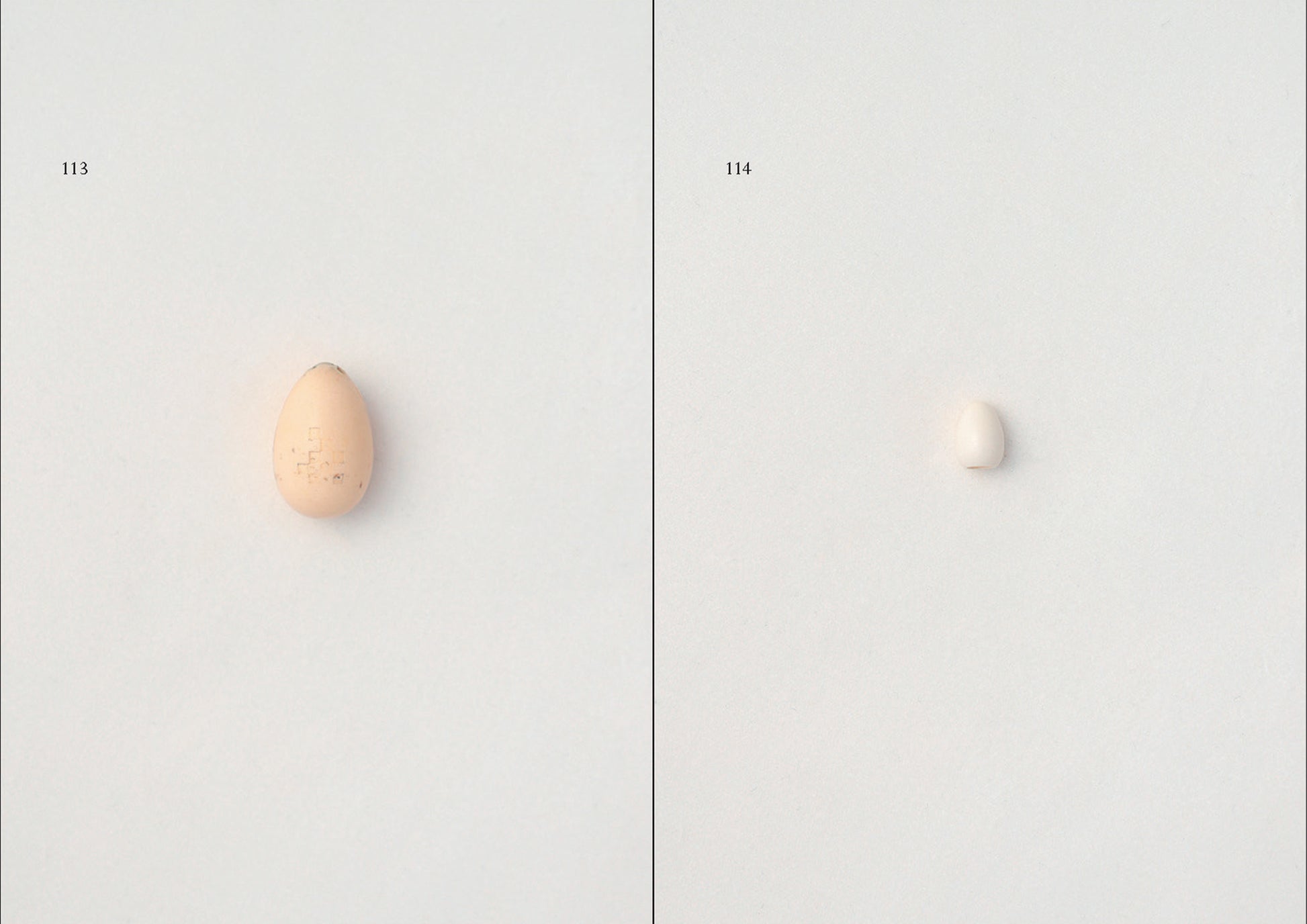 そうですね、ぼくが集めているのは、どれも大量生産品ですが、同じ形のものはひとつも無いんです。卵の輪郭はシンプルで、世界のだれもが似たような卵らしさを感じることができるのに、それでも設計する人や、地域や時代や用途によって、アールの取り方や重心の位置が違ってくる。量産品のなかにも個性が潜んでいるんです。