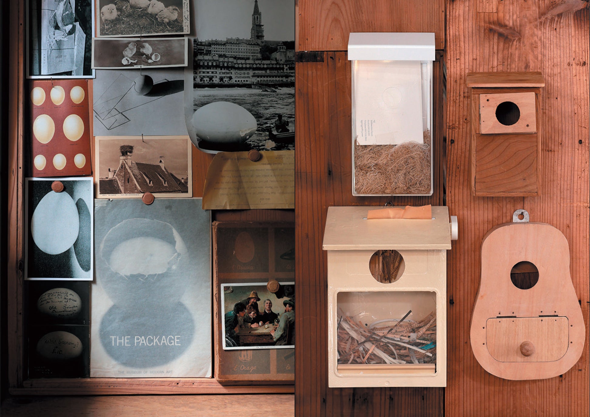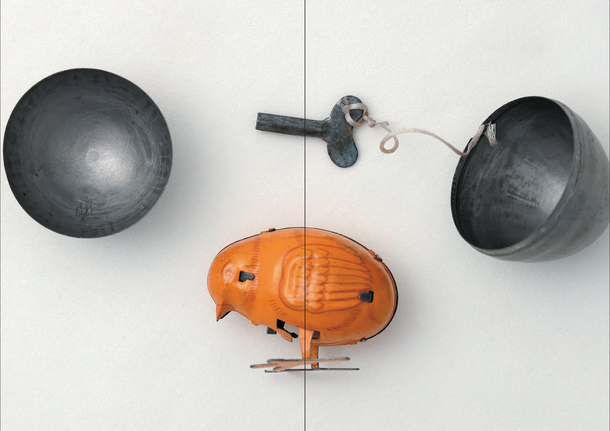 2001年に池尻大橋で「push me pull you」という店を始めた頃、近所に捨てられていた壊れた鳩時計を拾ってきて、修理して飾ったのがきっかけでした。「そこに鳥がいるなら、卵も欲しい」と思ったんです。静物画のような風景をつくりたかったのだと思います。それから数年後に、骨董市でたまたま数百個のカラフルな卵型マラカスを見つけて、その中から白いものだけを選んで買いました。尋常じゃない数の卵と出会ったことで、収集に火がついたのかもしれませんね。そのマラカスは、プラスチックの卵に砂が入っていて、振ると音がシャカシャカ鳴って、重心が下がることで「コロンブスの卵」のように立つしかけでした。転がらずに安定する形にも惹かれました。