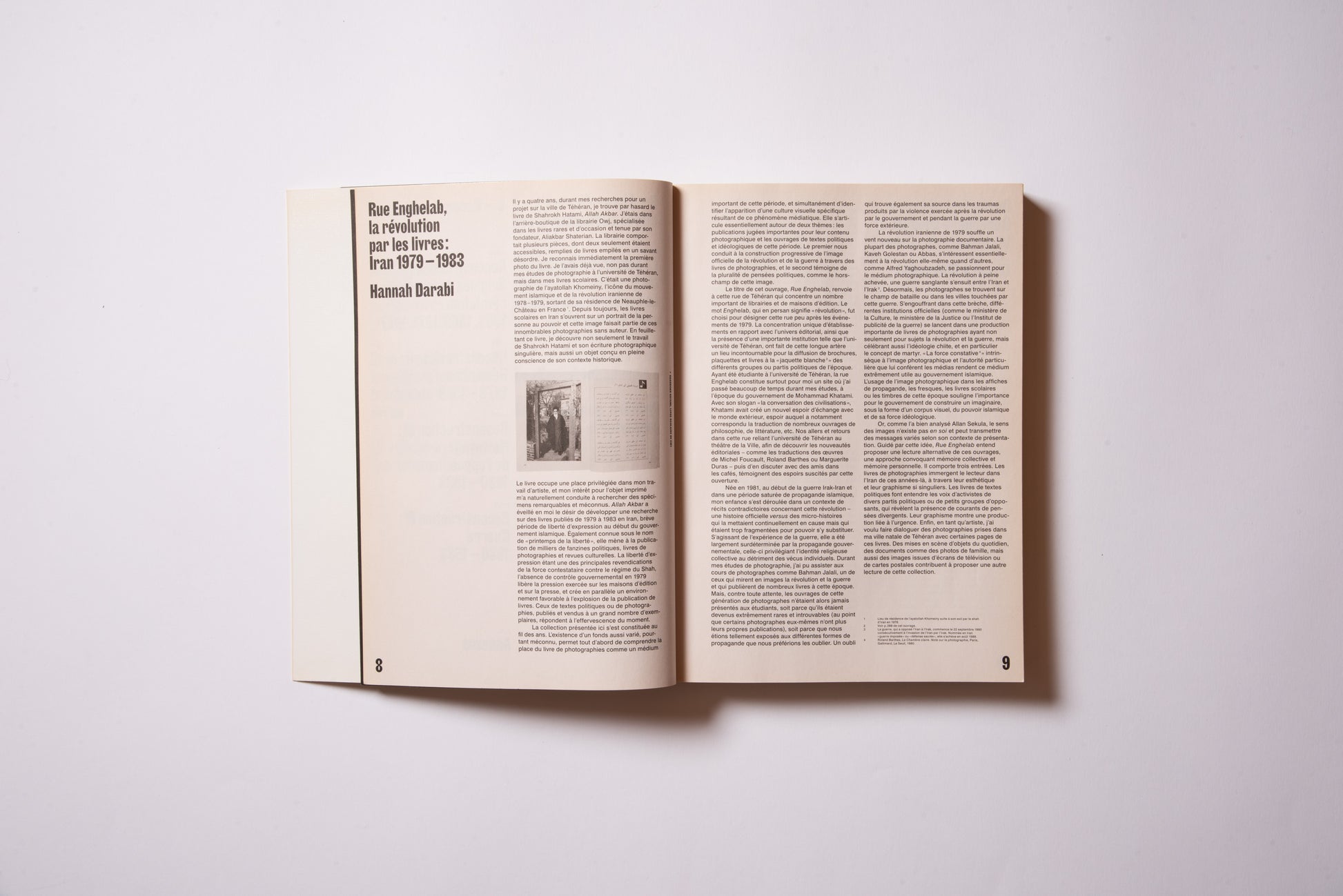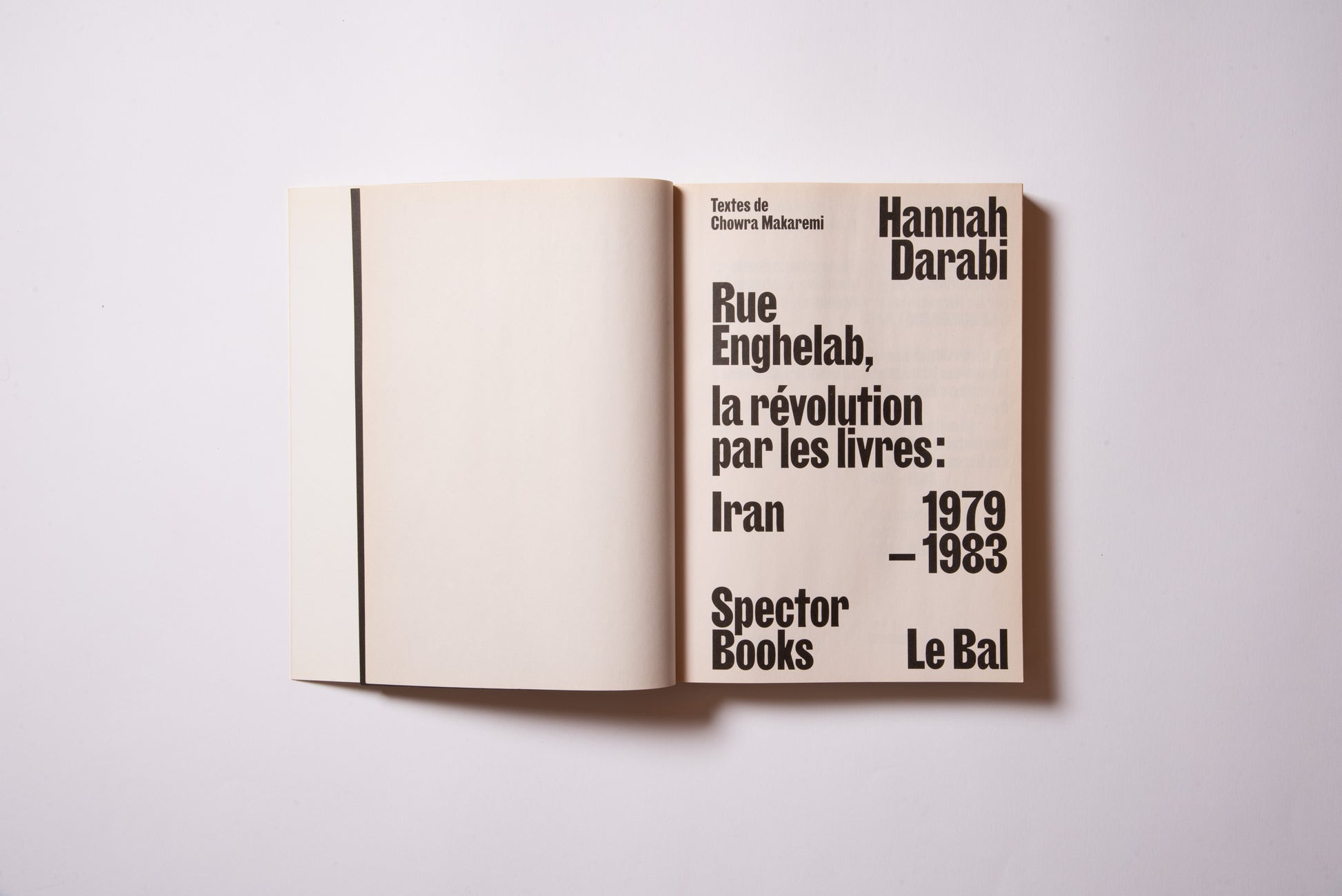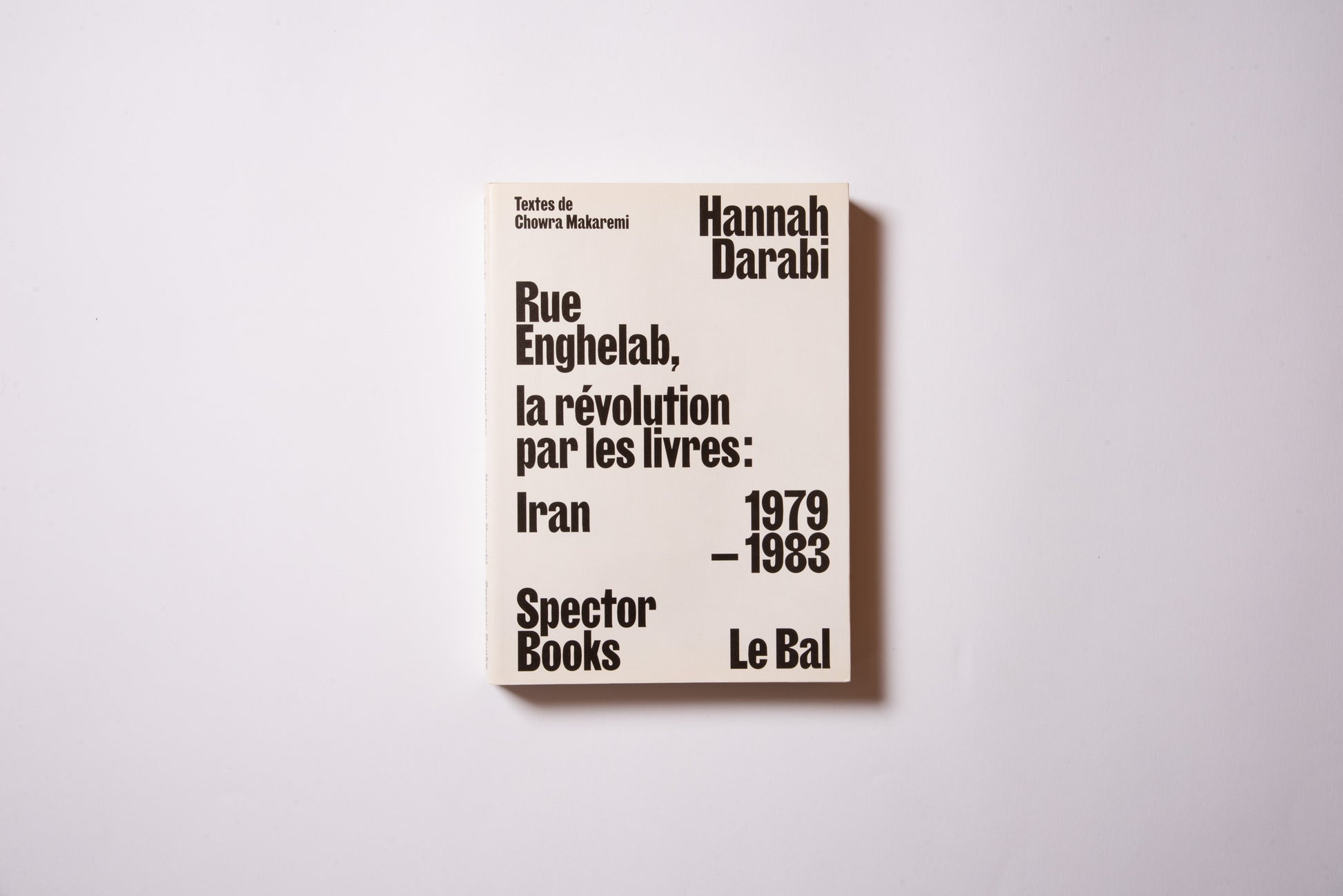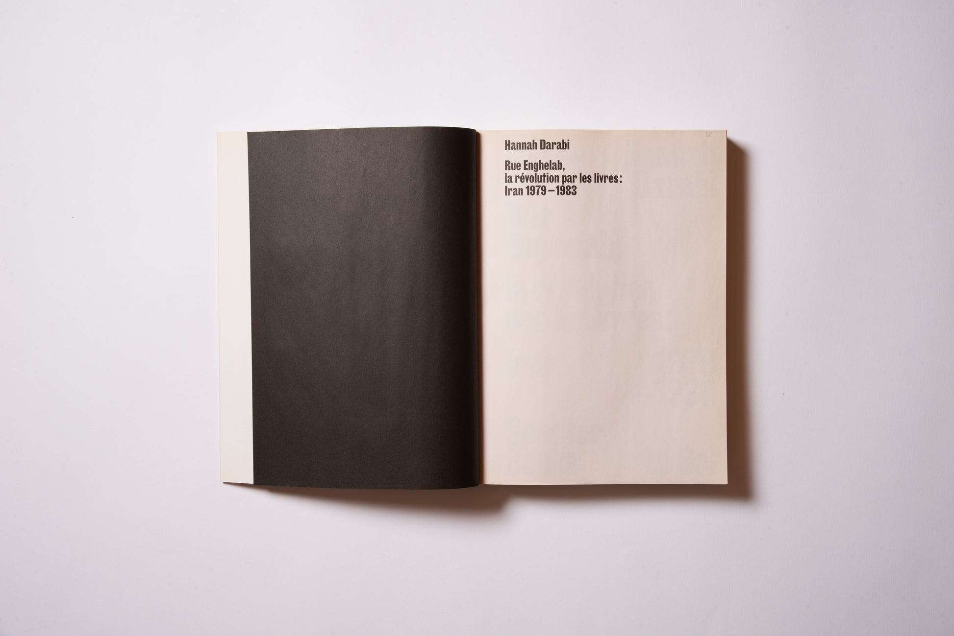 The publication was prompted by the exhibition of the same name, Hannah Darabi, Enghelab Street, A Revolution through Books: Iran 1979–1983, which was held at LE BAL in Paris from January 9 to February 11, 2019, and was supported by grants from the French National Center for Art and Design (CNAP) and the European Research Centre (ERC).