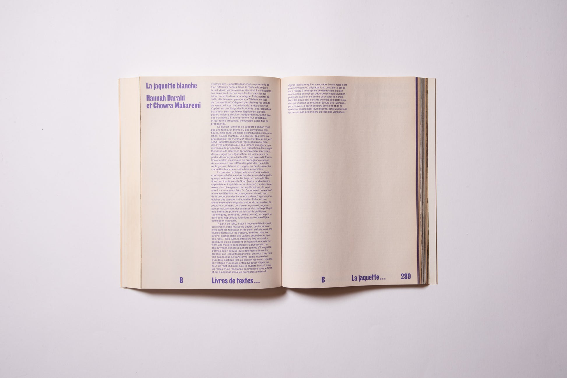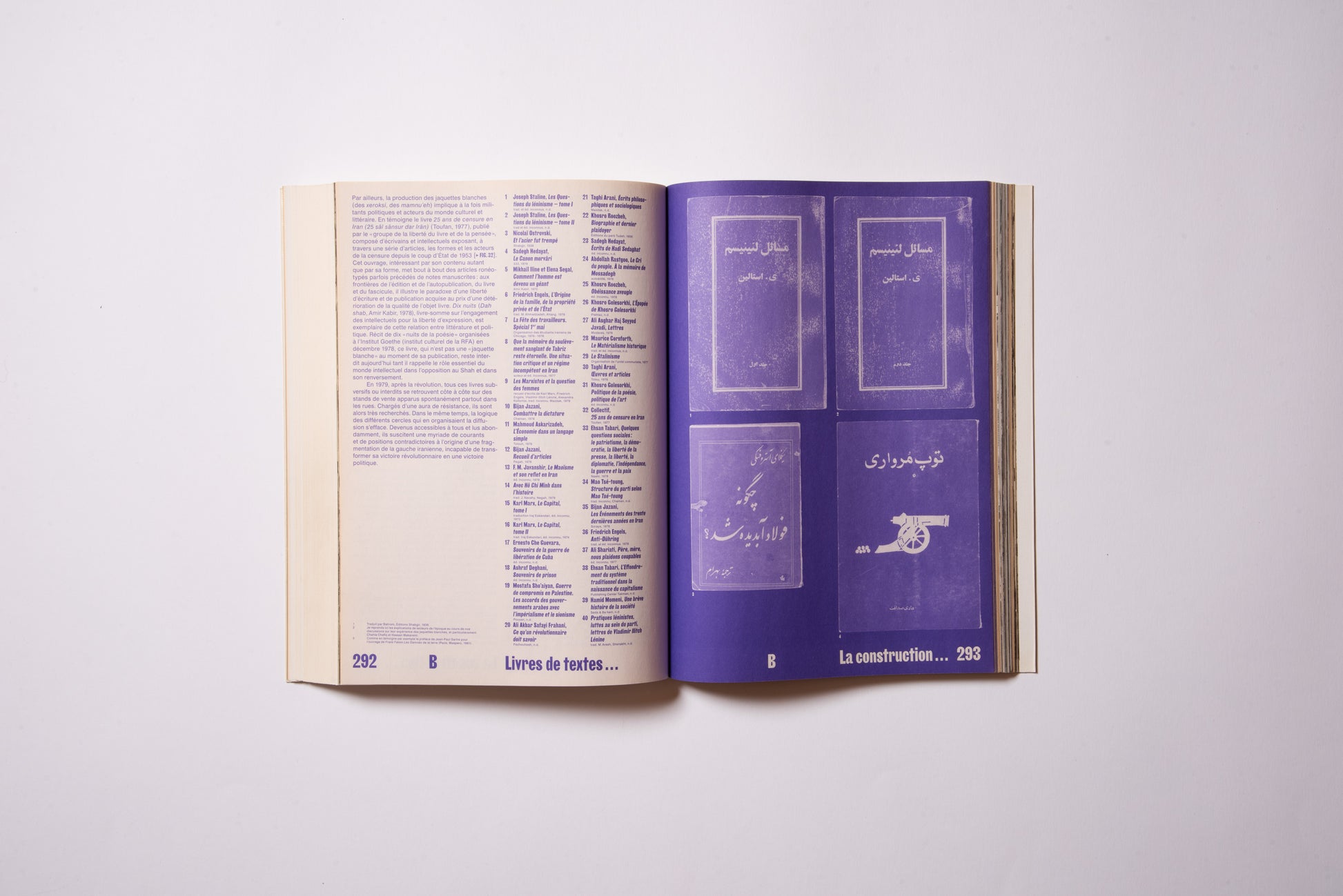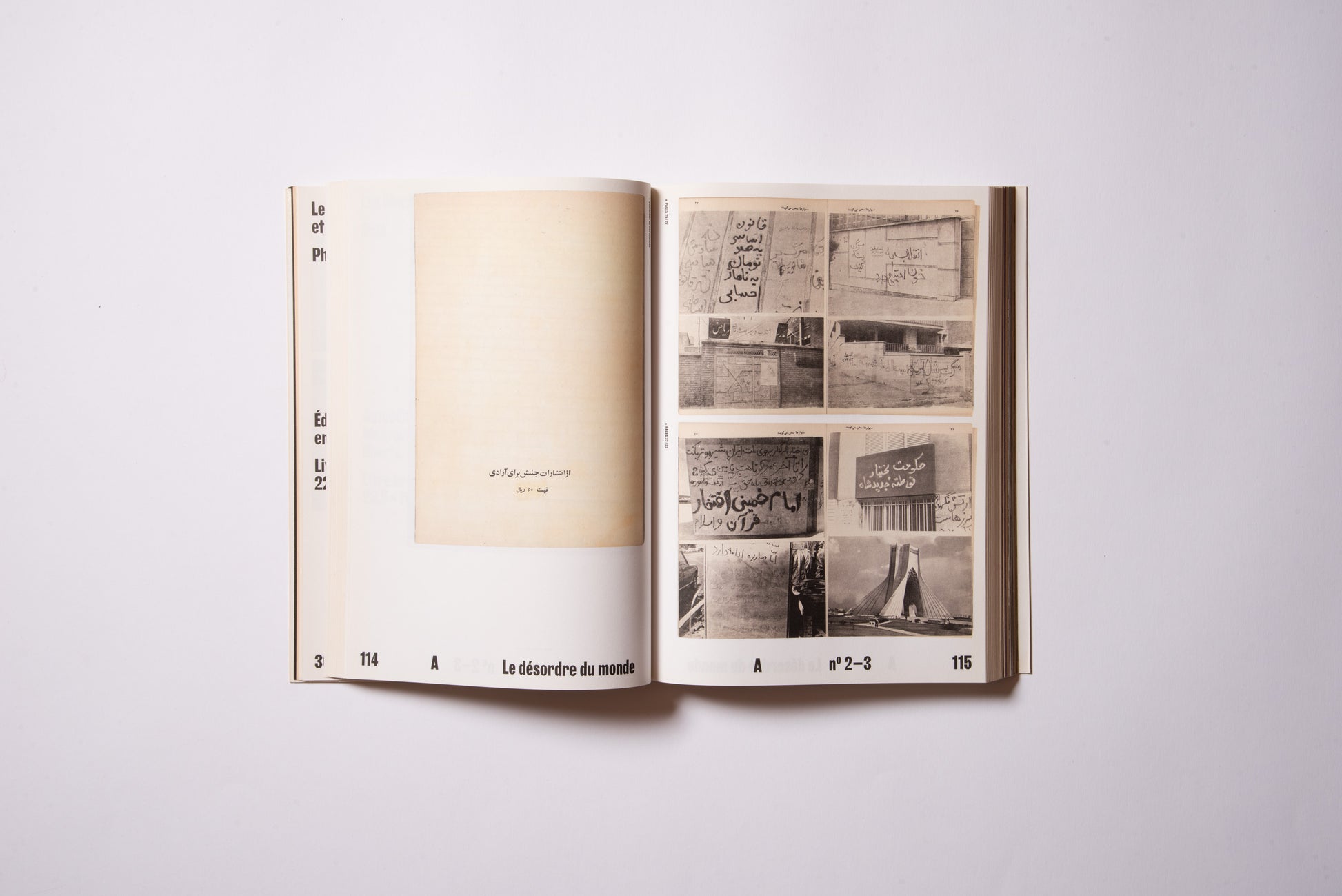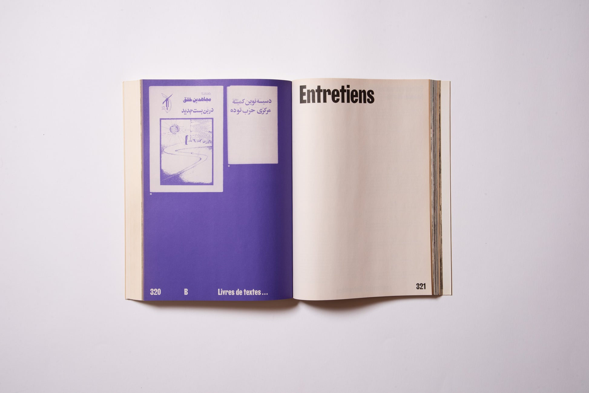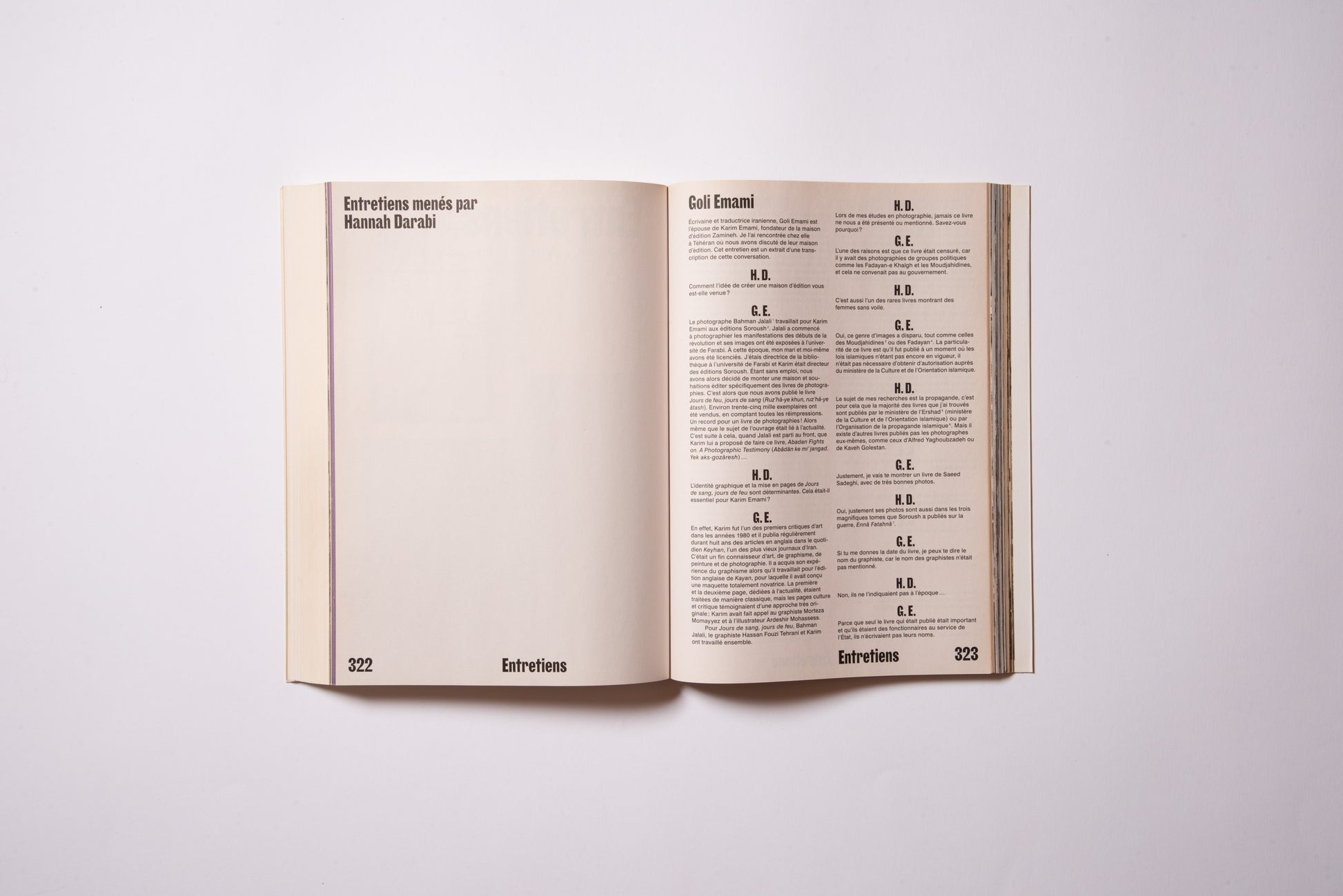 The publication was prompted by the exhibition of the same name, Hannah Darabi, Enghelab Street, A Revolution through Books: Iran 1979–1983, which was held at LE BAL in Paris from January 9 to February 11, 2019, and was supported by grants from the French National Center for Art and Design (CNAP) and the European Research Centre (ERC).