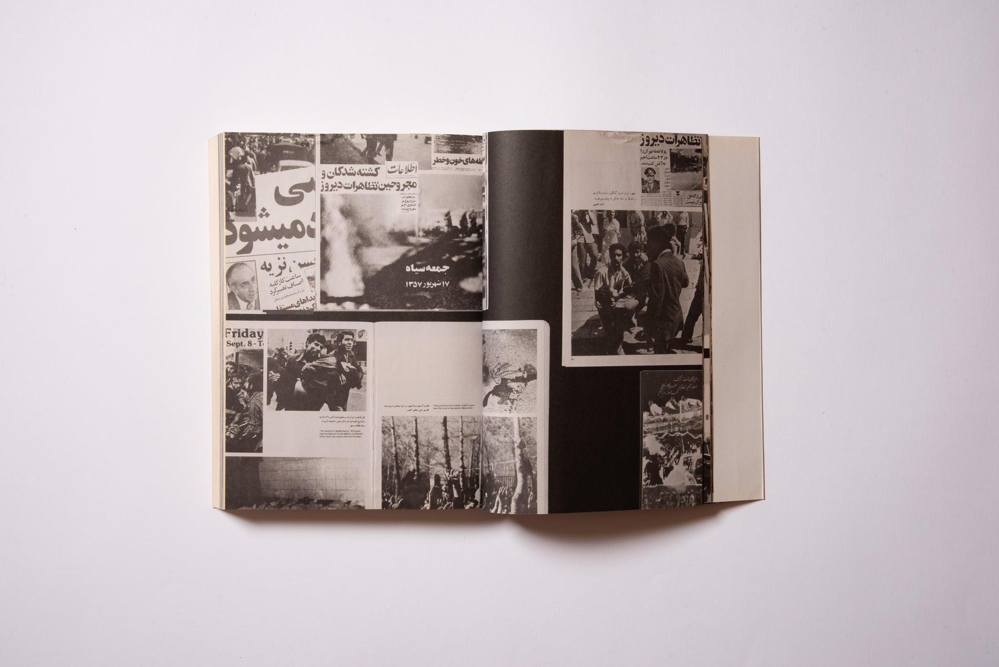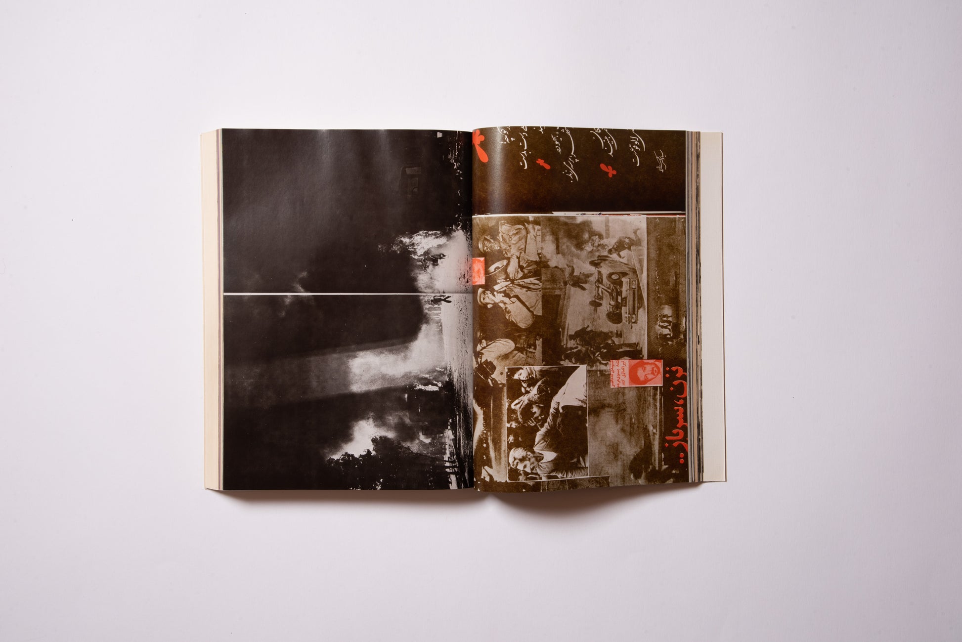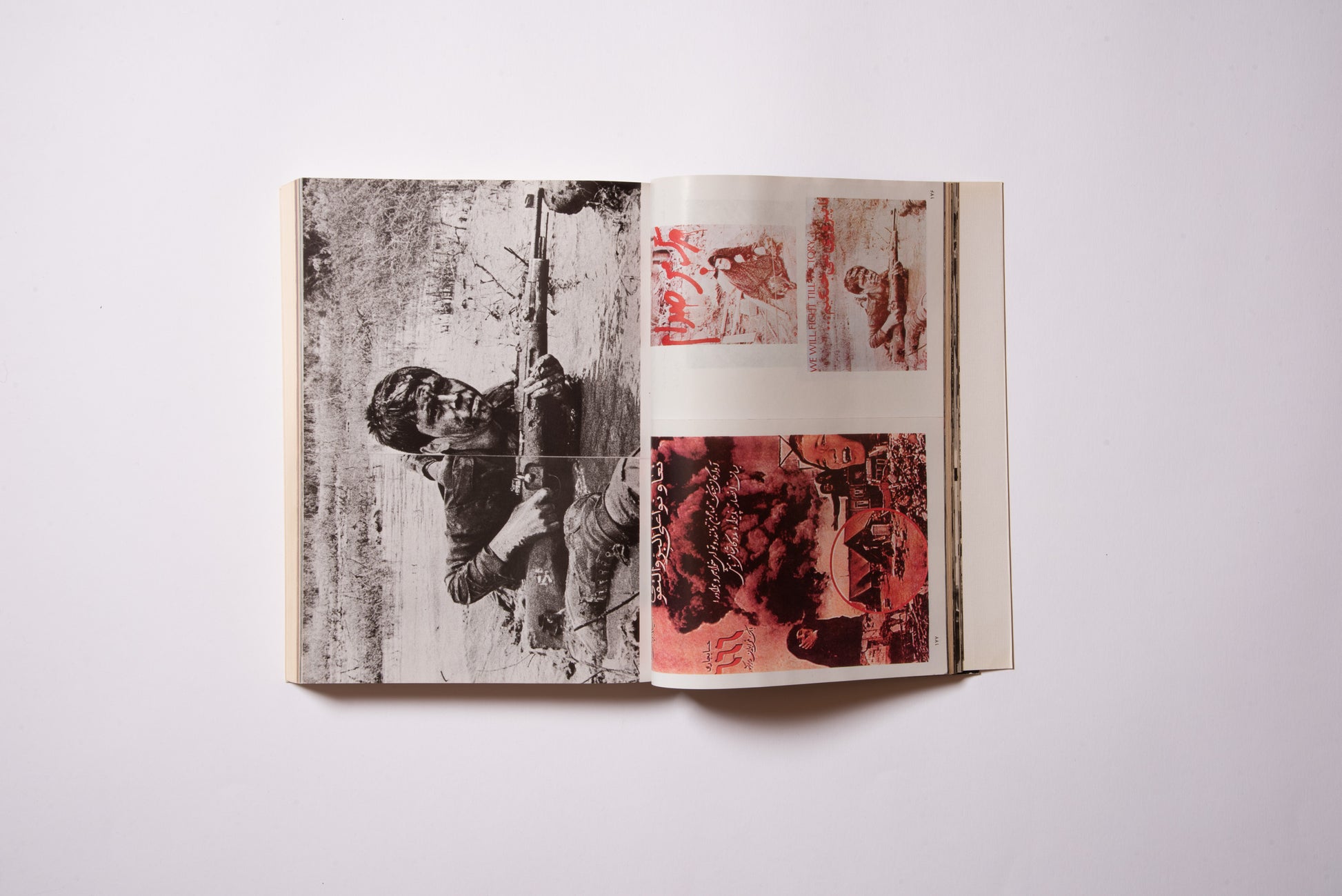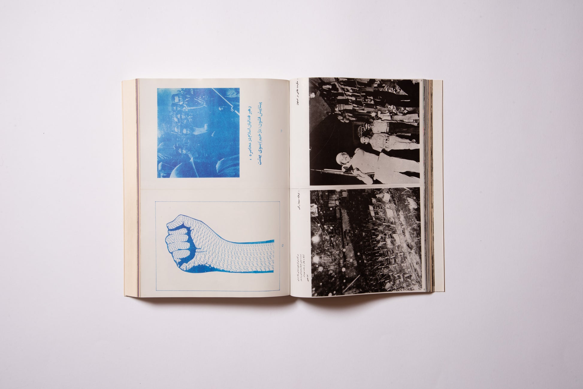 Hanna Darabi (b. 1981), an Iranian-born, Paris-based artist, has collected a visual catalogue of various “revolutionary books.” The book is particularly about books published in the period from 1979 to 1983, when freedom of speech was permitted in Iran, from the end of the Shah’s regime to the beginning of the Islamic regime.For a momentWe have collected books published about the Iranian Revolution. They range from propaganda photobooks inciting the continuation of the revolution to illegal underground publications known as "white covers" (for example, political books and foreign novels), and also include many self-published works such as zines that were born out of the urgency of wanting to get the message out as quickly as possible.The books in this collection blend pop and dark extremes, with covers that evoke the calligraphy of Mexican murals and street culture, but the contents are far more tragic than you would expect, including some brutal war photos that will make you want to look away.