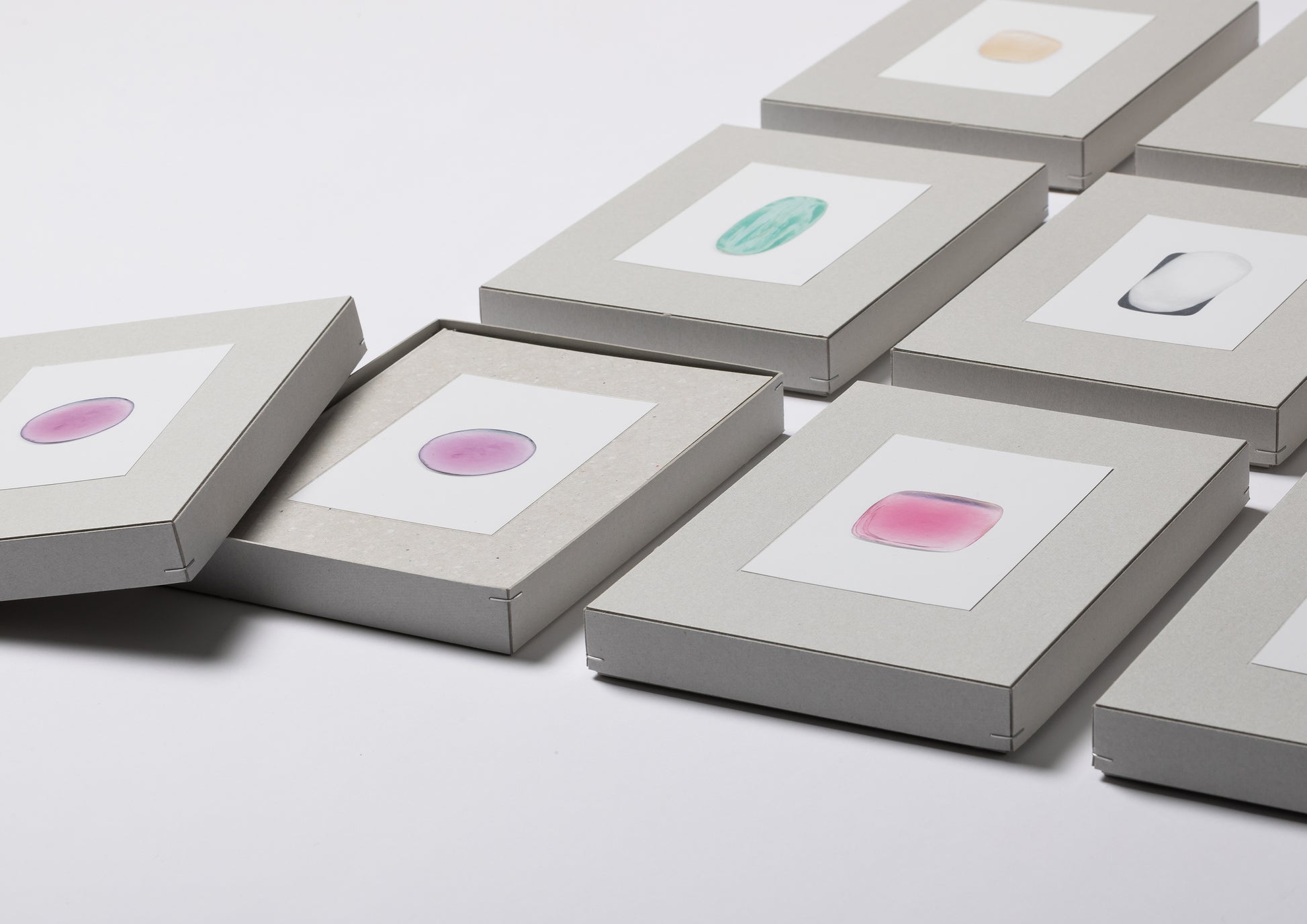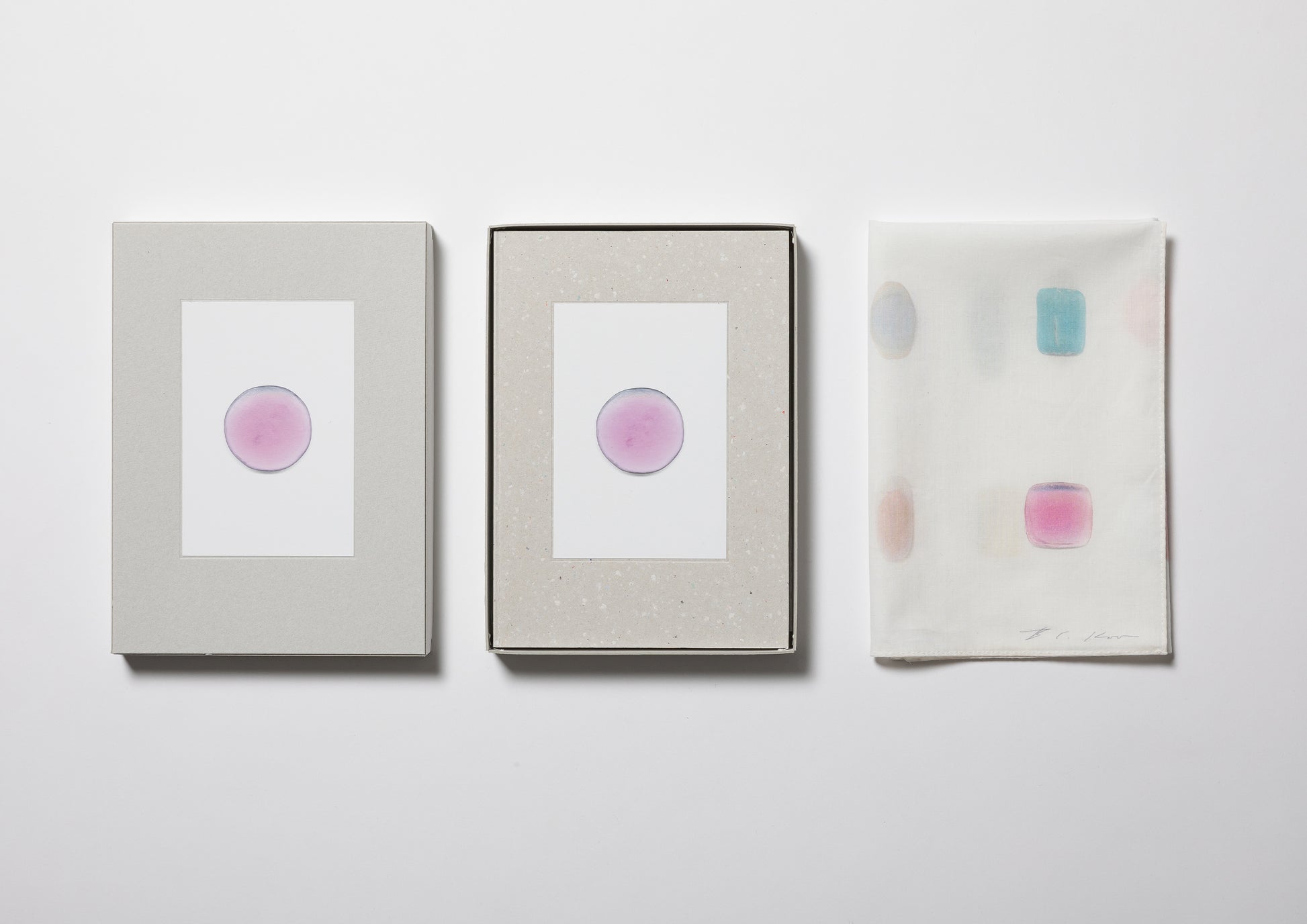 The cover of the special edition is made of matte gray cardboard with small colored particles peeking through it, reminiscent of colorful soap. The custom-made paper box that holds the book has a different soap photo pasted in the center of the lid. All special edition books are autographed by Koo Bonchan. Three special sets are available, including a framed original print, a special handkerchief not yet released in Japan, and an original stamp.