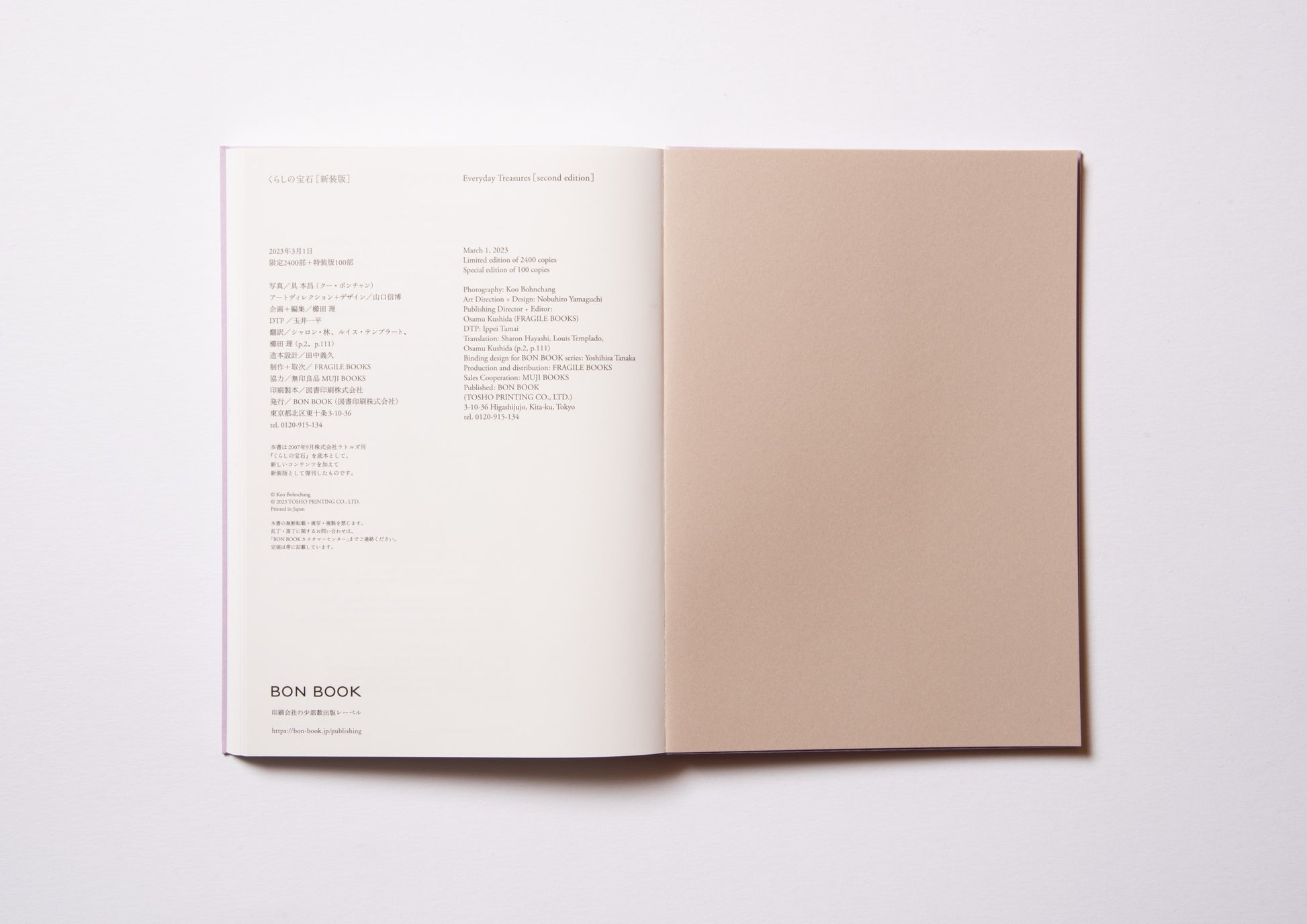 - Art direction by Nobuhiro Yamaguchi / 山口信博、Design by Nobuhiro Yamaguchi / 山口信博 + Ippei Tamai / 玉井一平、Binding design for BON BOOK series by Yoshihisa Tanaka / シリーズ造本設計:田中義久