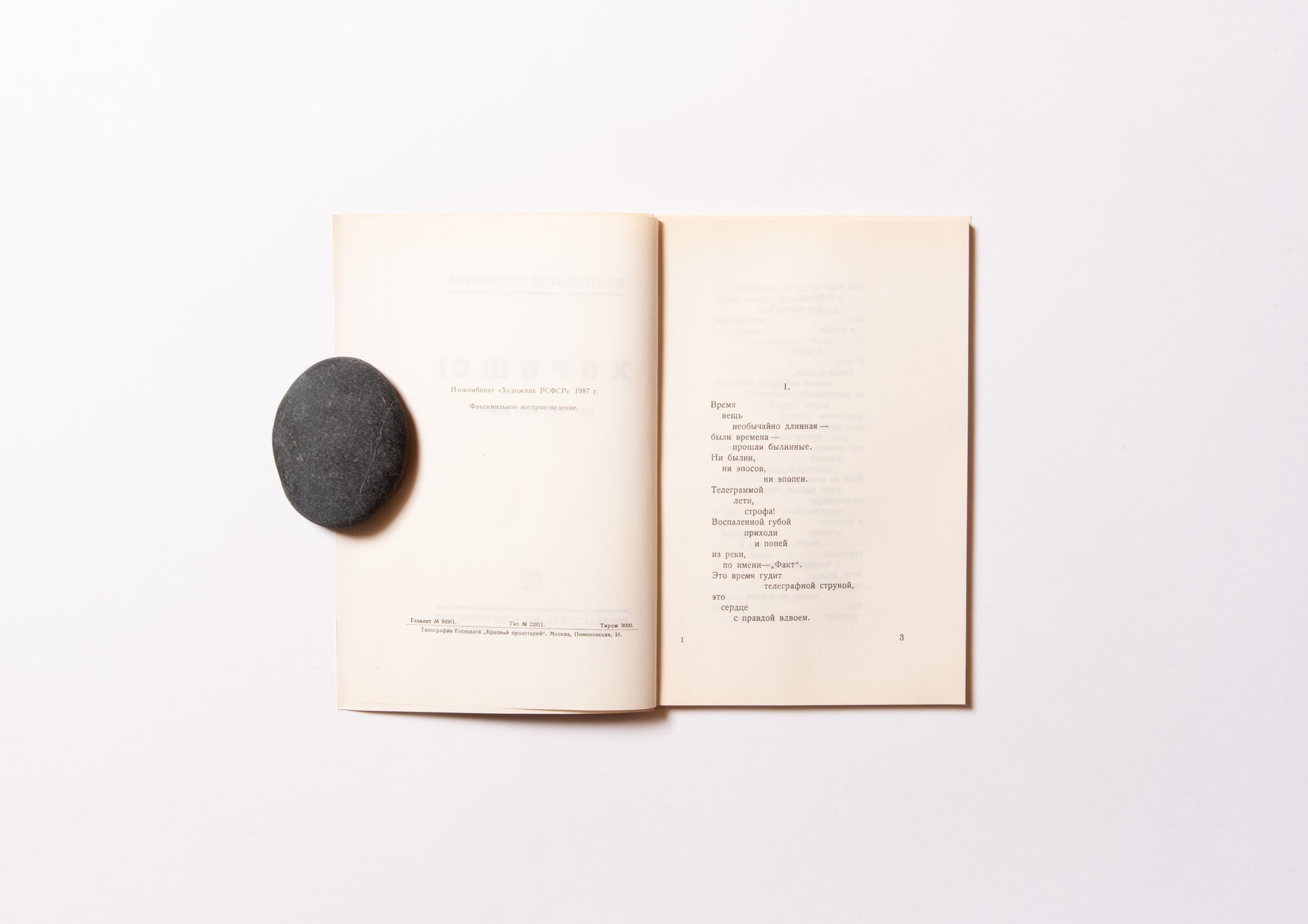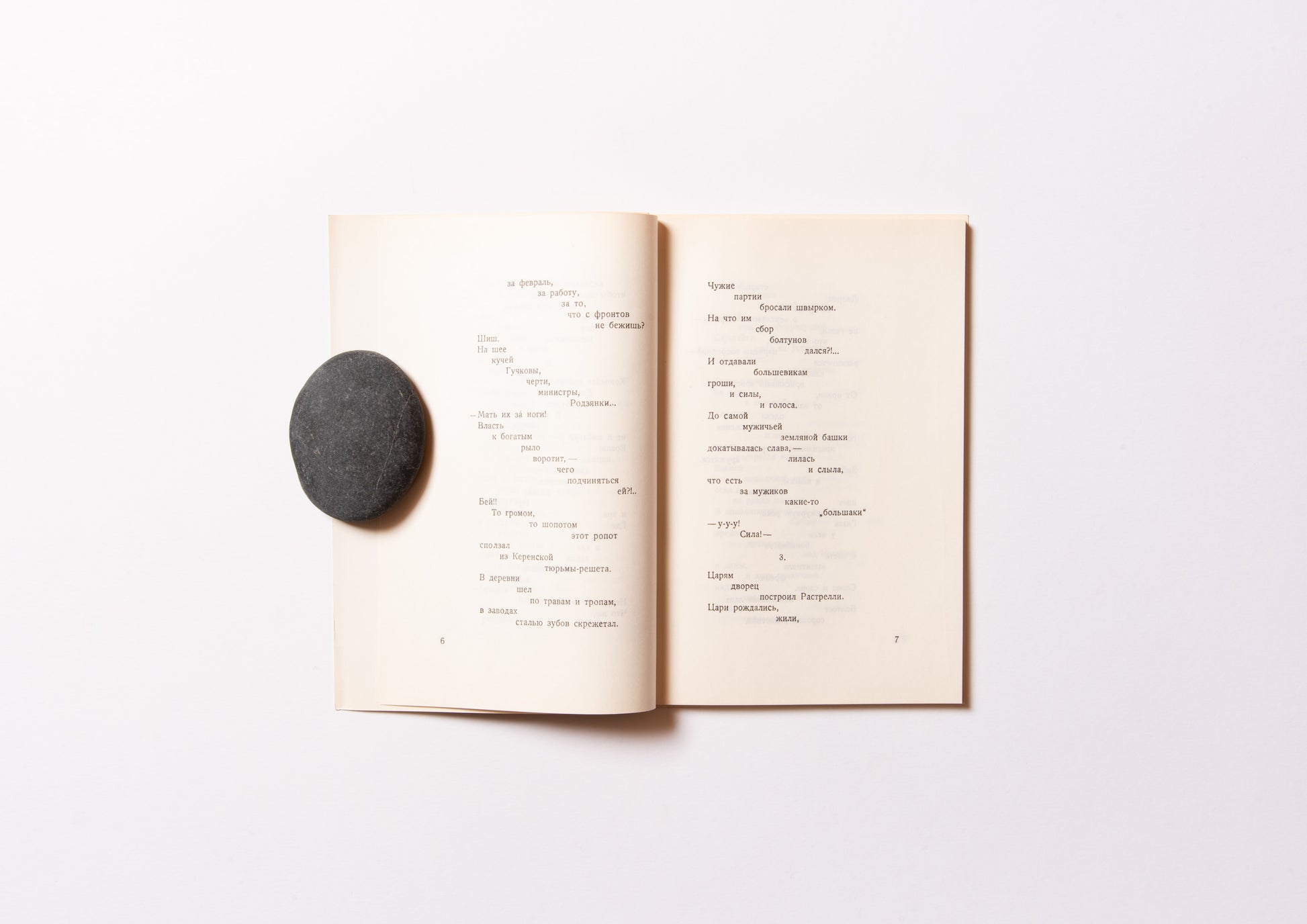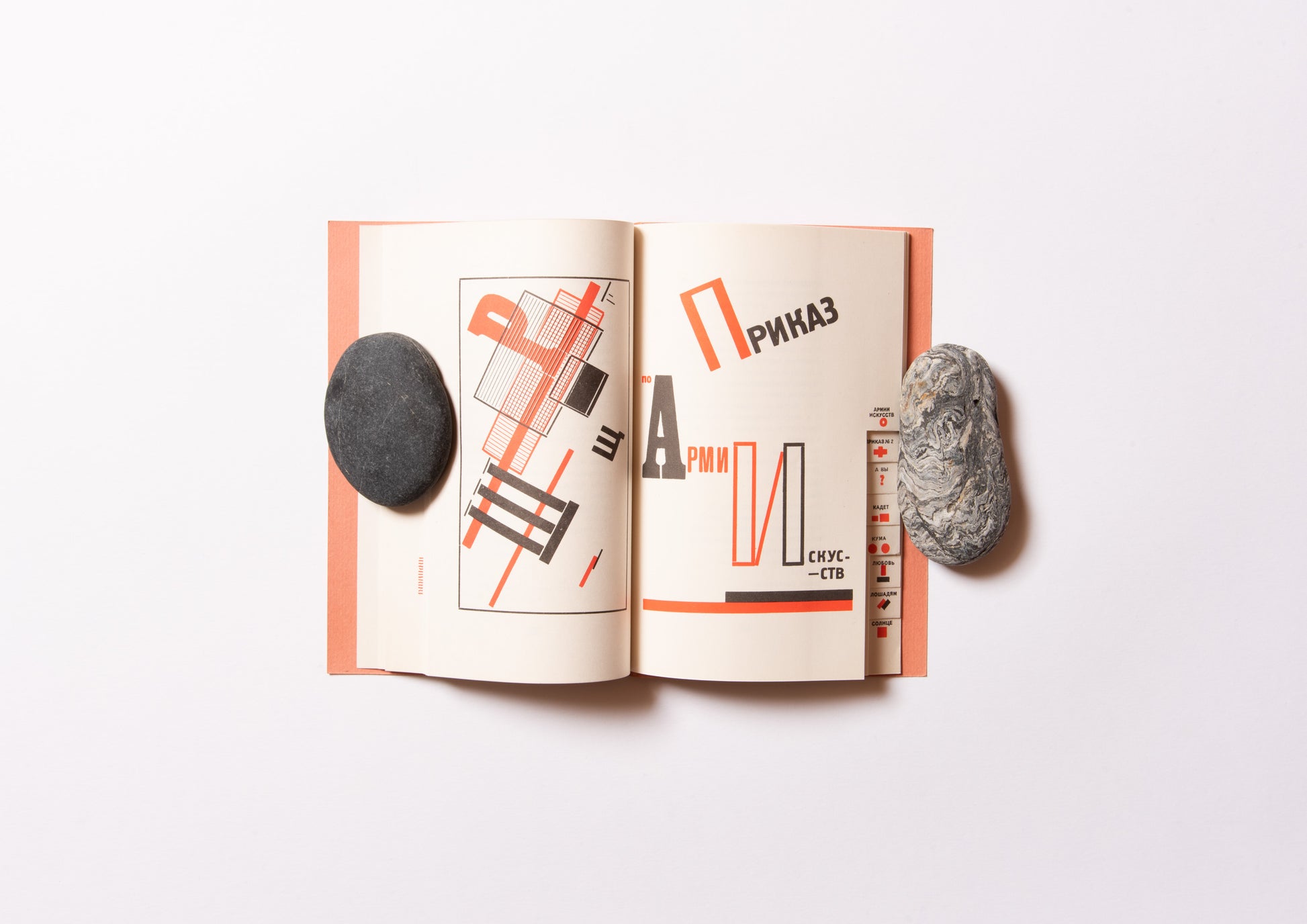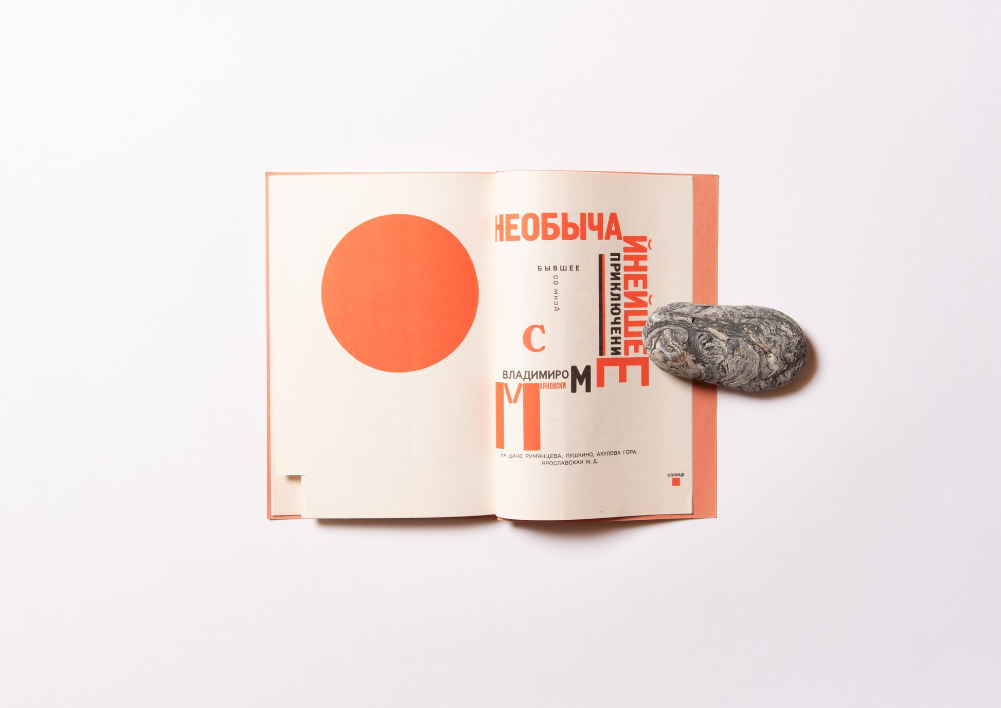 It was published in 1987, just before the collapse of the Soviet Union, to commemorate the 70th anniversary of the October Revolution, which marked the first time in human history that the country left capitalism and embarked on the path to socialism. The book is designed to store the two volumes mentioned above in an inner pocket that opens on both sides. It also retains the nail-hook index that was (supposedly) the first in the world to be designed by Lissitzky for Dlja golosa/For the Voice. Based on 13 poems by Mayakovsky,An innovative attempt at book design that treats poetry and typography equallyAccording to Lissitzky, the aim of the binding design was to create a "book to be read out loud".