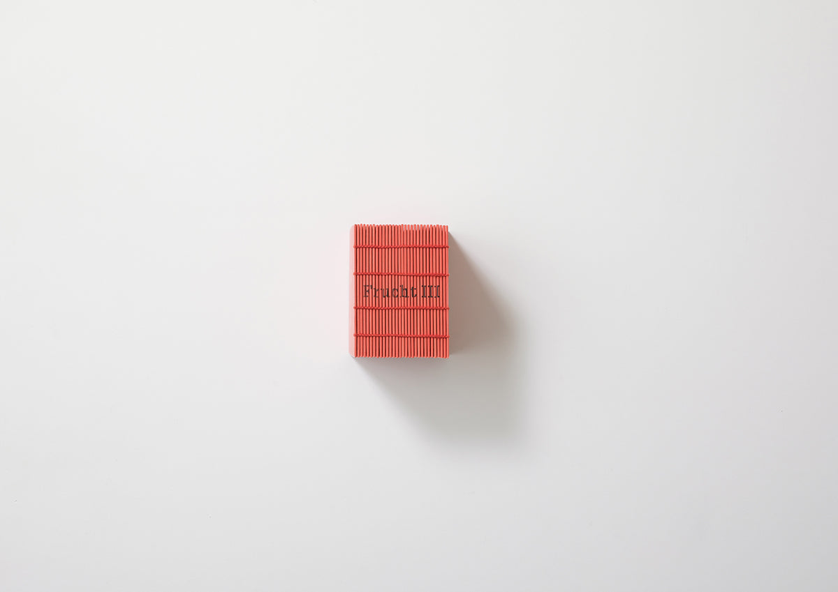 "Frucht Ⅲ" is a work that brings to fruition the duality of the intuitive action of transferring something other than a book into a book, and the visual effect of the piled-up thin layers evoking the image of a book as an object.