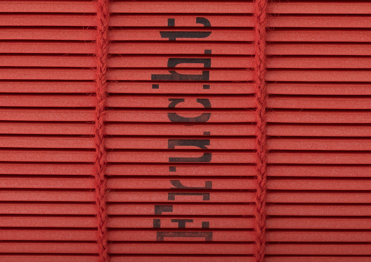 At first glance, the surface appears to be a single red color, but it is actually a pearlescent white paper with a red print. This is an approach that is particular about the tomato-like feel, including the texture.