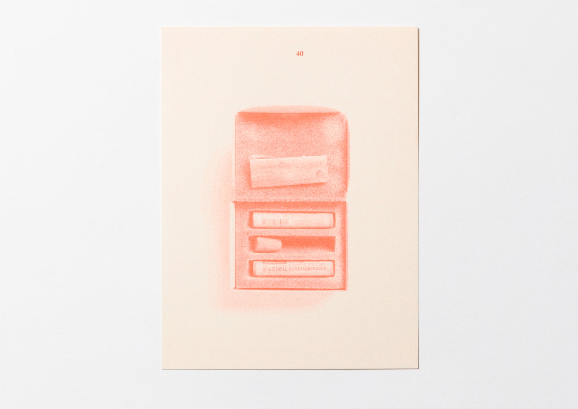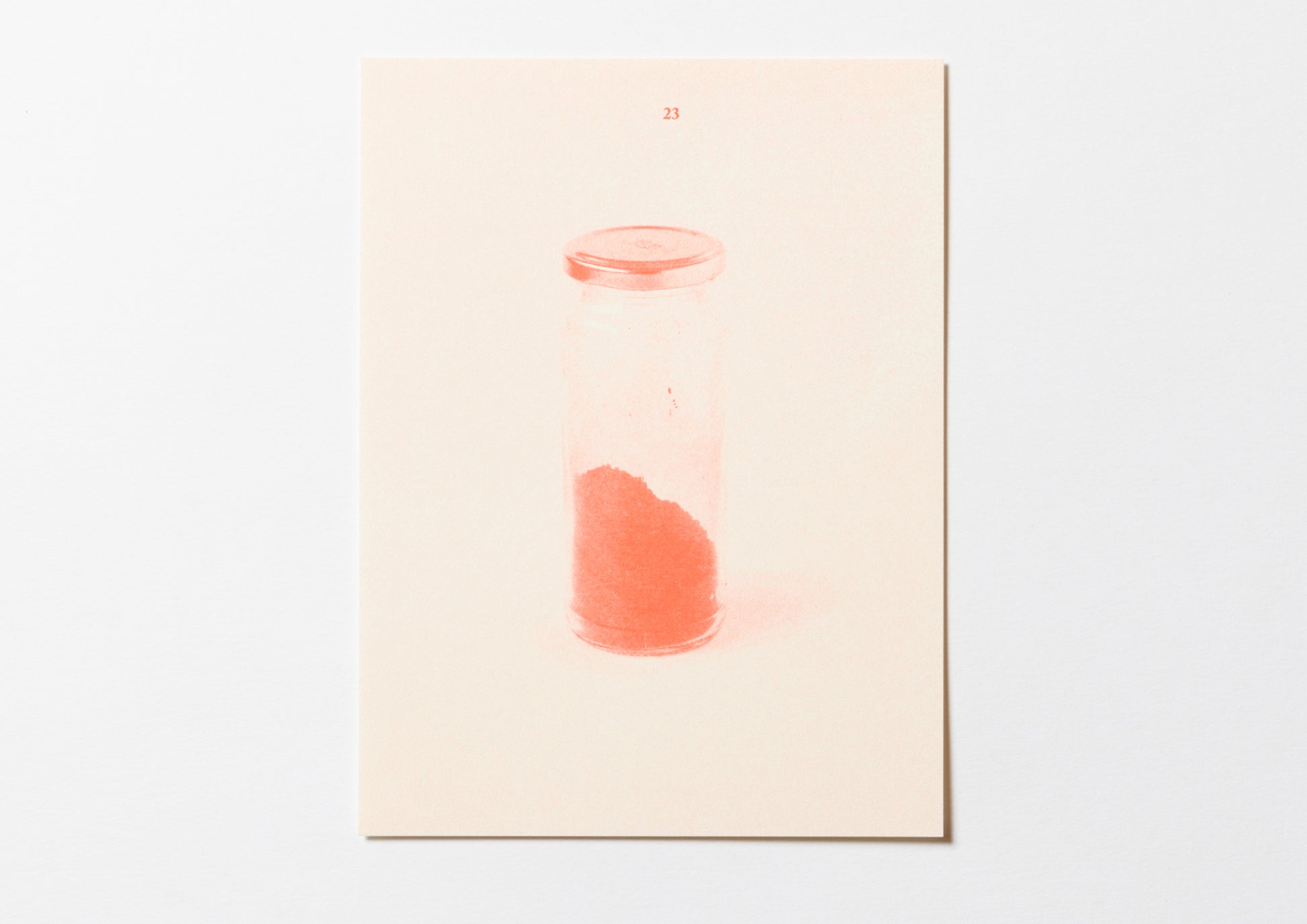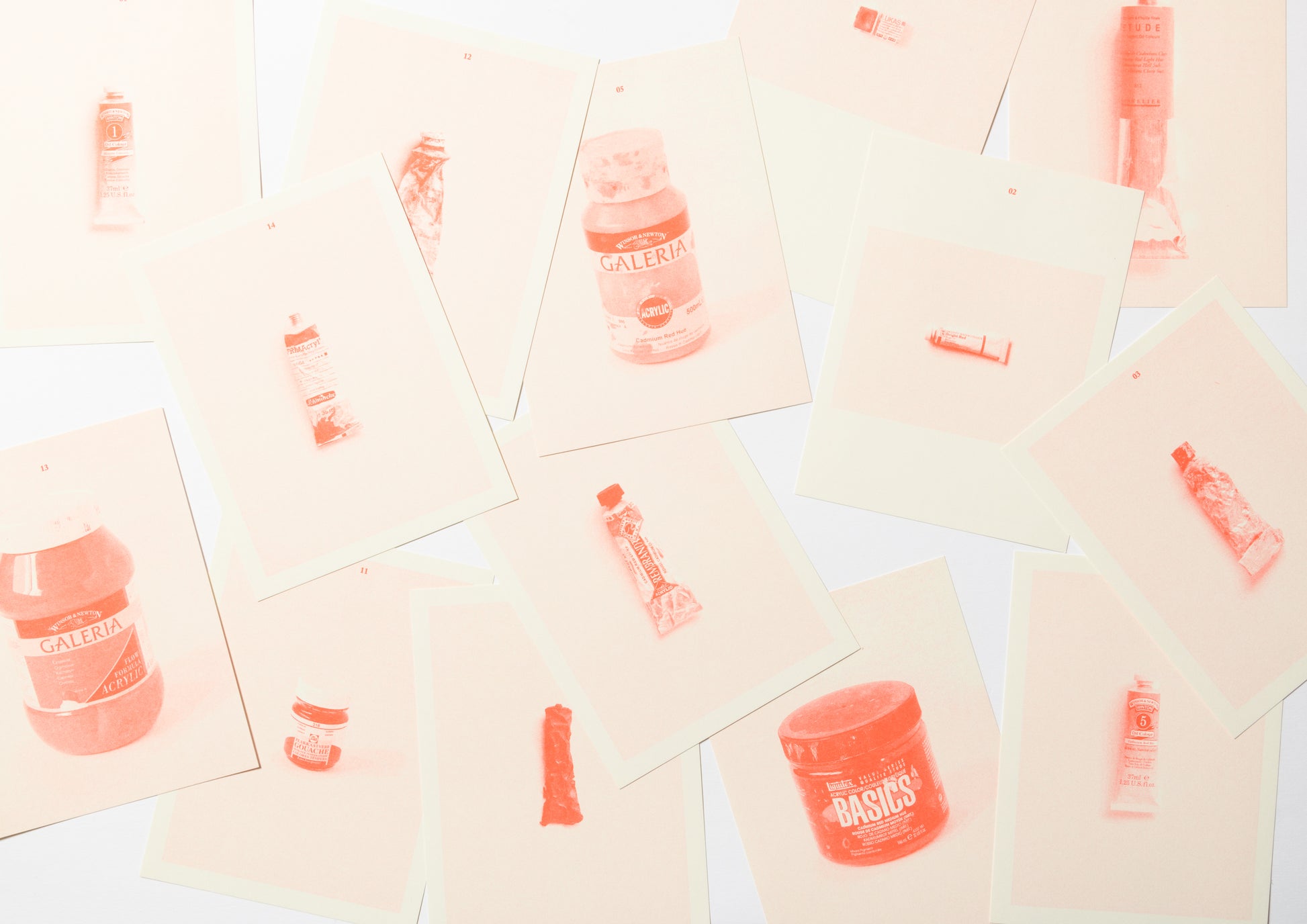 "Inventory of Red Paints" contains 46 different red paints collected by Spanish artist Miguel Ângelo Martins over a period of 10 years. The book is also the first work published by Raum Editions, a label founded by Miguel and his partner Laura Pilar Delgado.