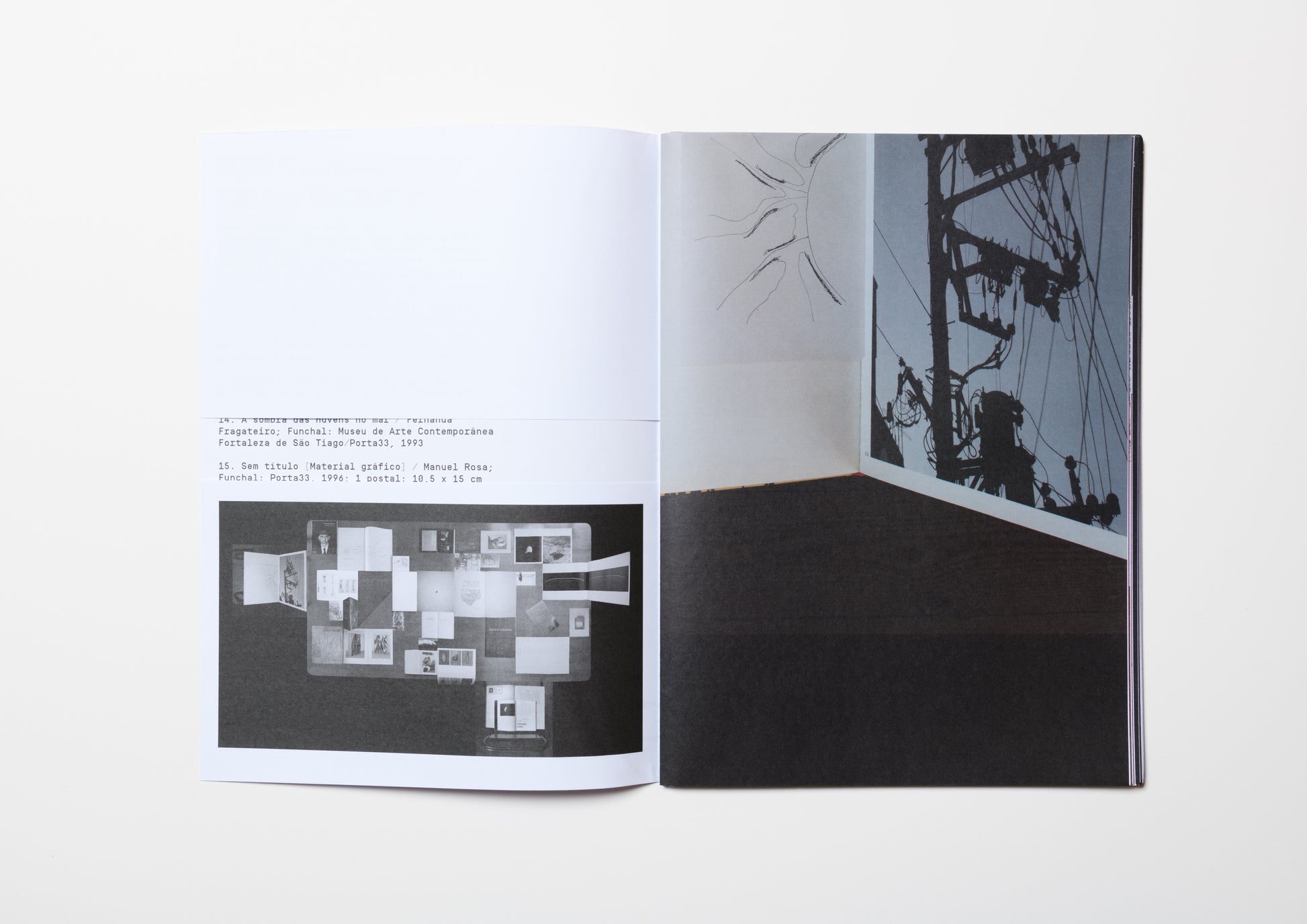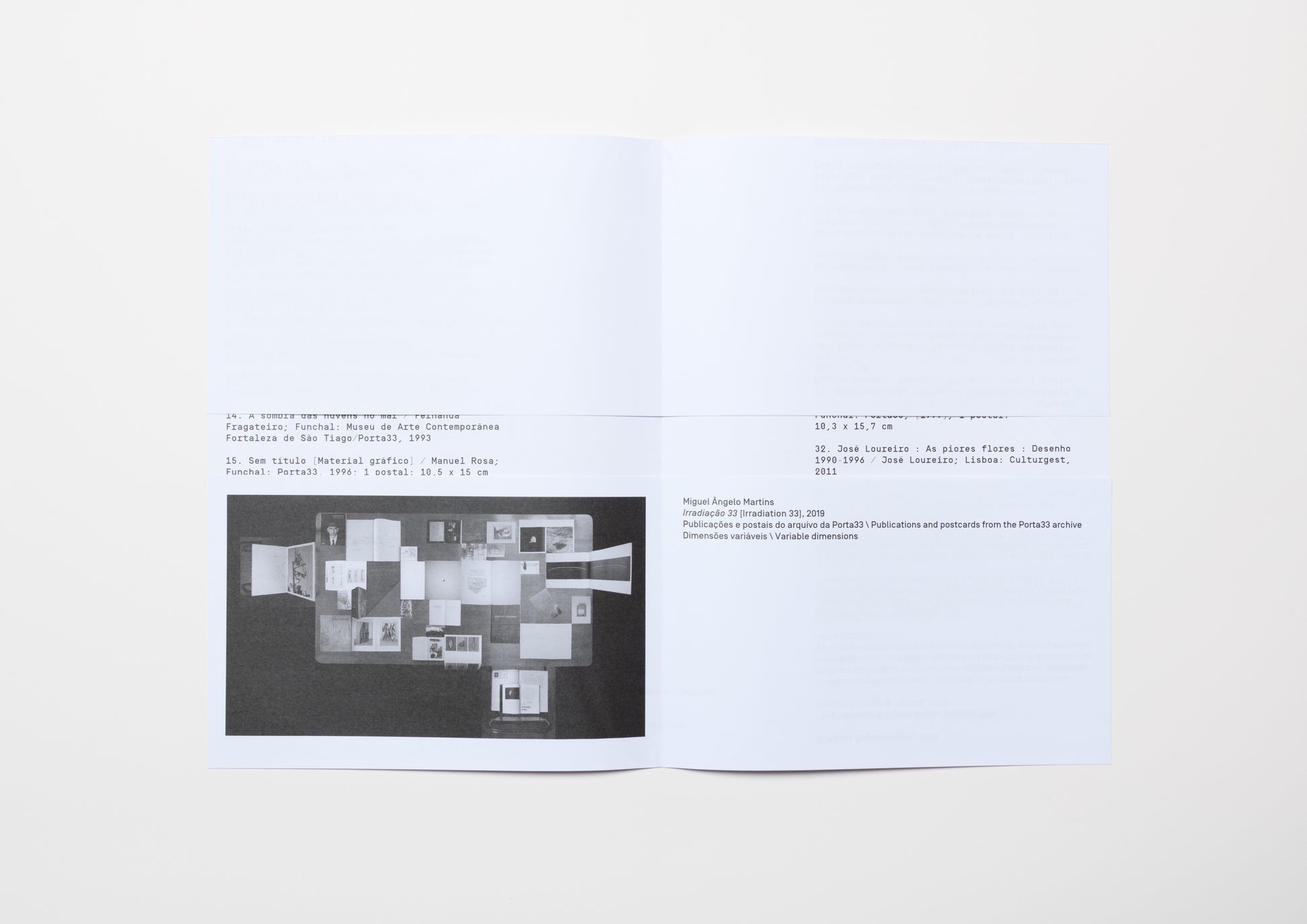 Miguel spent a month editing the archive's printed materials, resulting in a selection of 35 items that will be part of this installation, including publications and postcards. The dialogue established by the placement and overlap of these materials can be seen in the book. It seeks to build bridges between text and image, far and near, outside and inside, public and private, and to establish a sustainable connection to the island.