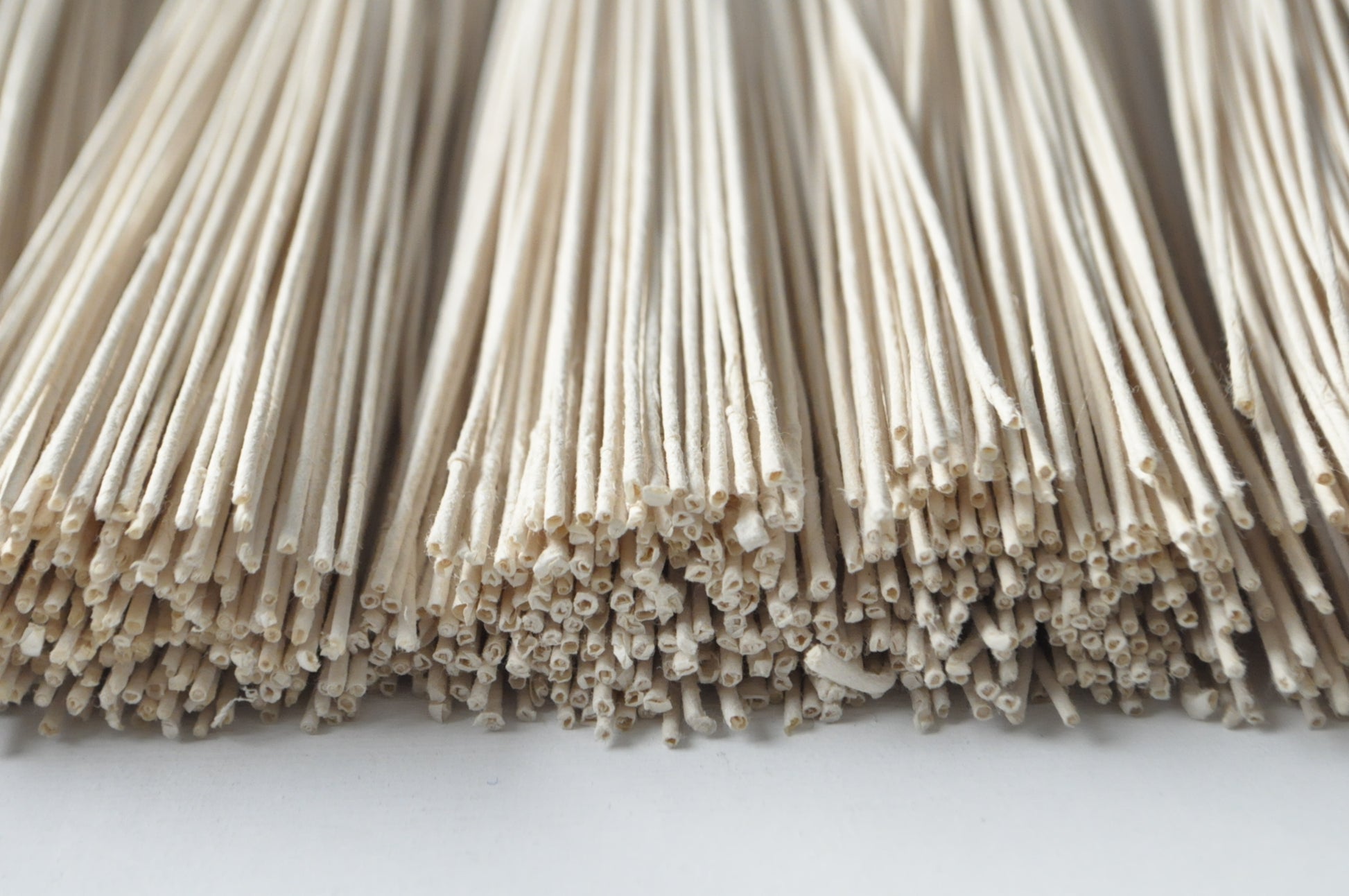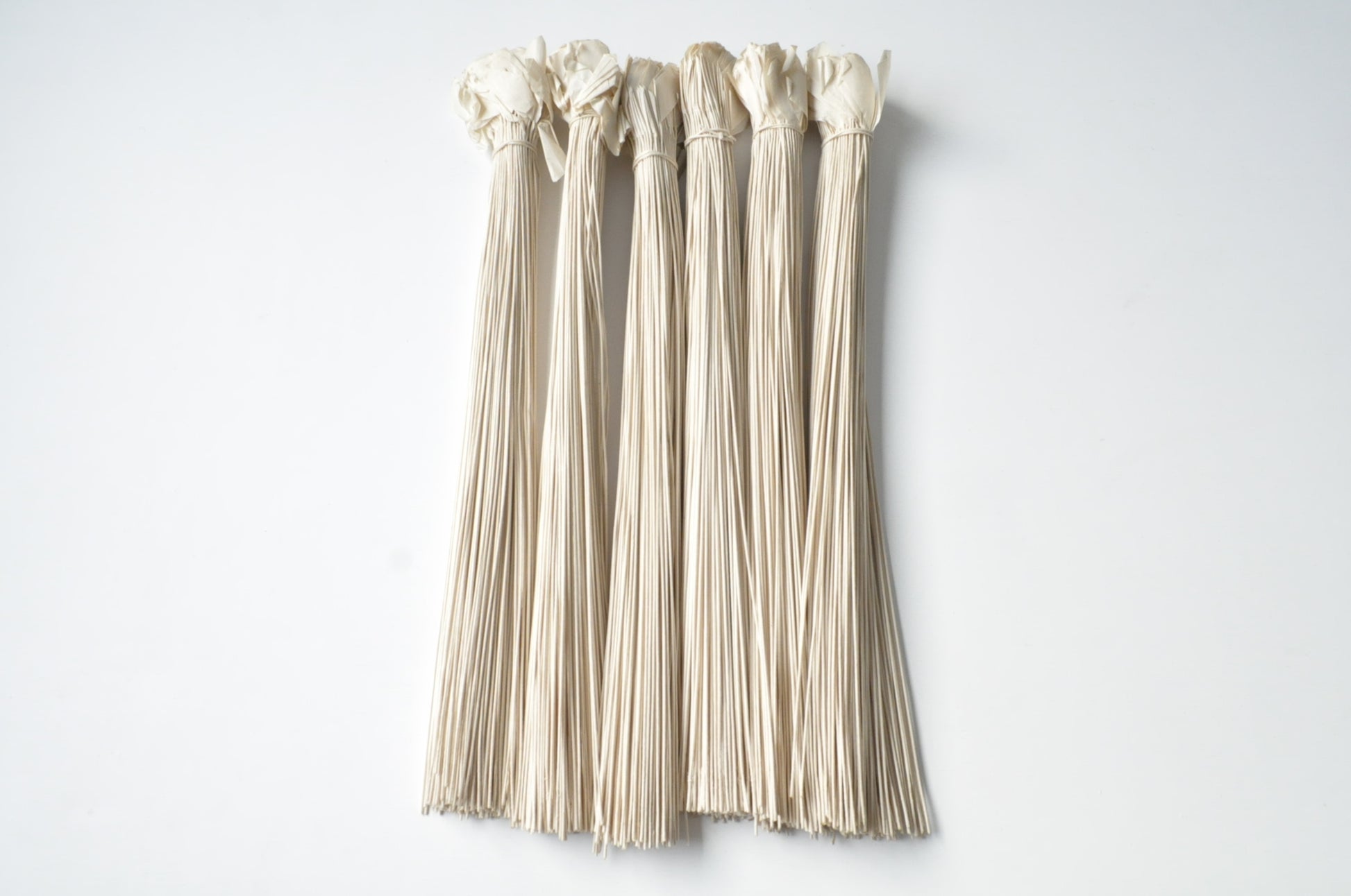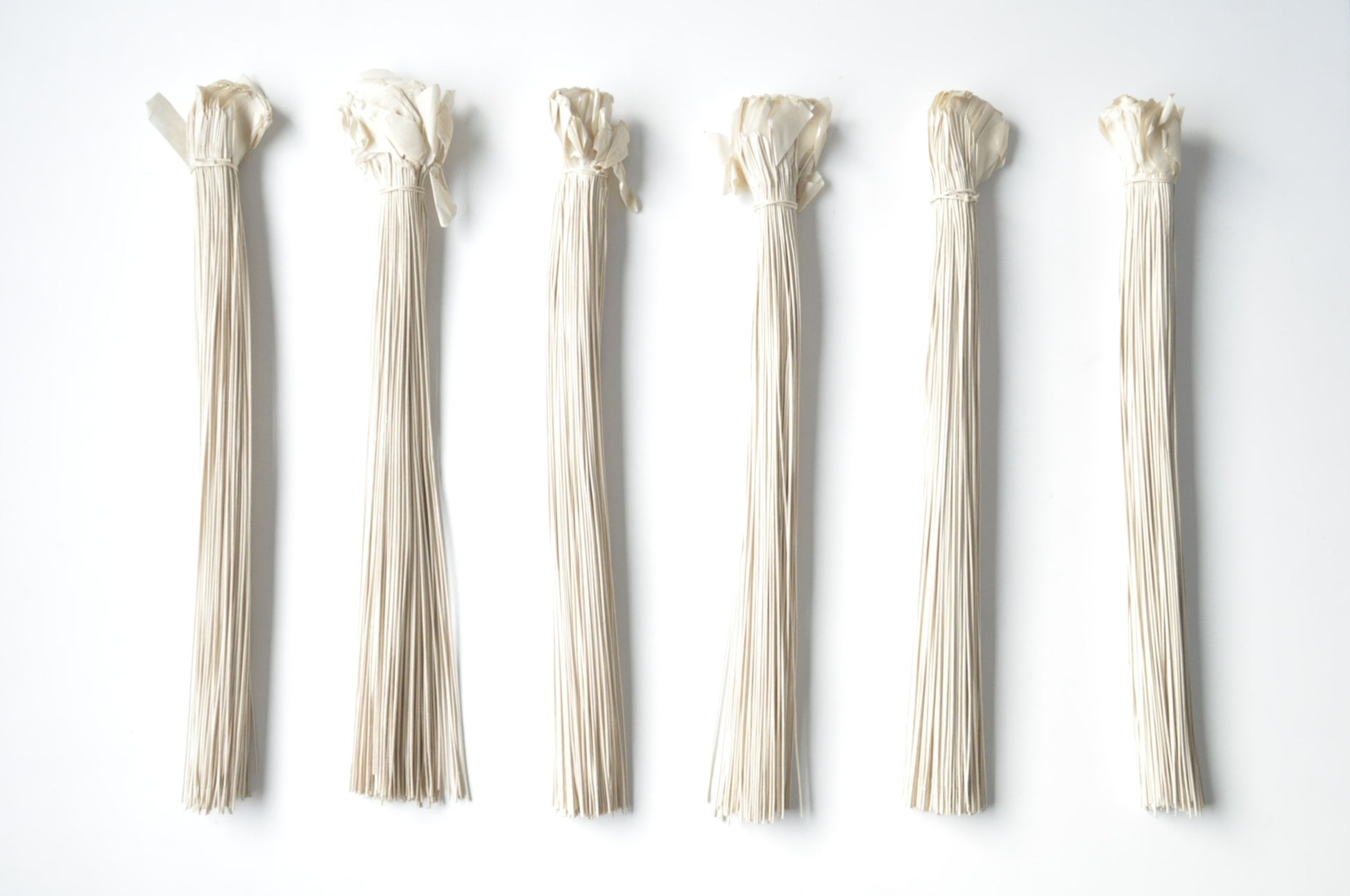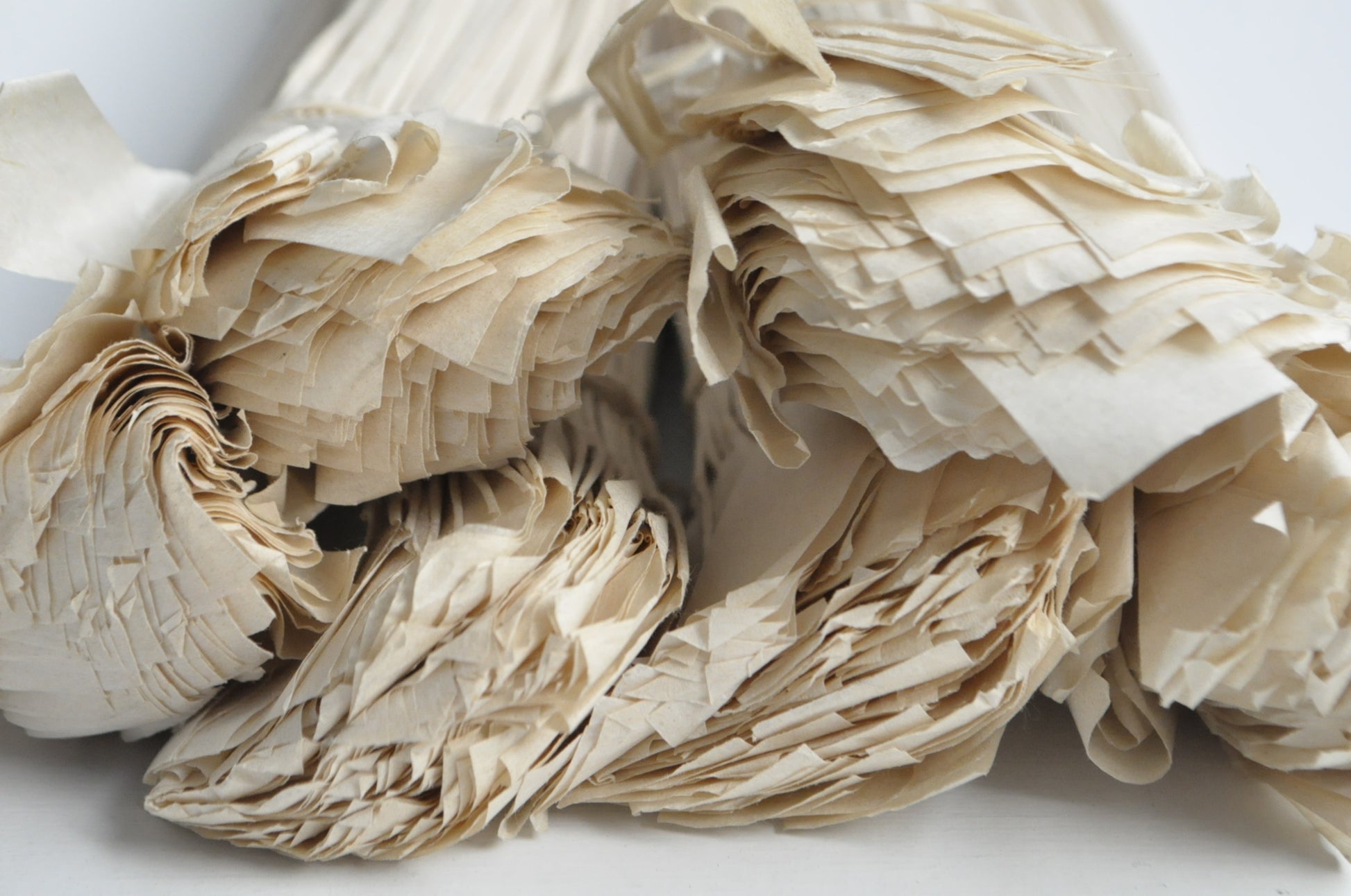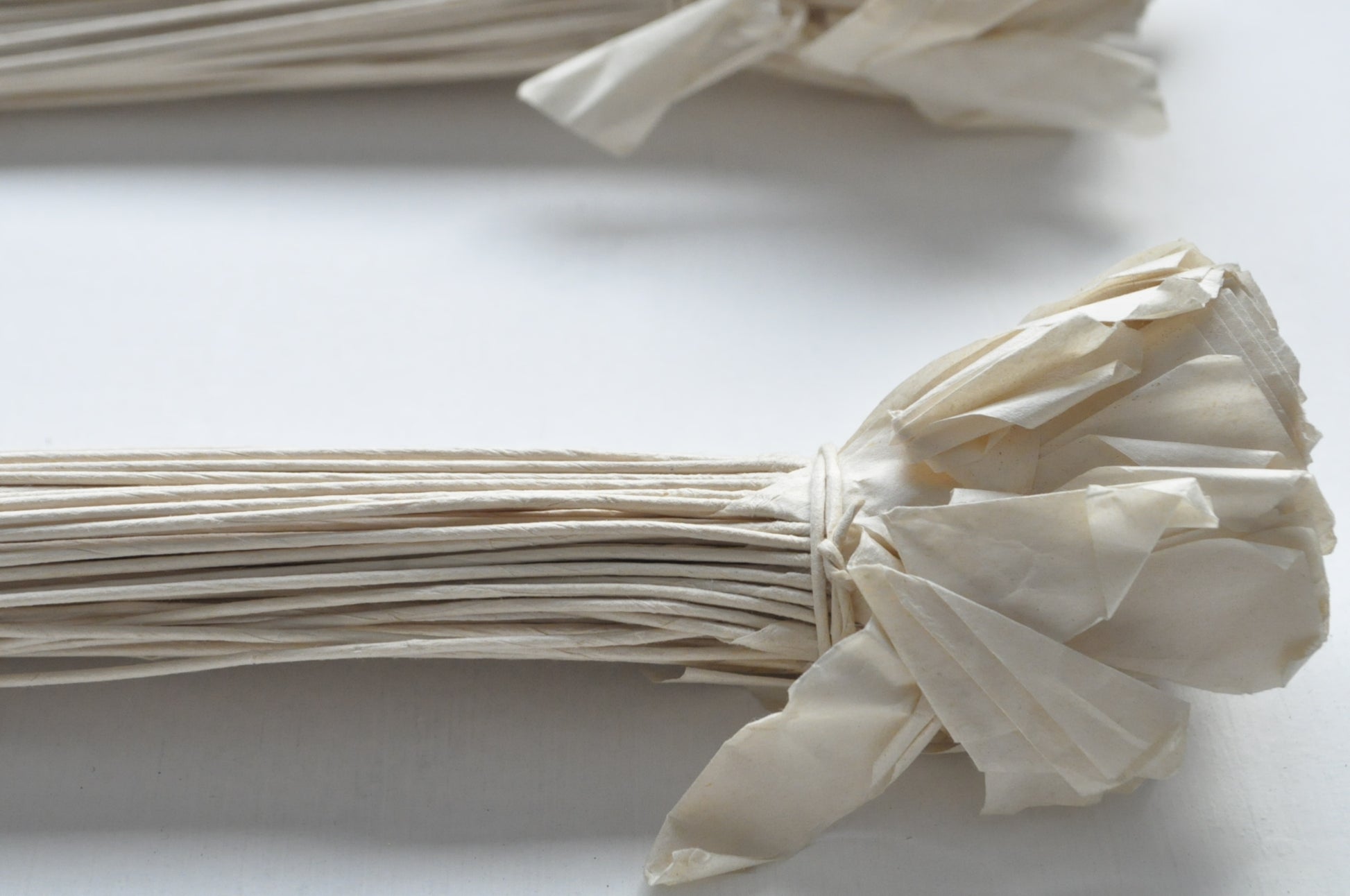 Twisted and collected bundles of paper.