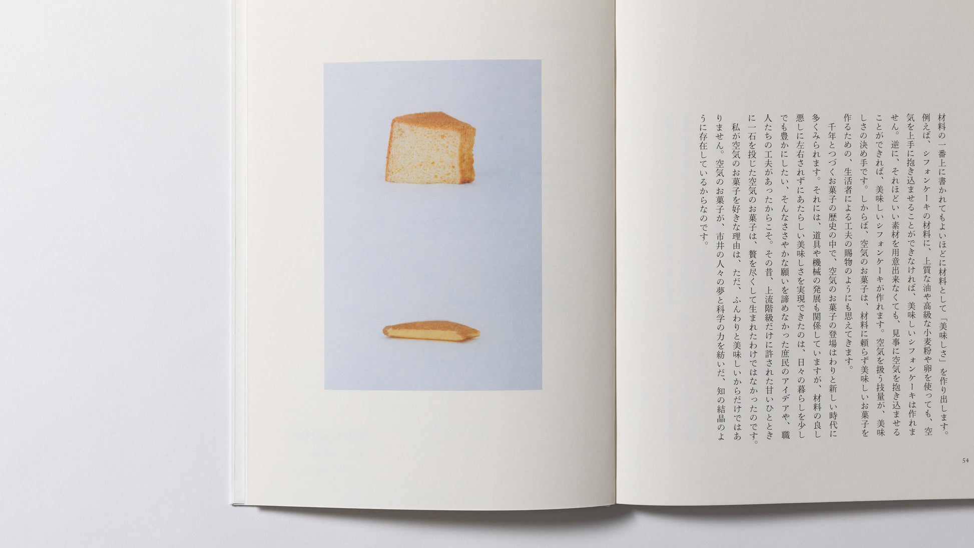The fact that weight and value are proportional is recognized outside of confectionery. Heavy = packed with content. So, what if we apply this to airy sweets? That was Tsuchitani's point of view. What would happen to the deliciousness of fluffy, hollow sweets if you took the air out of them? We hope you will find the answer in the book.
