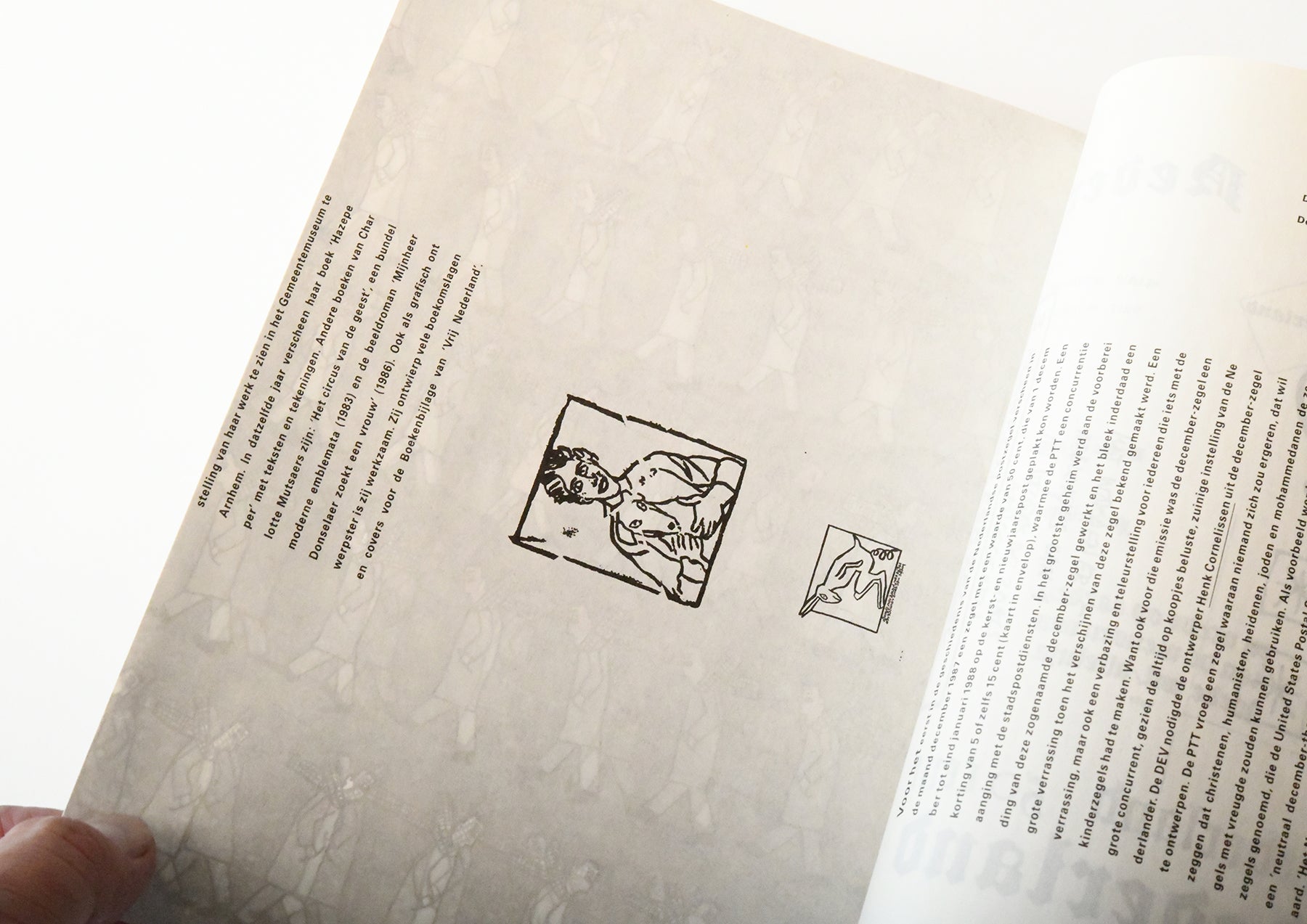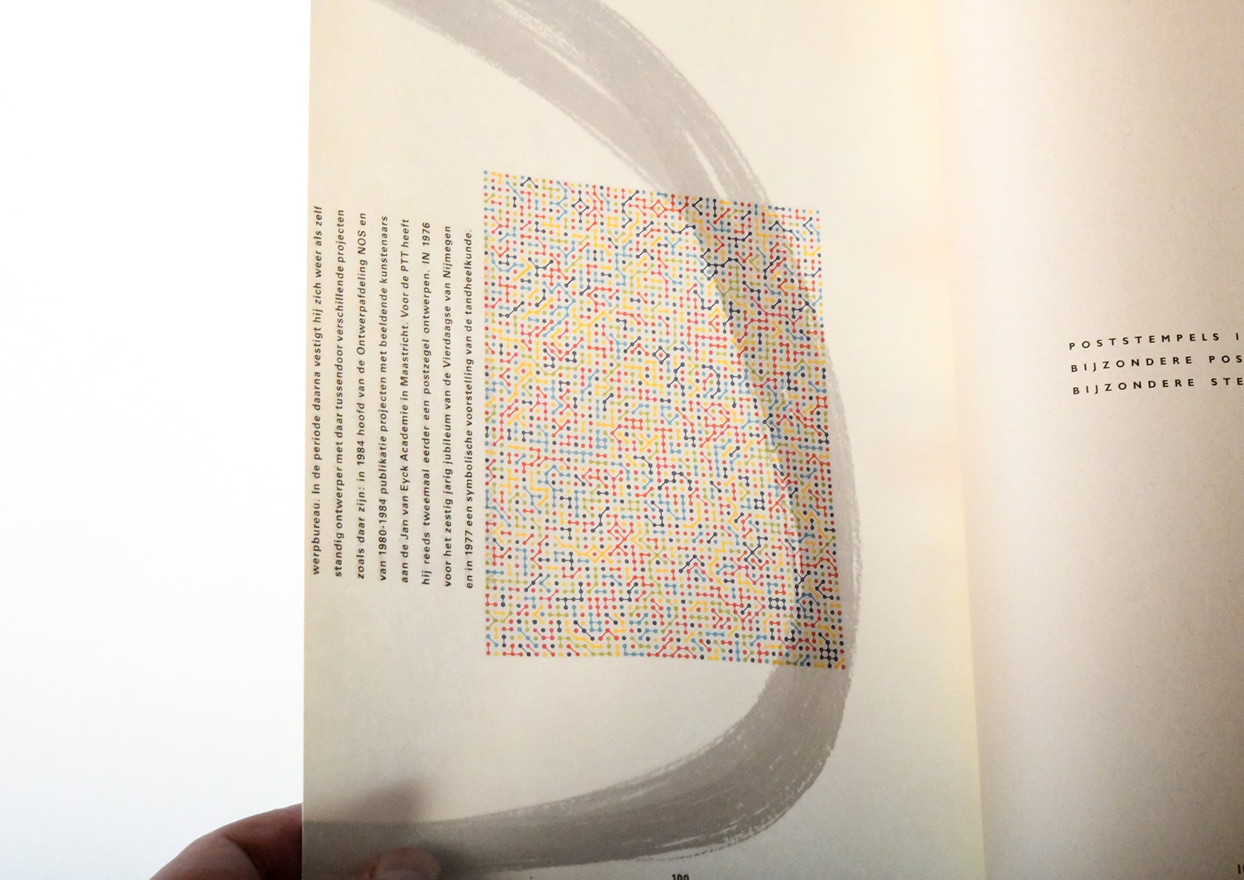 This is a book that Irma worked on while she was working at the Dutch national printing and publishing department (Staatsdrukkerij en). The client was the Dutch national postal company (PTT), which was working on the historic stamp yearbook that had been produced almost every year since 1920 by pioneers of Dutch design such as Karel Martens. Irma, who was still unknown at the time, was tasked with producing the two yearbooks for 1987 and 1988.