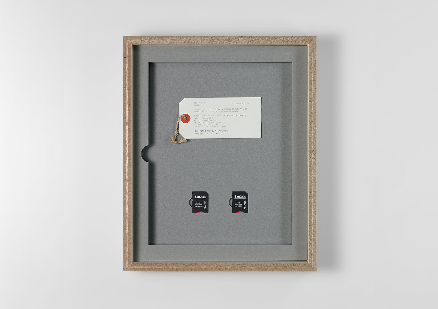Certificate of Authenticity (with screening rights), Instructions, Video (SD card): 1A (13min.) + 1B (22min.)、Audio (SD card) : Sound1 (5min.) , Sound2 (6min.), Tag : IHARA Usaburo, "Hong Kong Meeting of Governor Young and Commander Sakai" , 1943 - 44 / 作品証明書 (上映権)、インストラクション、映像 (SDカード) : 1A (13分) + 1B (22分)、音声 (SDカード): サウンド1 (5分) / サウンド2 (6分)、付票 : 伊原宇三郎『香港に於ける酒井司令官、ヤング総督の会見』1943 - 44