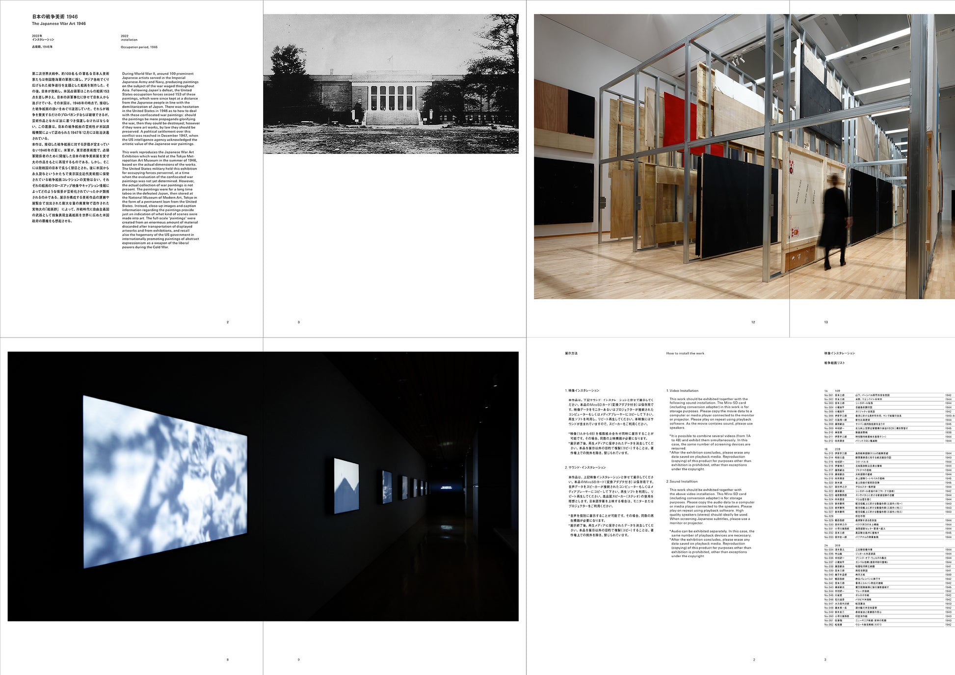 This multiple work (Japanese War Art 1946) is based on Hikaru Fujii's installation of Japanese war paintings at the Museum of Contemporary Art Tokyo in 2022, and includes two documentation books, video data, and artwork tags in a wooden box reassembled from scrap veneer after the exhibition was dismantled. The subject matter of the veneer books is a work of art.