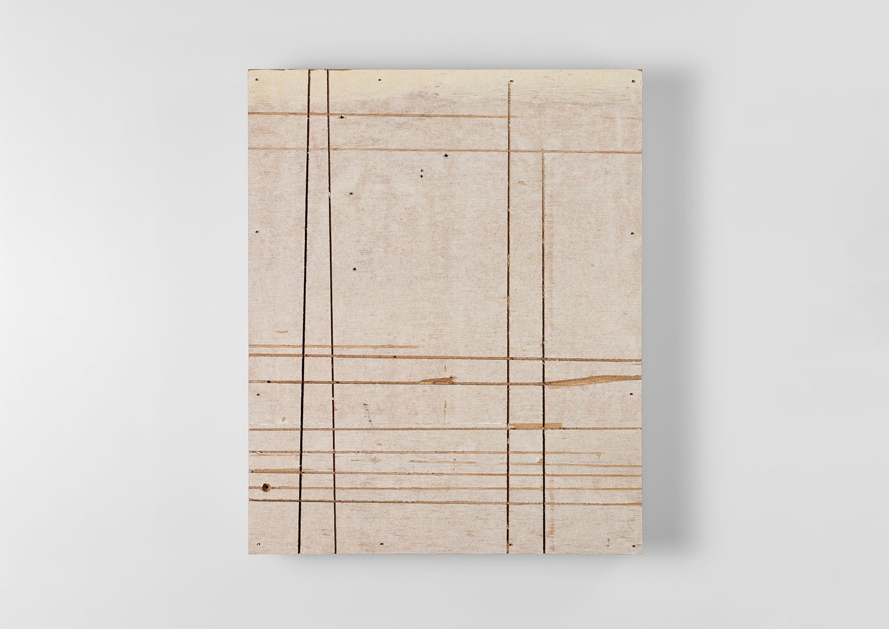 This multiple work (Japanese War Art 1946) is based on Hikaru Fujii's installation of Japanese war paintings at the Museum of Contemporary Art Tokyo in 2022, and includes two documentation books, video data, and artwork tags in a wooden box reassembled from scrap veneer after the exhibition was dismantled. The subject matter of the veneer books is a work of art.