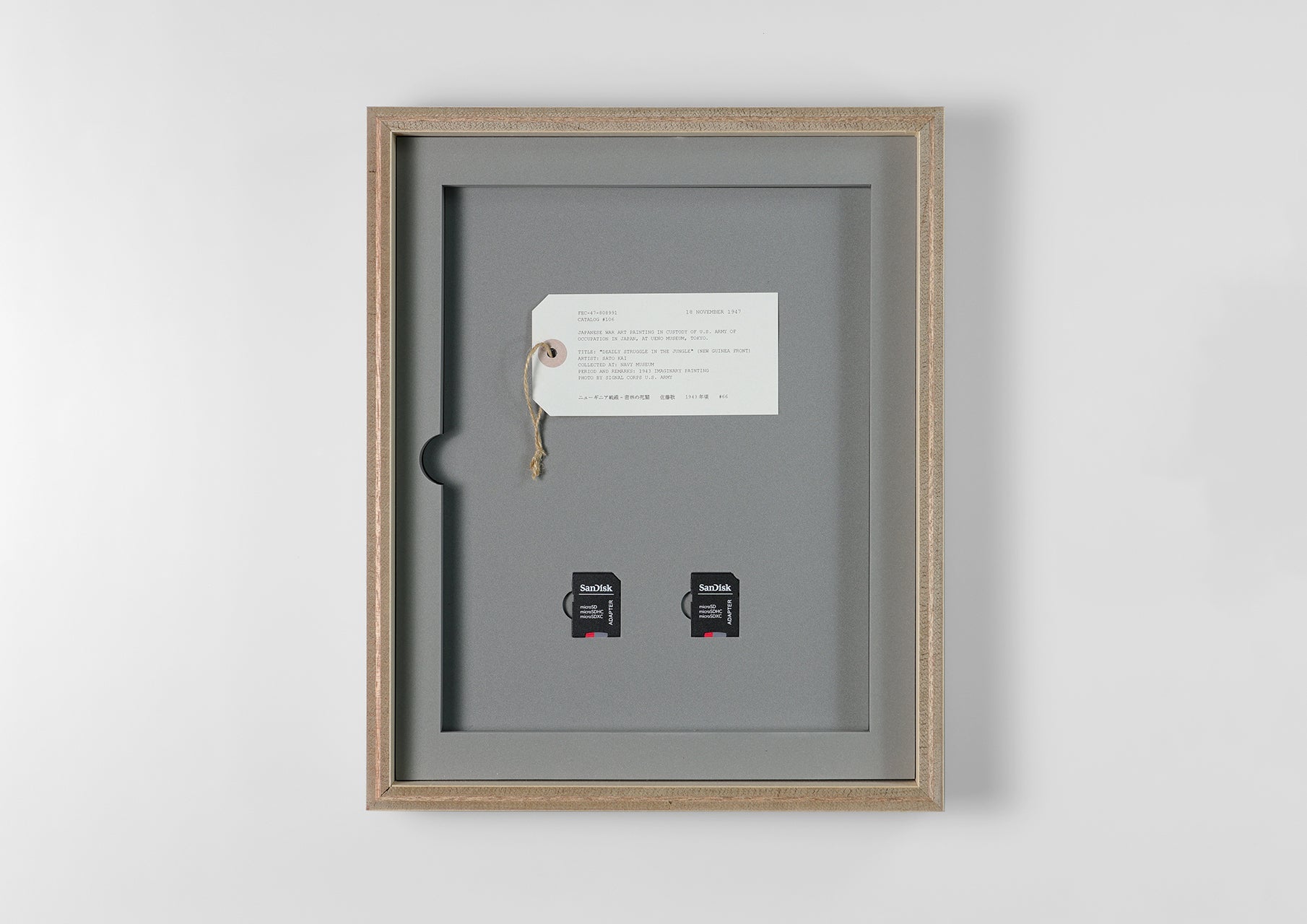 Certificate of Authenticity (with screening rights), Instructions, Video (SD card): 2A (26min.) / 2B (26min.) , Audio (SD card): Sound1 (5min.) / Sound2 (6min.) , Tag: SATO Kei, "Deadly Battle in the Jungle in New Guinea", 1943 , Documents / 作品証明書 (上映権)、インストラクション、映像 (SDカード) : 2A (26分) / 2B (26分)、 音声(SDカード): サウンド1 (5分) / サウンド2 (6分) 、 付票:佐藤敬『ニューギニア戦線-密林の死闘』1943、 資料
