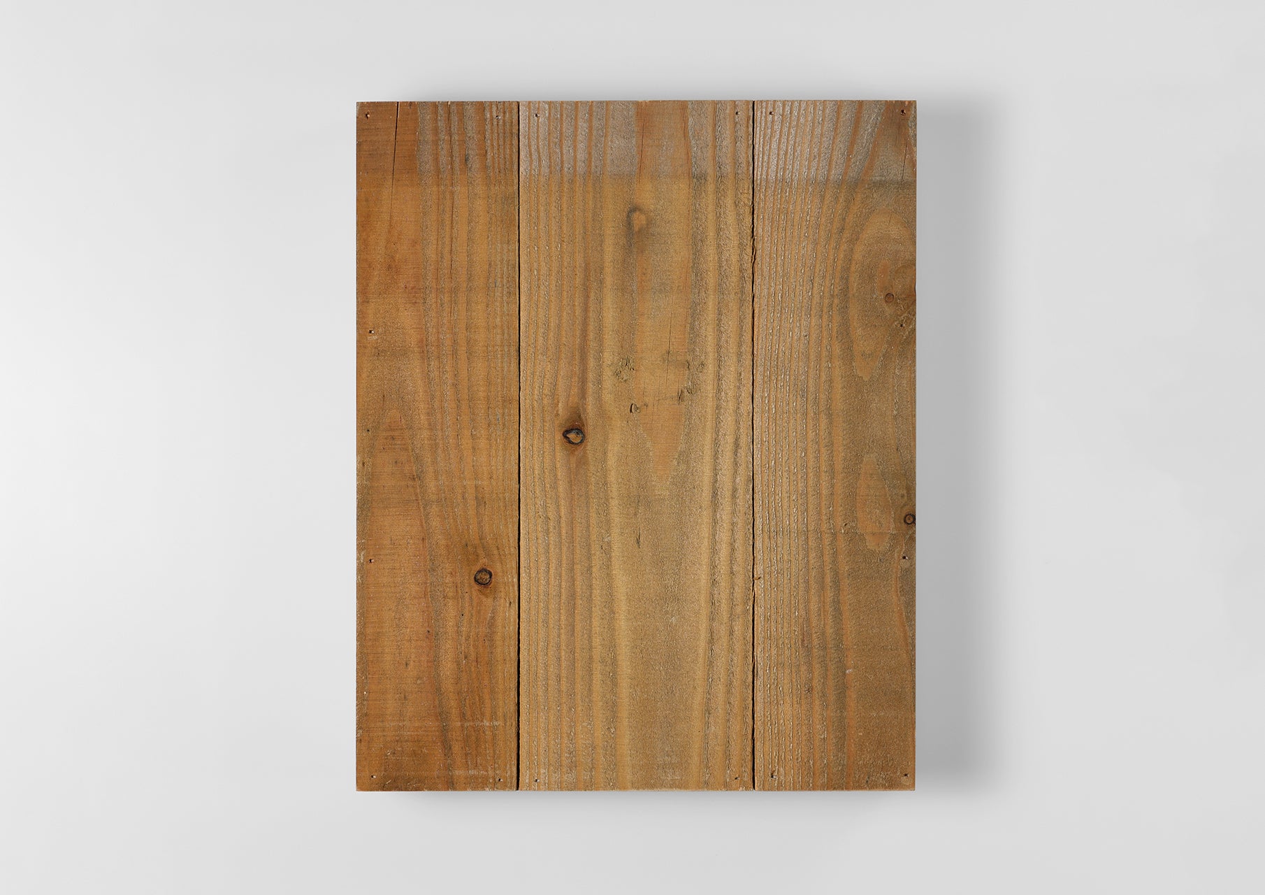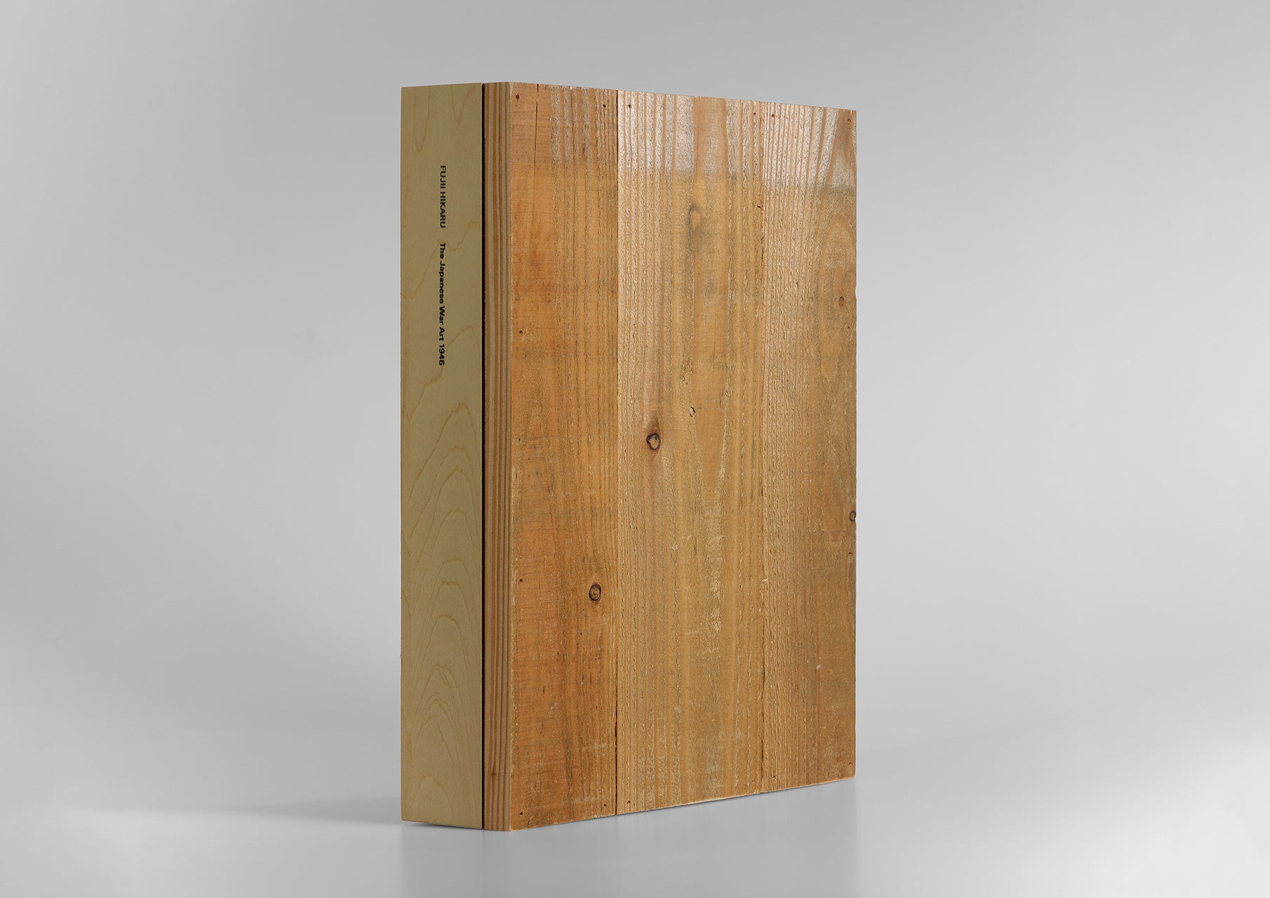 This multiple work (Japanese War Art 1946) is based on Hikaru Fujii's installation of Japanese war paintings at the Museum of Contemporary Art Tokyo in 2022, and includes two documentation books, video data, and artwork tags in a wooden box reassembled from scrap veneer after the exhibition was dismantled. The subject matter of the veneer books is a work of art.