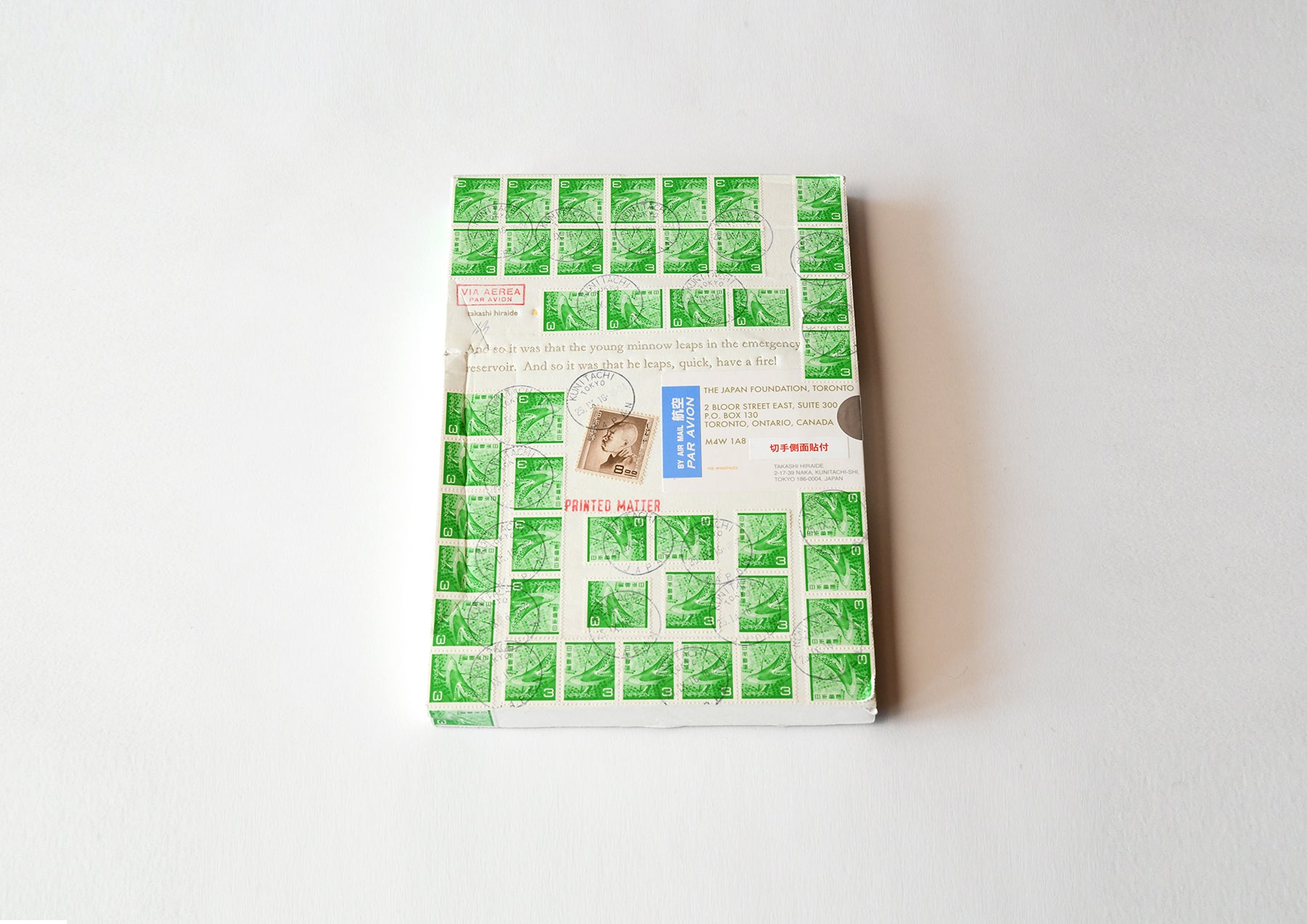 This "Homage to Shiki Masaoka" box has a postmark and a bird of a slightly old era. The typeface is Garamond. It was mailed to the Japan Foundation, the Toronto Cultural Centre, for the "Takashi Hiraide Exhibition" held in Toronto in 2016.