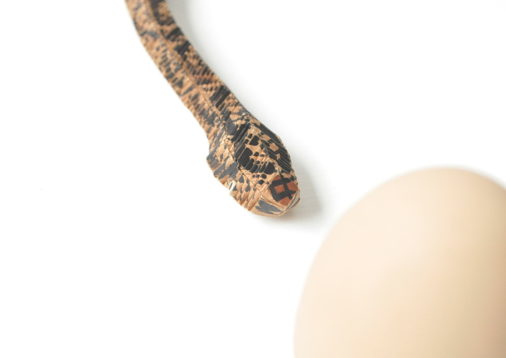 It was accompanied by a soft rubber fake egg.Fake eggs areThese are eggs that look just like the real thing and are used to control egg laying in birds such as chickens and parakeets. What is the relationship between paper snakes and fake eggs?