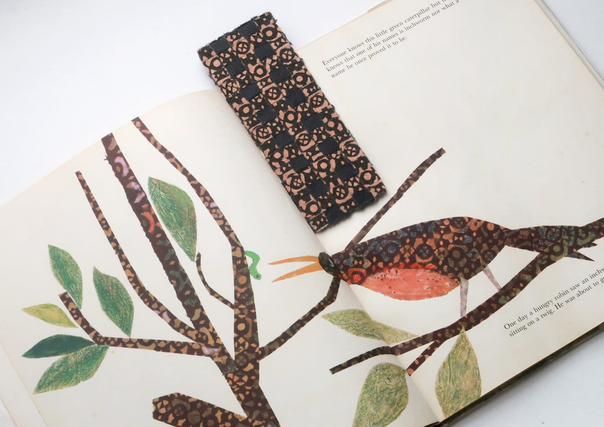 I tried weaving a bookmark out of the original dyed Japanese paper that my grandfather used to put in his picture books. Then I put it back in its original place, and I was able to participate in the collaboration between Leo Lionni and my grandfather.