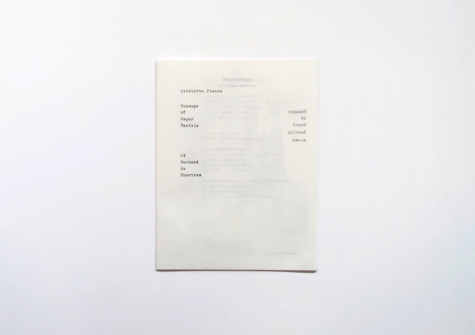 Rivotorto Pieces will hold their first solo exhibition, "Passage of Paper Textile". The works are named after the two artists' ancestors whom they have admired since childhood. They feature people from all over the world, past and present, such as saints, picture book authors, and architects. Saint Francis of Assisi, Atsuko Suga, Leo Lionni and Tokujiro Kojima, Bernard of Chartres, Tintoretto, Dante, Giotto, Seiichi Shirai, Sotatsu Tawaraya, William Morris, Édouard Vuillard, Pierre Bonnard, Montaner, Michelangelo, Hermes, Diotima, Barbara Sansoni, Hergé, Hiroshi Yoshino, Rousseau, Frederick II, Simone Weil, Aldo Manuzio, Picasso, and the man from the Masdazil Cave. The messages that accompany each work, detailing encounters with each person, are also quite interesting.