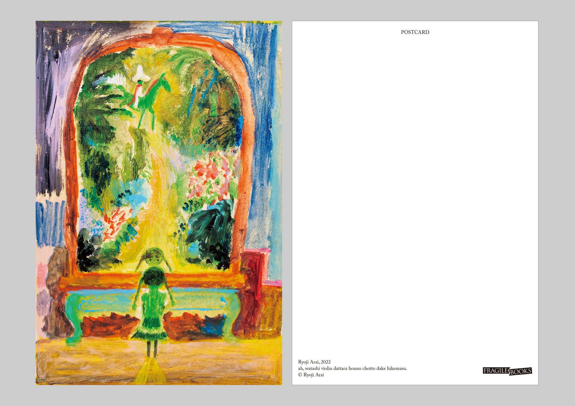FRAGILE BOOKS does not have a store, so we cannot deliver the books to you directly.In order to deliver Arai Ryoji's world as it is, we have prepared "original art stamps."The item will be delivered in a see-through glassine envelope with an original stamp affixed to it. You cannot choose the design of the stamp, but it will include the original artwork that did not make it into a postcard. We hope that you will enjoy it as a little surprise when it is mailed.