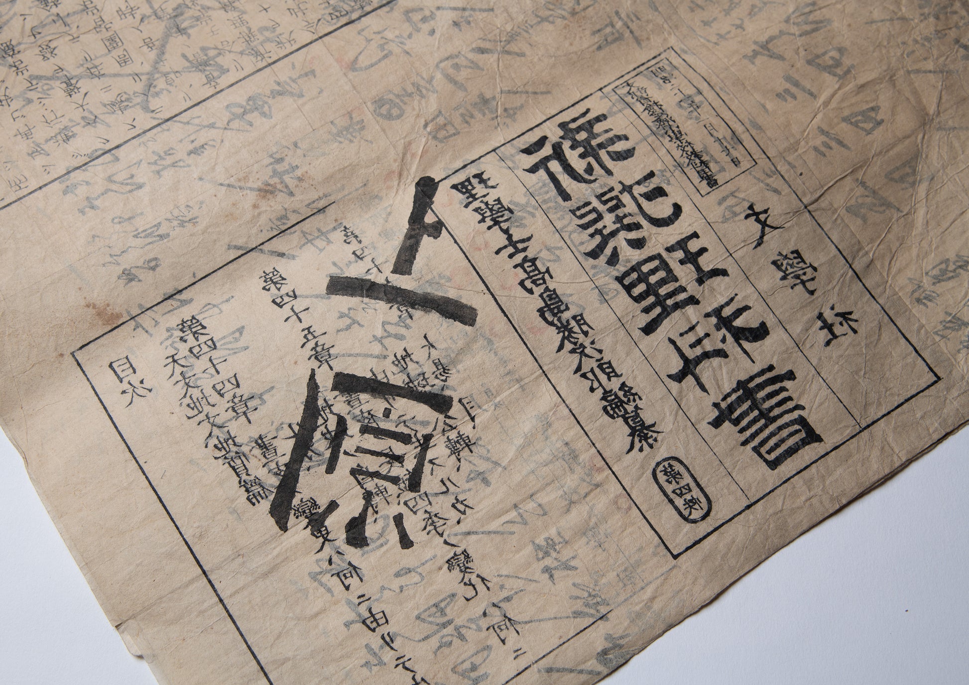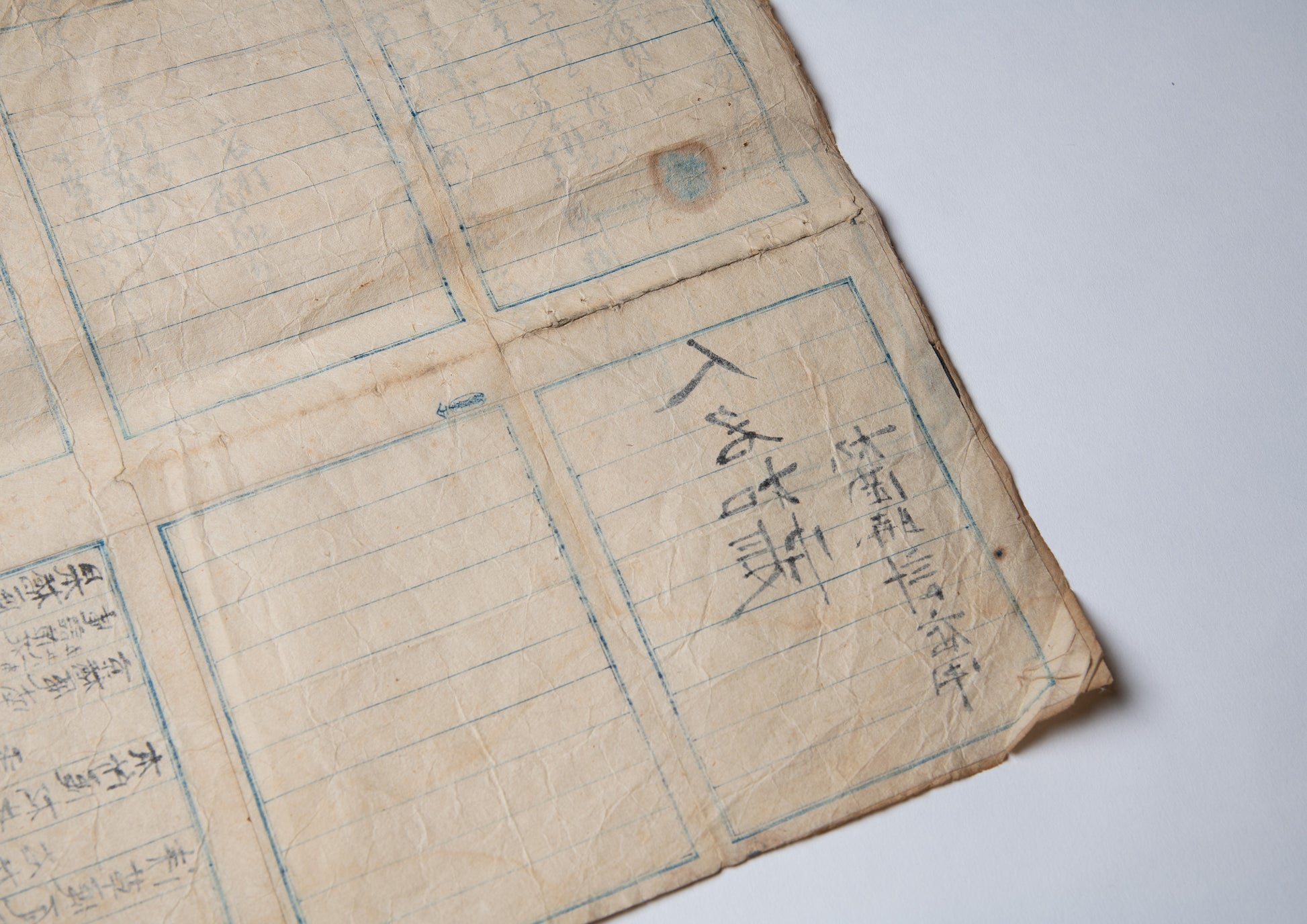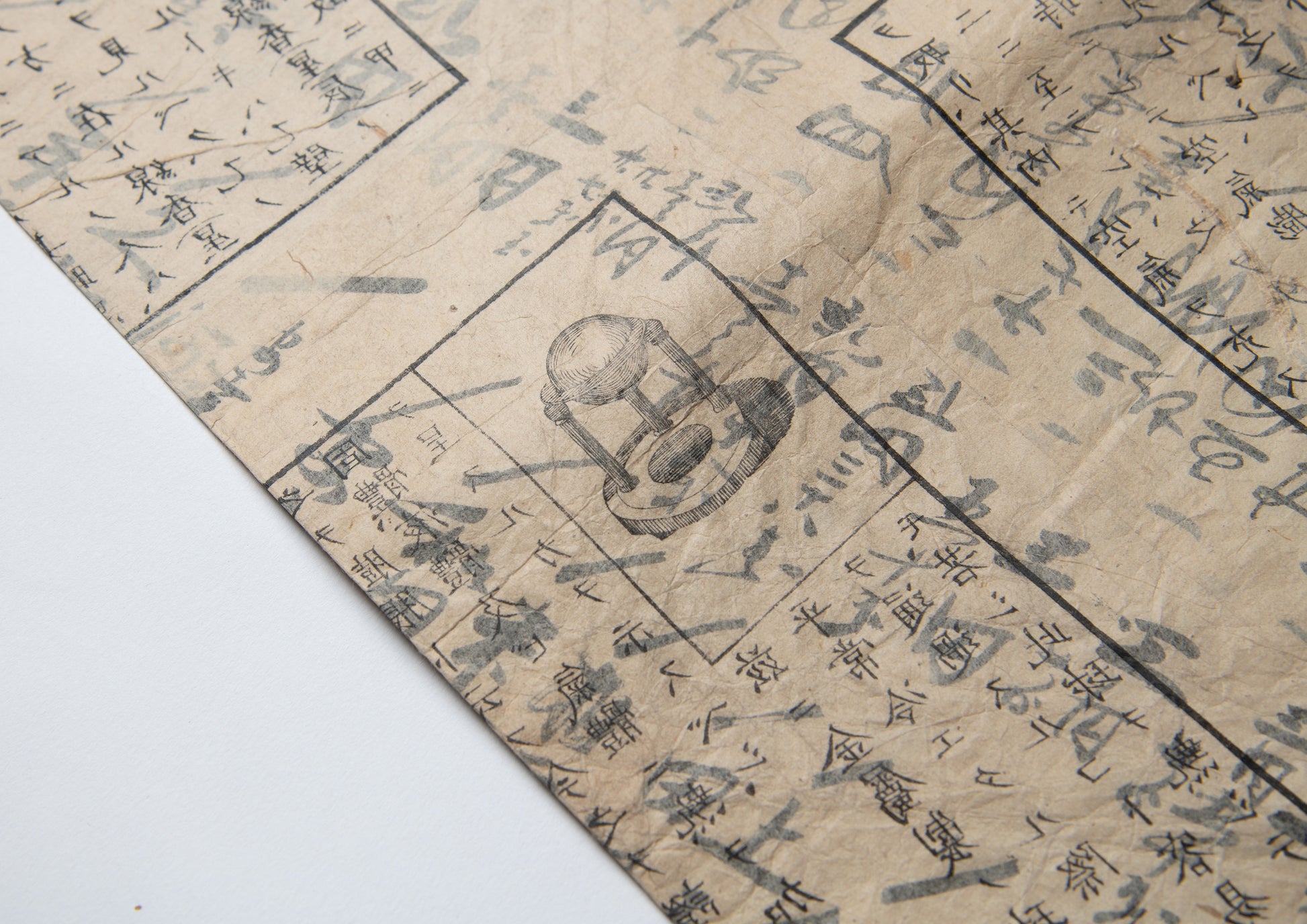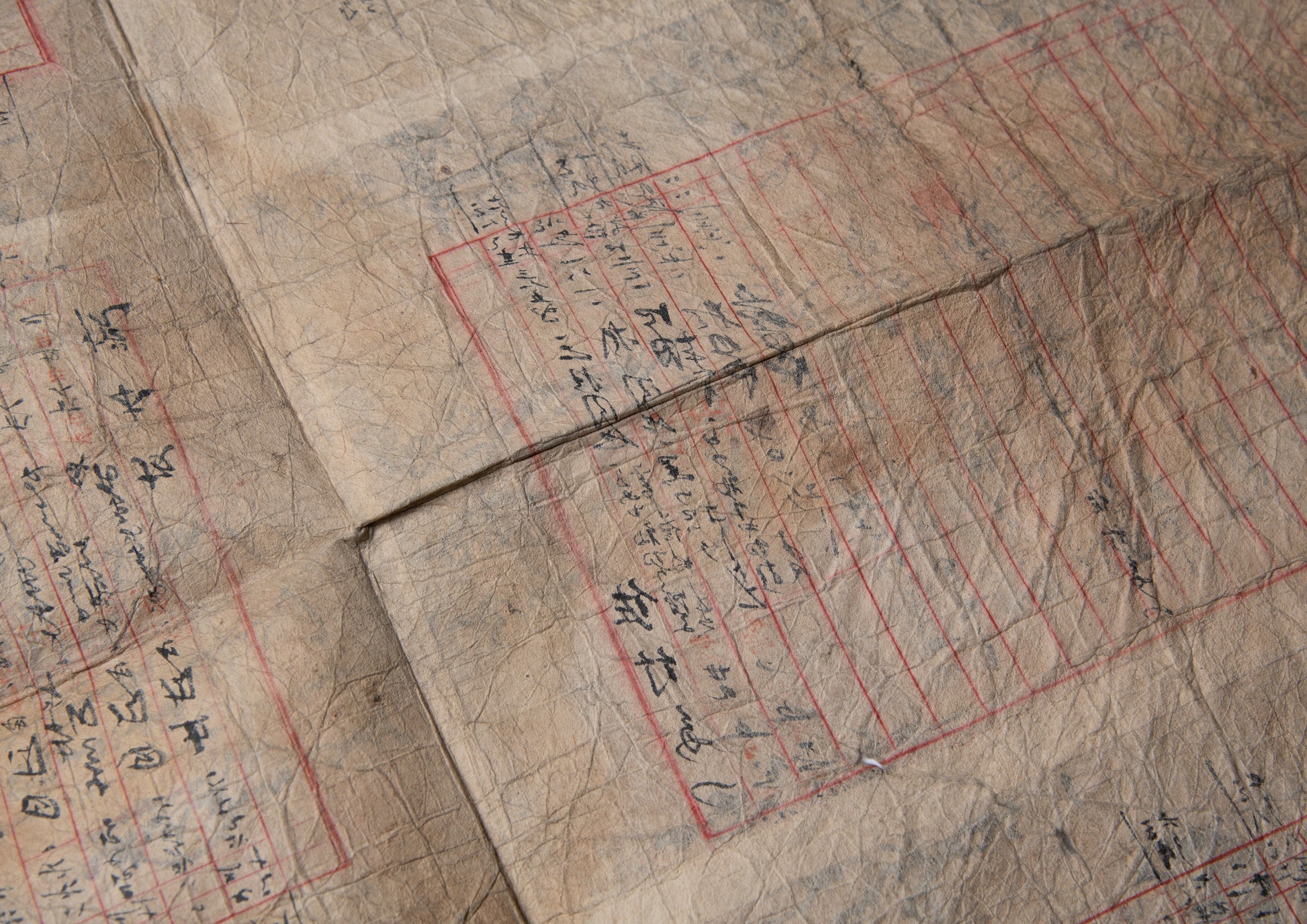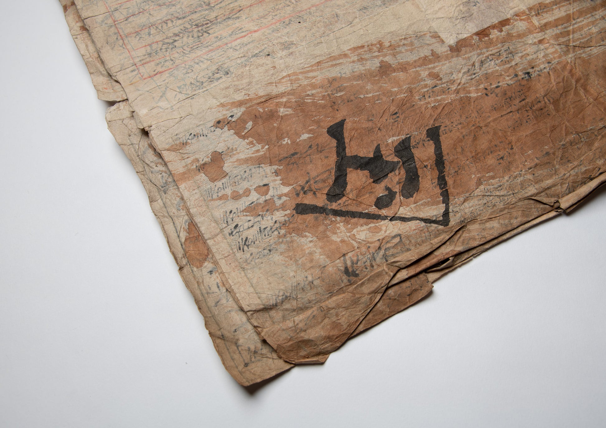 All the pawnbroker papers introduced here are believed to have come from a single pawnbroker, with the oldest dating back to the end of the Edo period and the newest dating back to the end of the Taisho period. Many of them are made from untied pawnbroker ledgers, and it is interesting to note that they are stuck together back-to-back to make them difficult to read, perhaps due to the professional ethics of the pawnbrokers. Other pieces include washi paper that appears to be calligraphy mistakes, a Meiji science textbook with copperplate illustrations showing through it, and notebooks with red and blue lines, all the washi paper that was around us and no longer needed (and all of it is back-to-front). They were not simply pasted together to make them larger, but were layered three or four times, and weak or damaged parts were patched with more washi paper. As a result of thorough use, they have become pliable and soft, with a texture and feel that is almost like cloth.