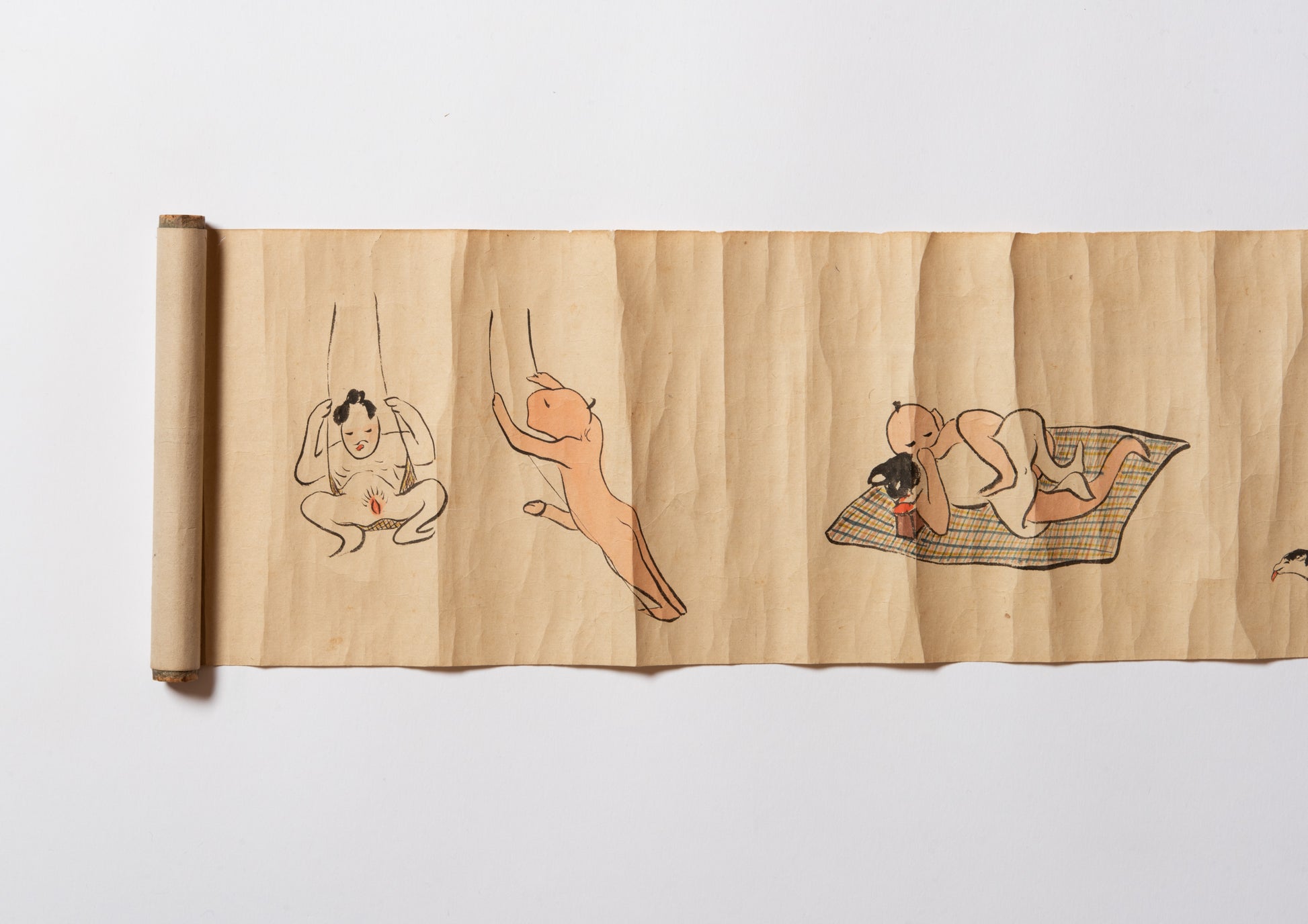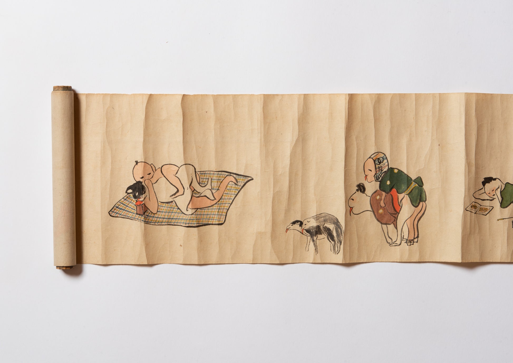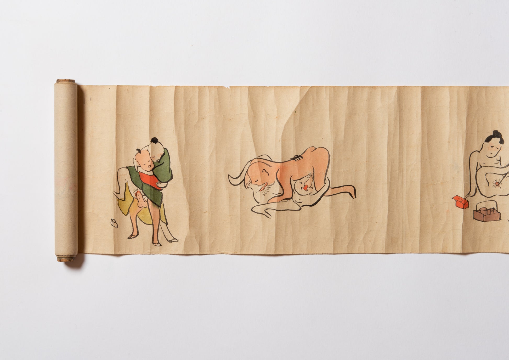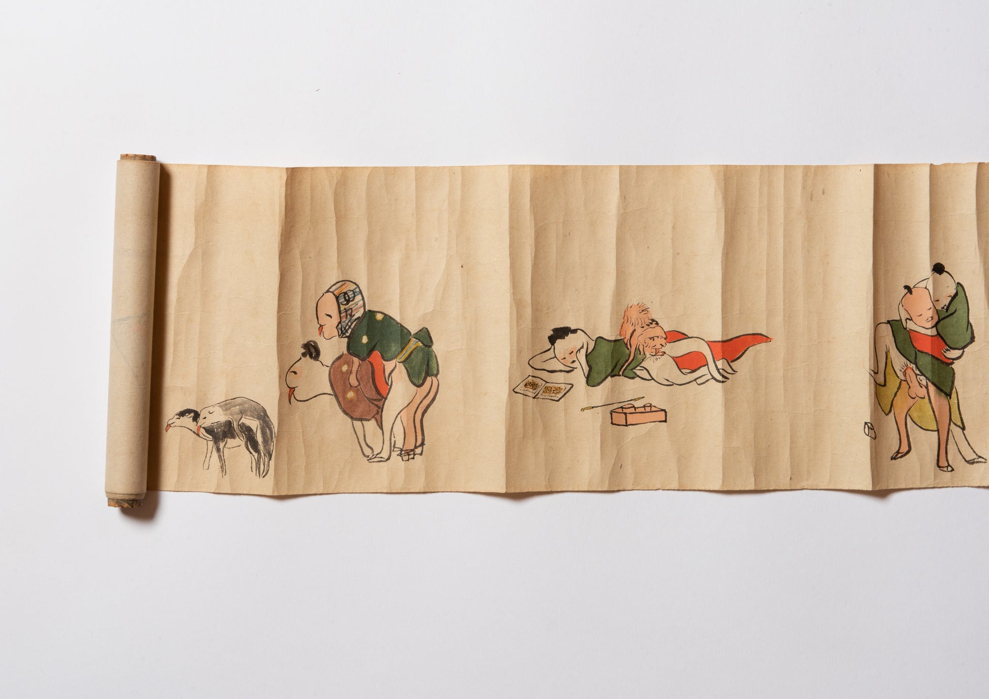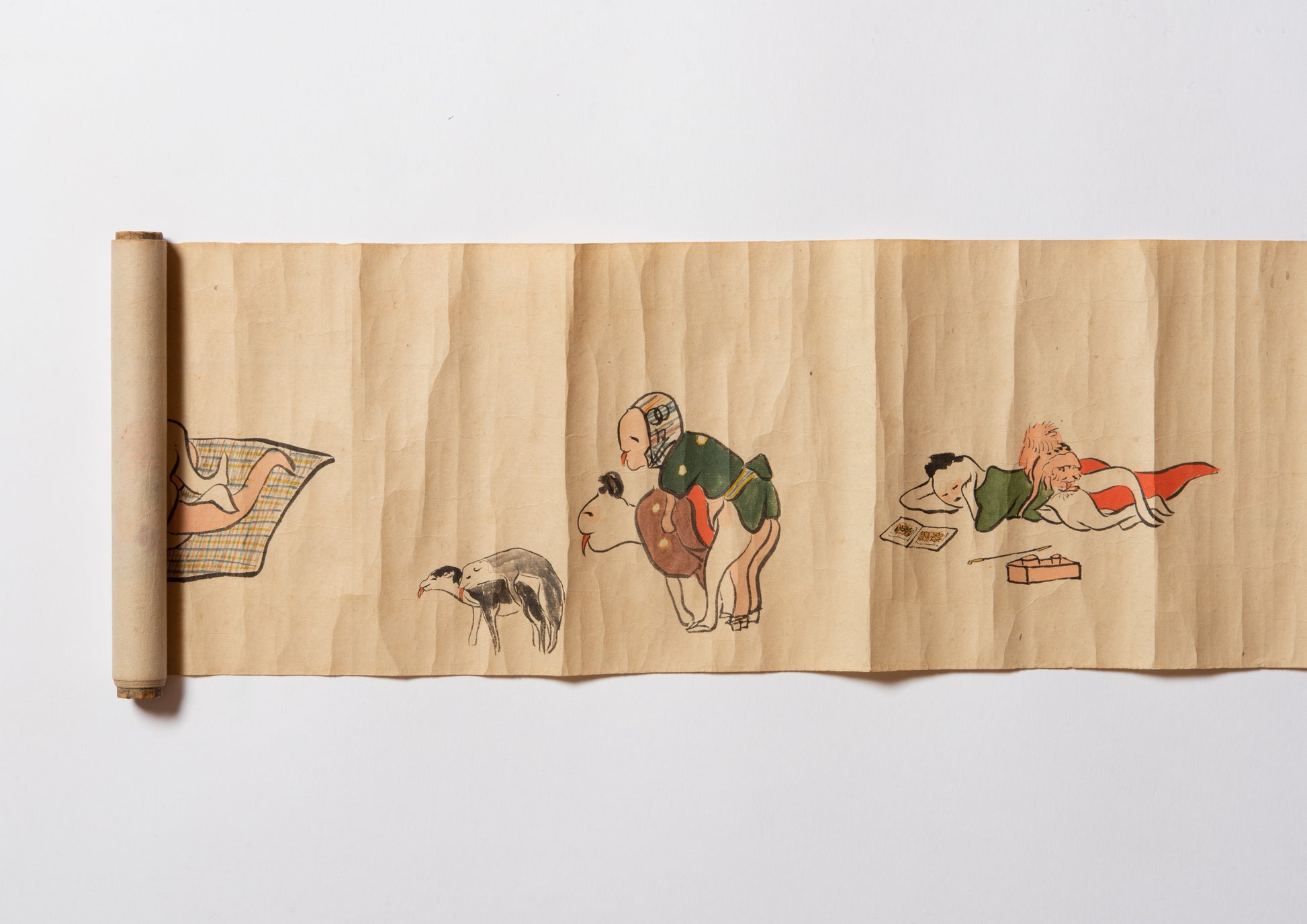 We leave the more concrete shunga to others, and here we have comical and cute ones. "Can I see this?" I was intrigued by the cover, but didn't have high expectations for the contents, so I asked to see the scroll. The shop owner immediately replied, "We have Edo!" He continued, "Hey, I like it, big brother. ○△□%×÷$..." I don't remember what the shop owner said, but I'm sure I was grinning when I unfolded the scroll and looked at it.