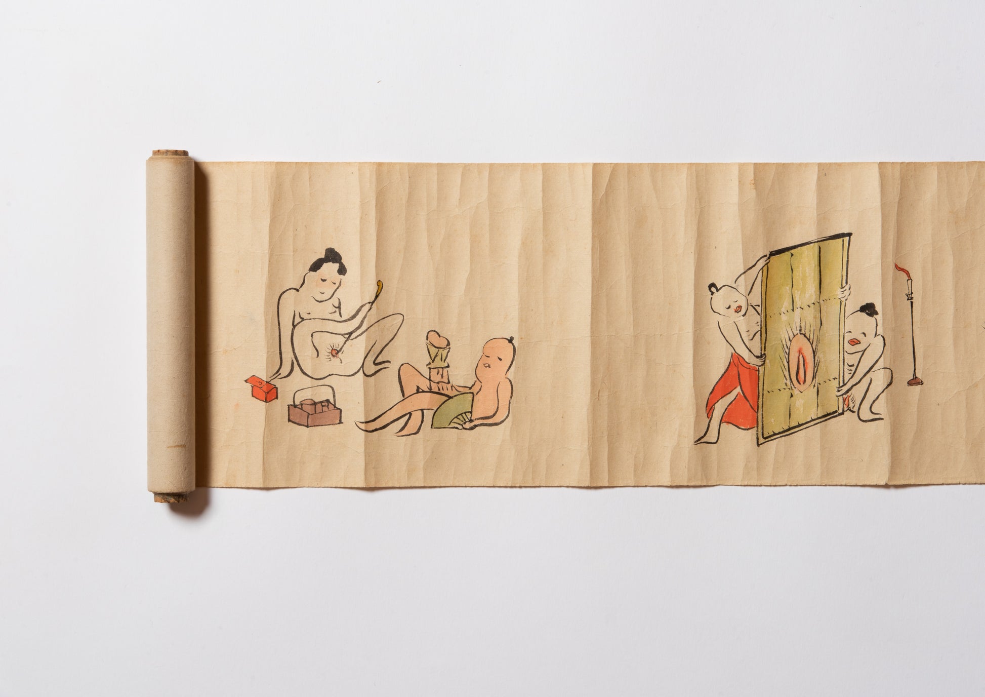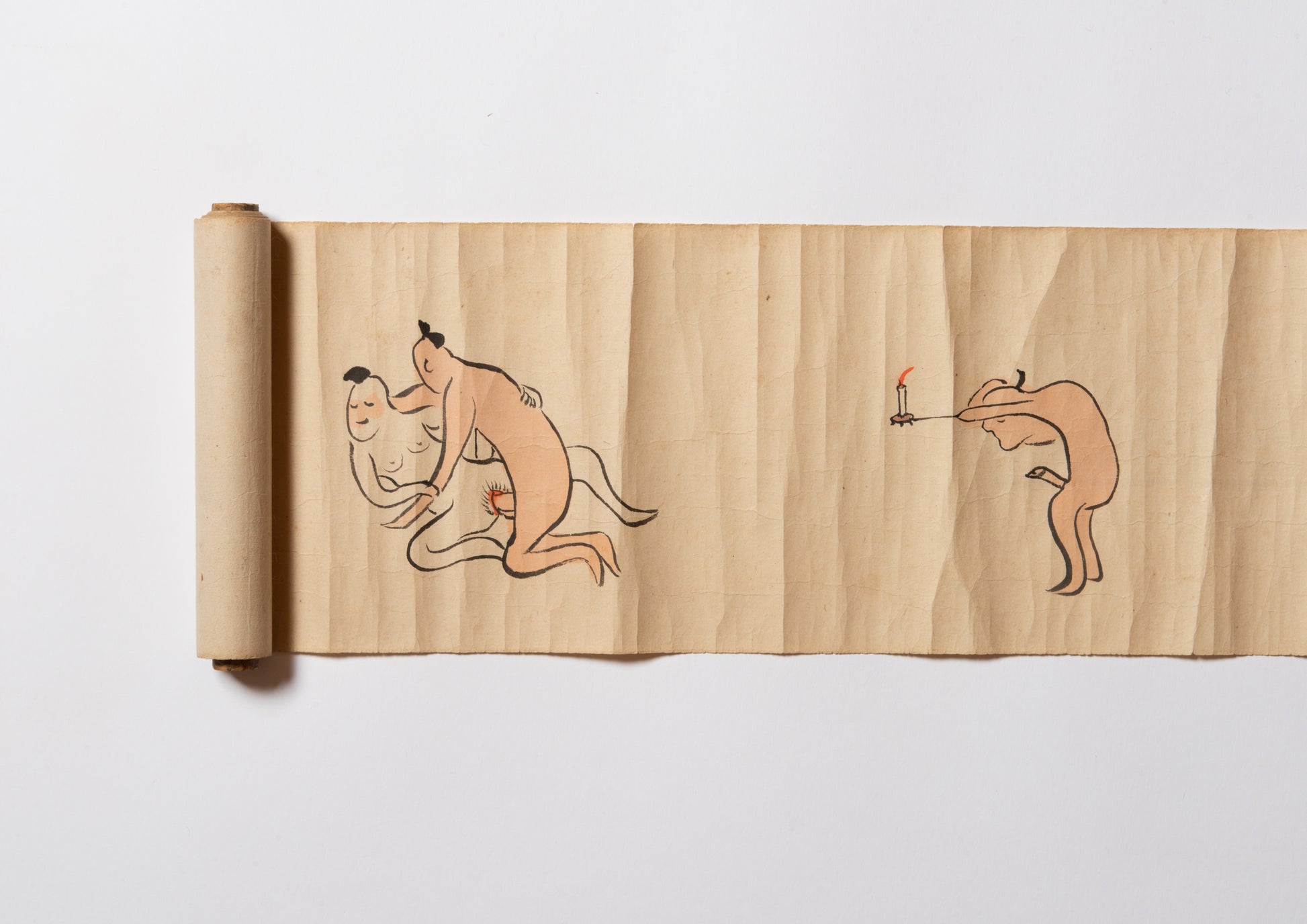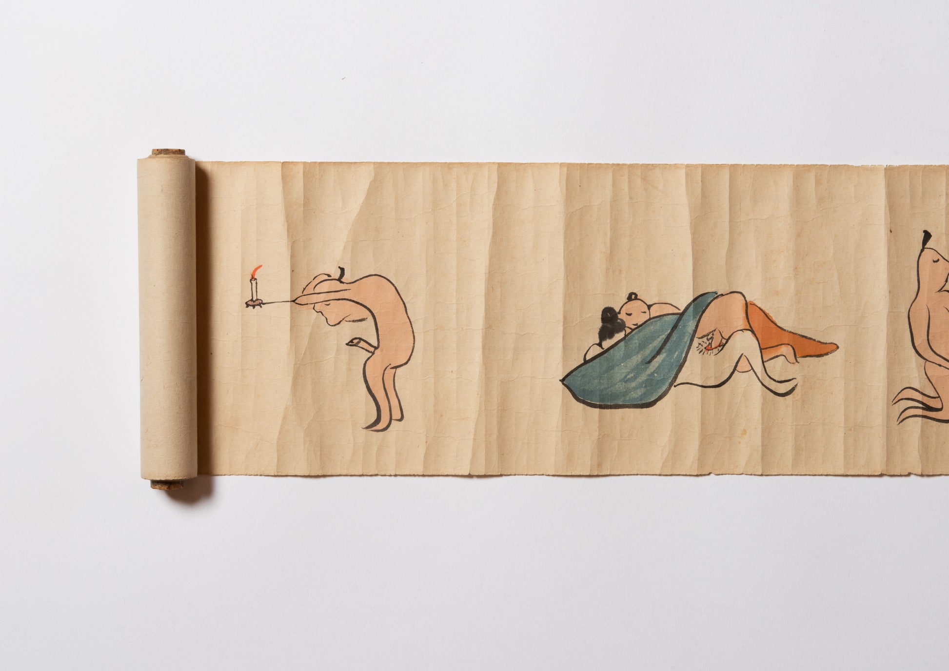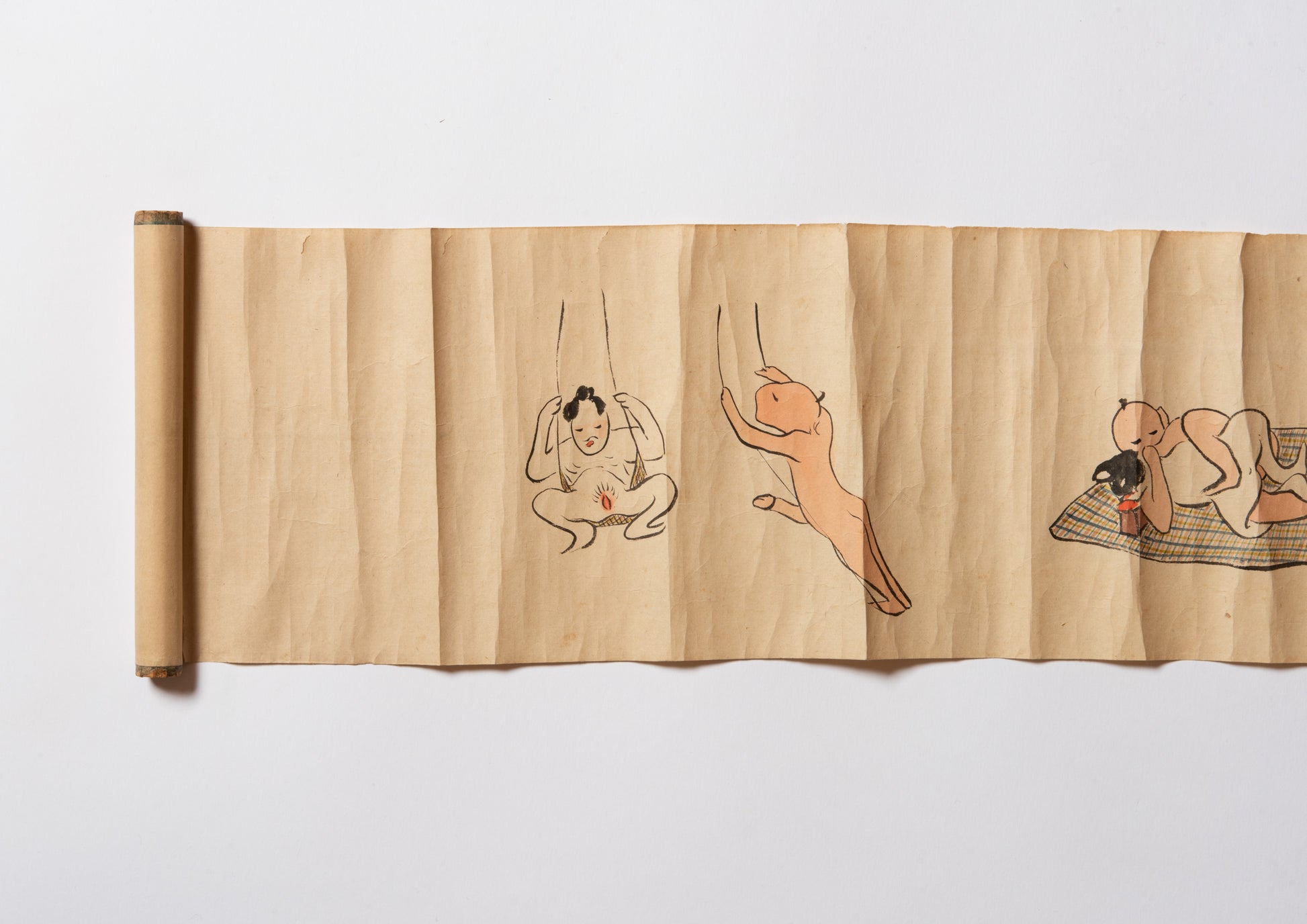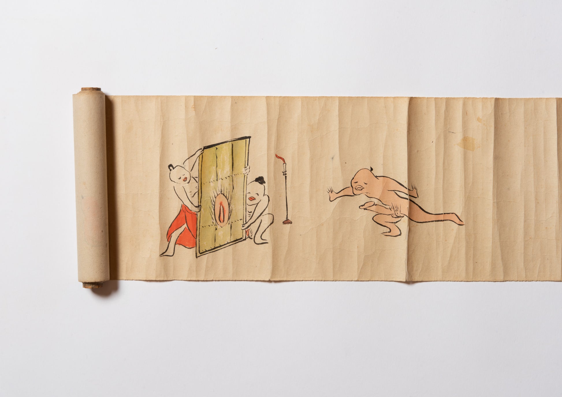 We leave the more concrete shunga to others, and here we have comical and cute ones. "Can I see this?" I was intrigued by the cover, but didn't have high expectations for the contents, so I asked to see the scroll. The shop owner immediately replied, "We have Edo!" He continued, "Hey, I like it, big brother. ○△□%×÷$..." I don't remember what the shop owner said, but I'm sure I was grinning when I unfolded the scroll and looked at it.