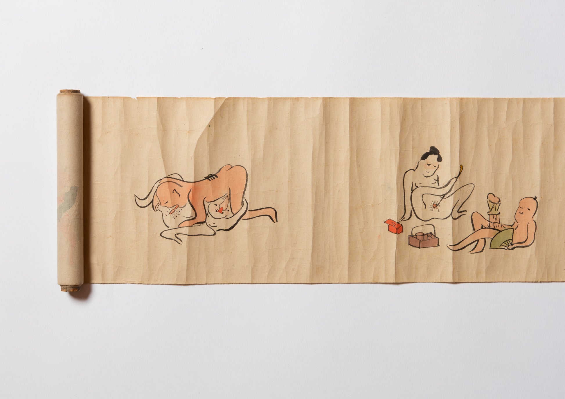 I'm not sure if it's from the Edo period or not. But I'm drawn to comical and cute things, regardless of the era. I never thought I'd be able to get hold of so many shunga that would make me grin. I was half interested in selling them, of course, and the other half wanted to show them off.
