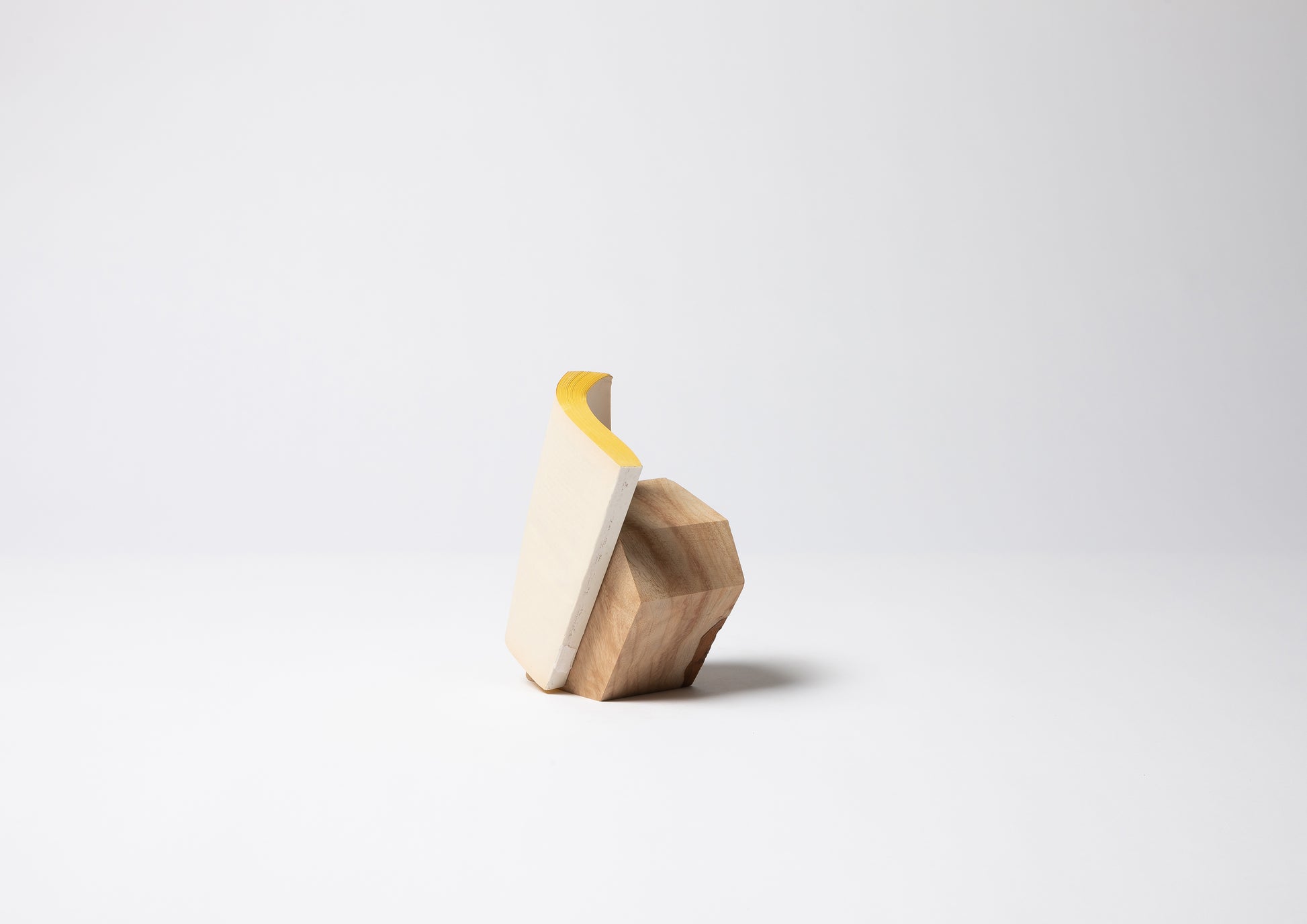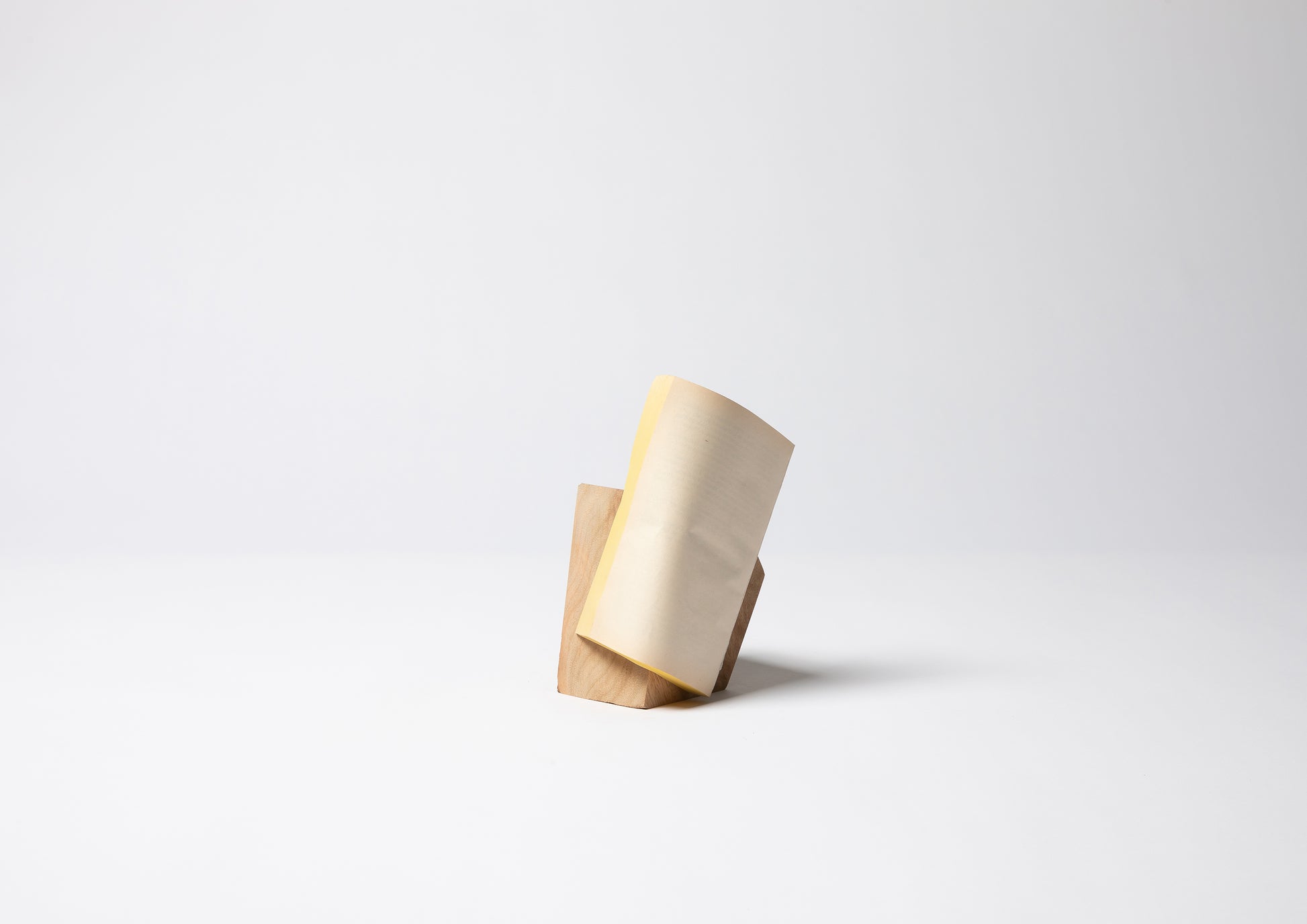 Fragile Exhibition in June 2023 is pleased to present "SILENT BOOK," a solo exhibition by Ryuta Iida. This work, which he began working on in 2019, the year of the Corona Disaster, shows a book that has passed through the hands of many people and is now crumpled. For Ryuta Iida, who sculpts from paper and used books, sculpting means sealing them, and in the past he has separated "reading" from books and sculpted a different body language, keeping the story inside. In this latest work, "SILENT BOOK," a "pedestal" appears for the first time in this act of sealing, and the book, which is said to be extinct soon, is crystallized like a fossil.