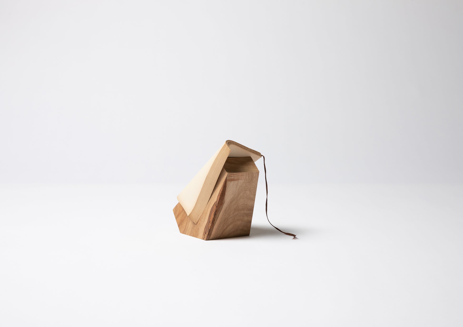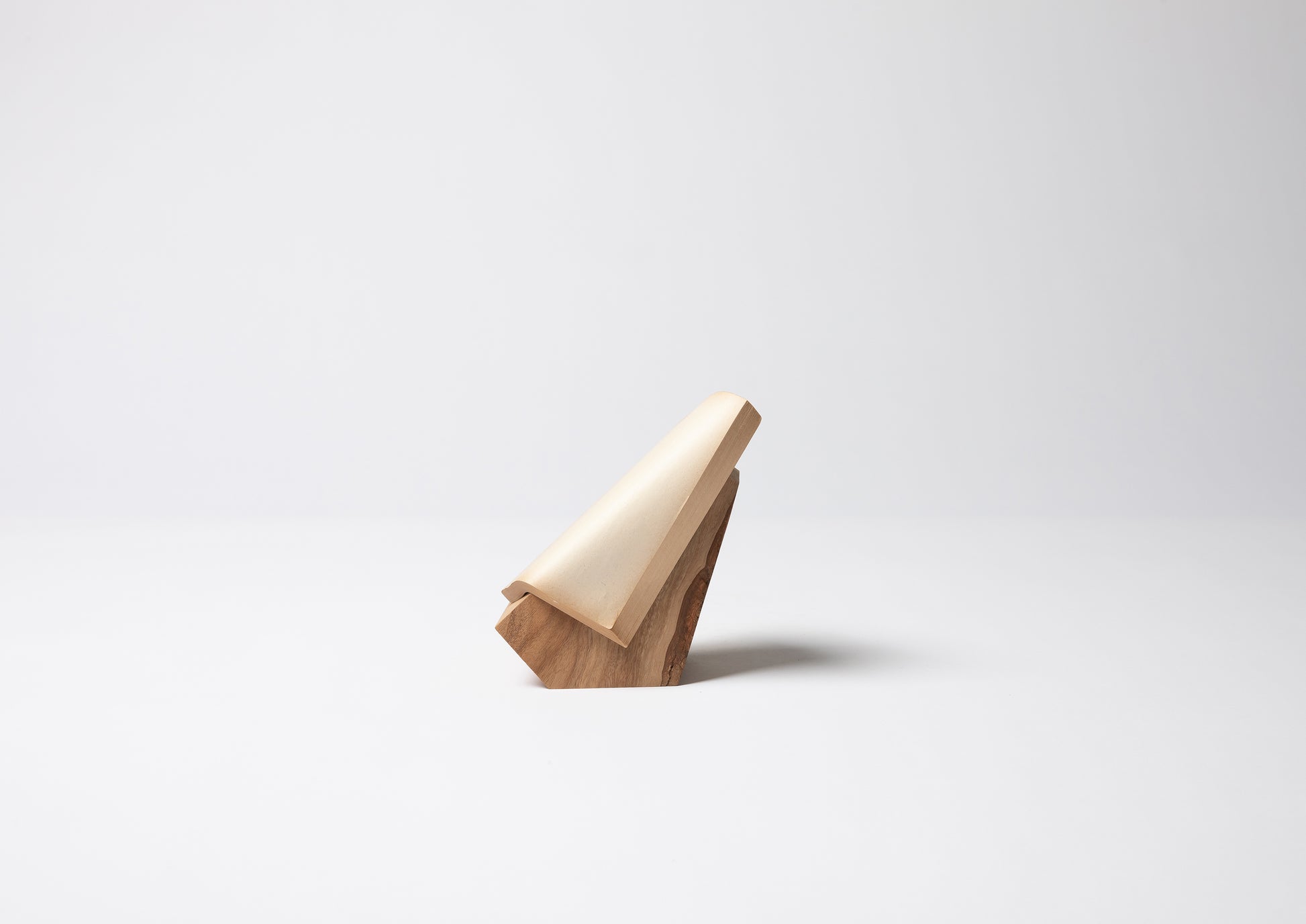 Fragile Exhibition in June 2023 is pleased to present "SILENT BOOK," a solo exhibition by Ryuta Iida. This work, which he began working on in 2019, the year of the Corona Disaster, shows a book that has passed through the hands of many people and is now crumpled. For Ryuta Iida, who sculpts from paper and used books, sculpting means sealing them, and in the past he has separated "reading" from books and sculpted a different body language, keeping the story inside. In this latest work, "SILENT BOOK," a "pedestal" appears for the first time in this act of sealing, and the book, which is said to be extinct soon, is crystallized like a fossil.
