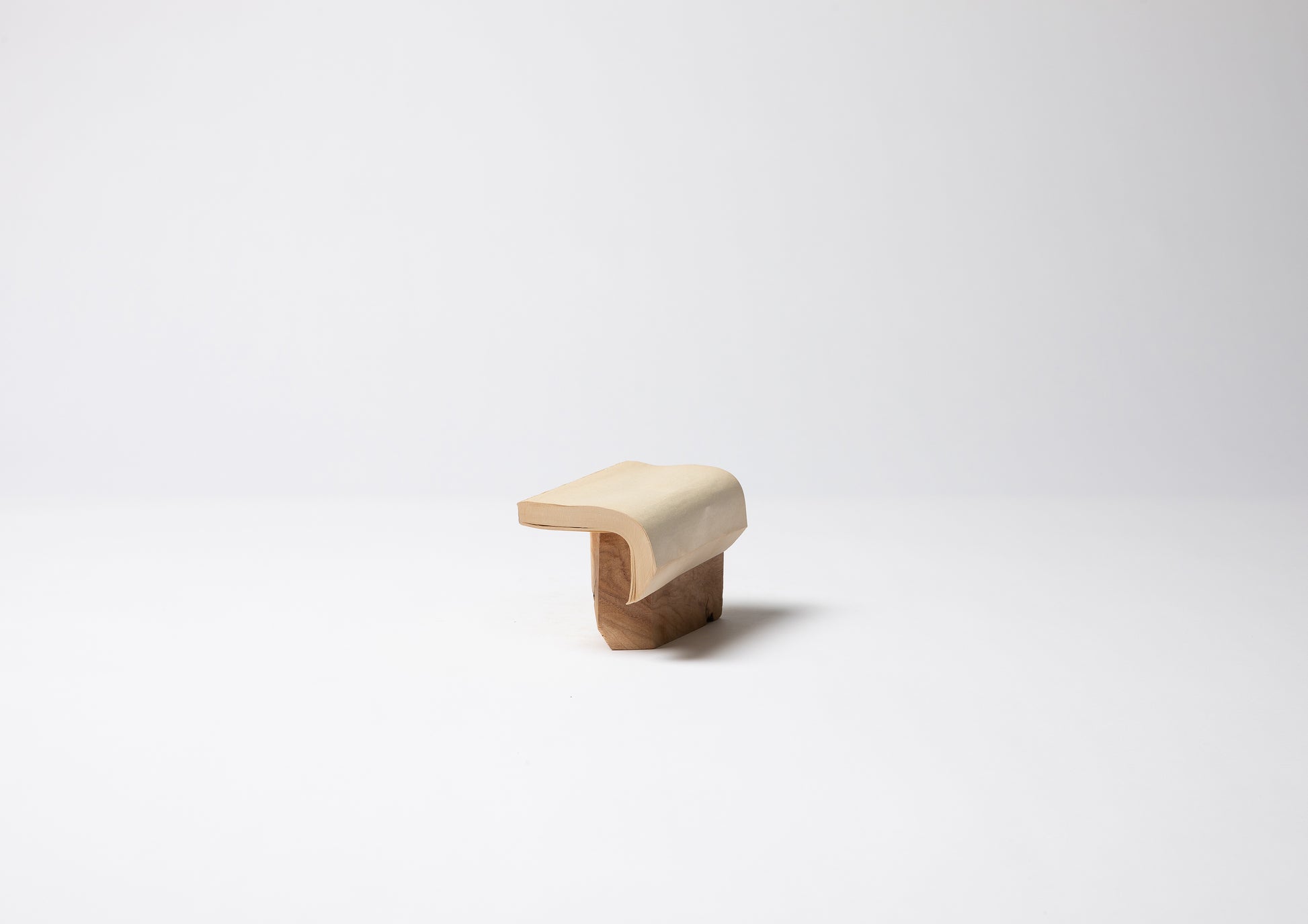 Fragile Exhibition in June 2023 is pleased to present "SILENT BOOK," a solo exhibition by Ryuta Iida. This work, which he began working on in 2019, the year of the Corona Disaster, shows a book that has passed through the hands of many people and is now crumpled. For Ryuta Iida, who sculpts from paper and used books, sculpting means sealing them, and in the past he has separated "reading" from books and sculpted a different body language, keeping the story inside. In this latest work, "SILENT BOOK," a "pedestal" appears for the first time in this act of sealing, and the book, which is said to be extinct soon, is crystallized like a fossil.