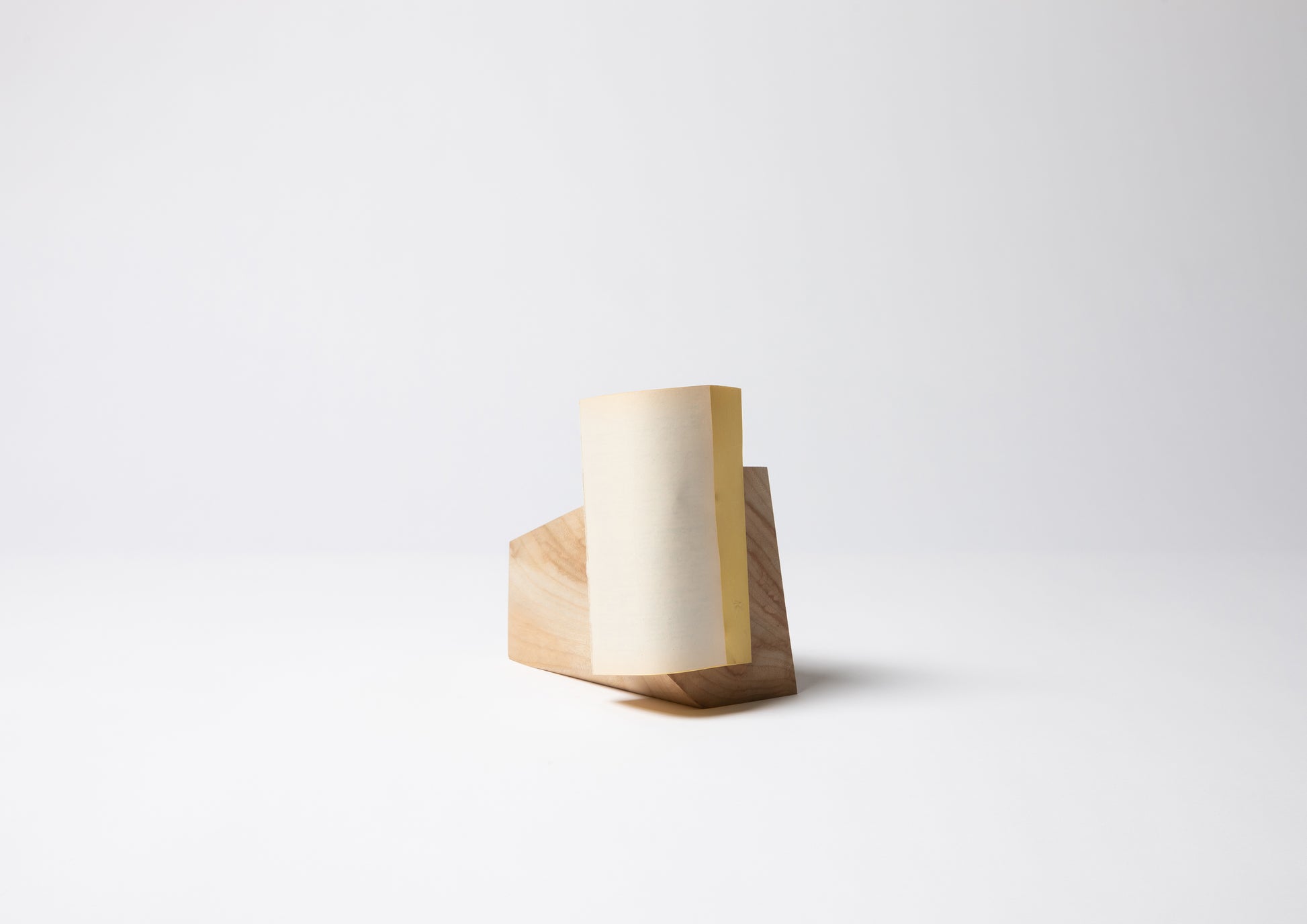 Fragile Exhibition in June 2023 is pleased to present "SILENT BOOK," a solo exhibition by Ryuta Iida. This work, which he began working on in 2019, the year of the Corona Disaster, shows a book that has passed through the hands of many people and is now crumpled. For Ryuta Iida, who sculpts from paper and used books, sculpting means sealing them, and in the past he has separated "reading" from books and sculpted a different body language, keeping the story inside. In this latest work, "SILENT BOOK," a "pedestal" appears for the first time in this act of sealing, and the book, which is said to be extinct soon, is crystallized like a fossil.