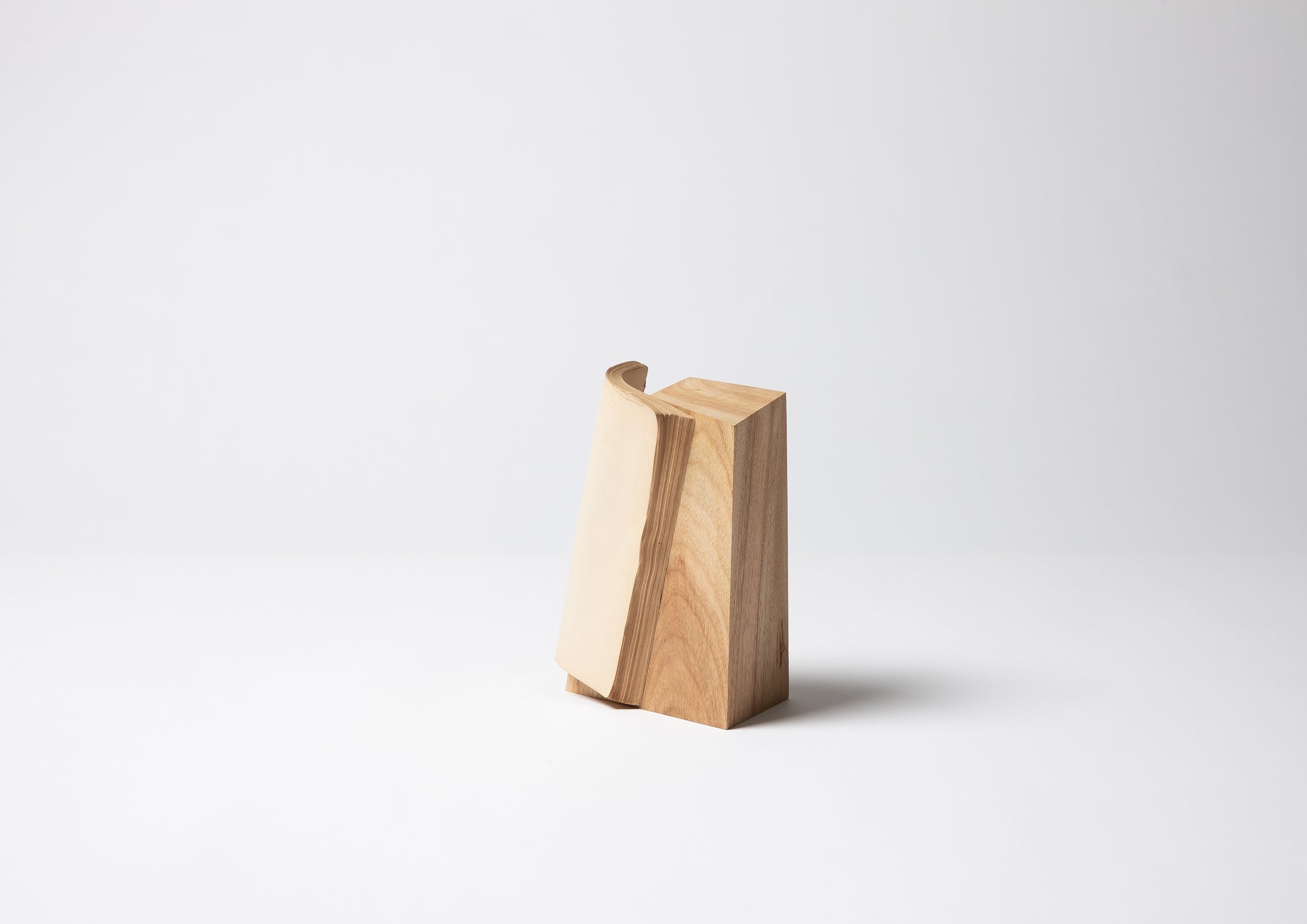 Fragile Exhibition in June 2023 is pleased to present "SILENT BOOK," a solo exhibition by Ryuta Iida. This work, which he began working on in 2019, the year of the Corona Disaster, shows a book that has passed through the hands of many people and is now crumpled. For Ryuta Iida, who sculpts from paper and used books, sculpting means sealing them, and in the past he has separated "reading" from books and sculpted a different body language, keeping the story inside. In this latest work, "SILENT BOOK," a "pedestal" appears for the first time in this act of sealing, and the book, which is said to be extinct soon, is crystallized like a fossil.